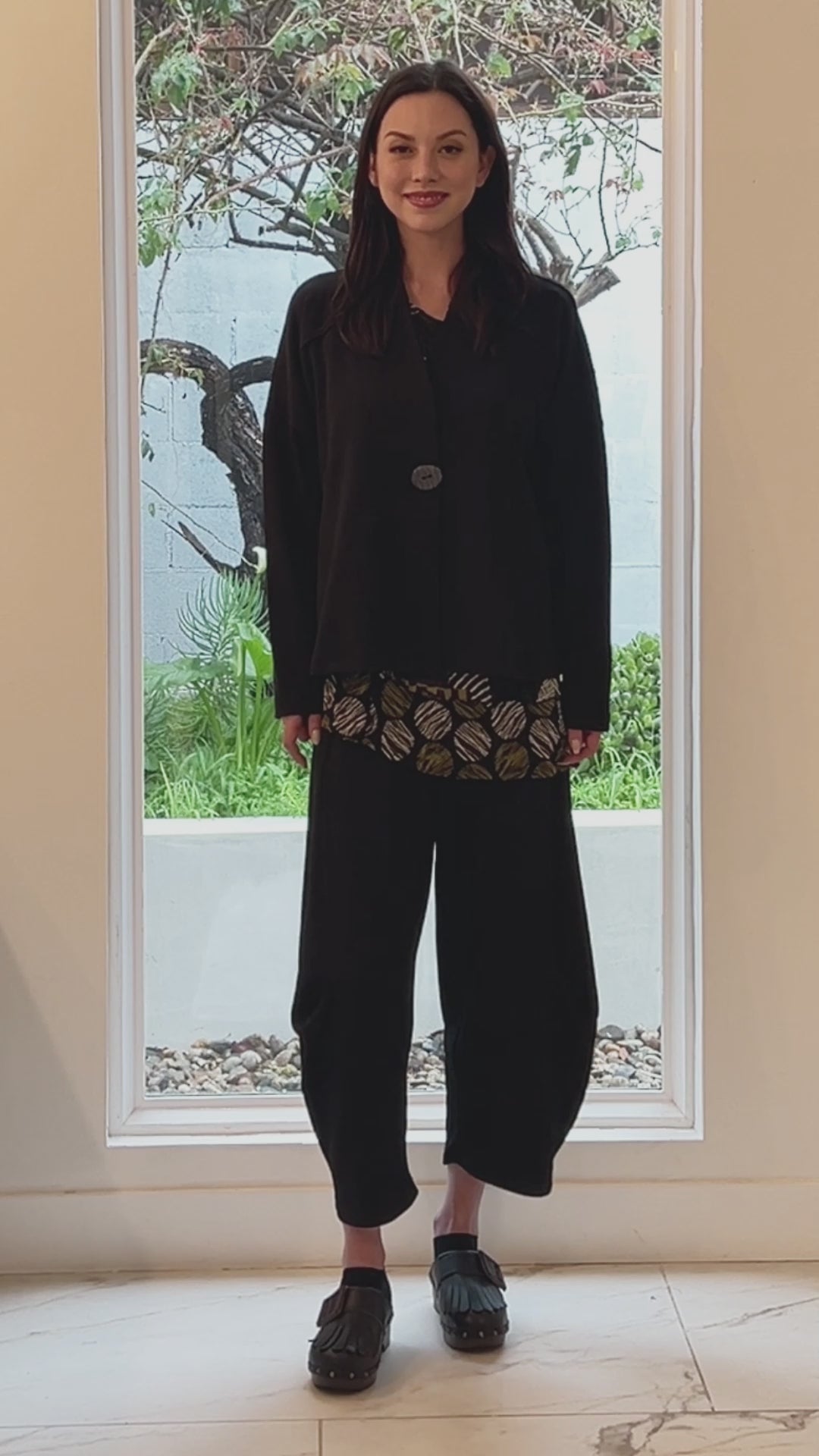 Model is wearing "Black" color, size Small