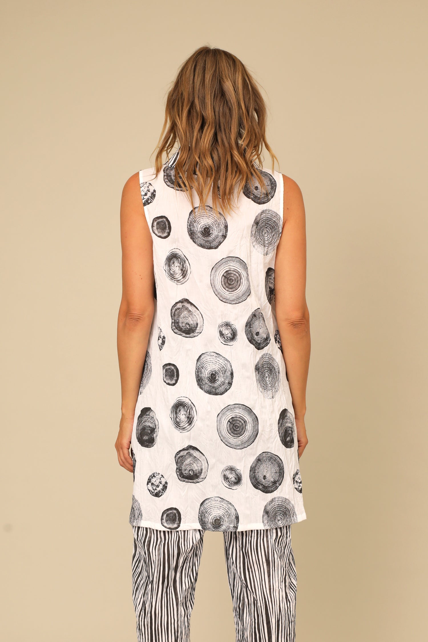 Always a statement while basking in comfort. The sleeveless Allegra Tunic’s color-blocking Graze and Pearl design directly catches attention in our naturally textured lightweight creased cotton fabric. The style of its A-line silhouette perfectly pairs with the slitted straight hem and mock neckline as its seams details strikes under the front patch pockets