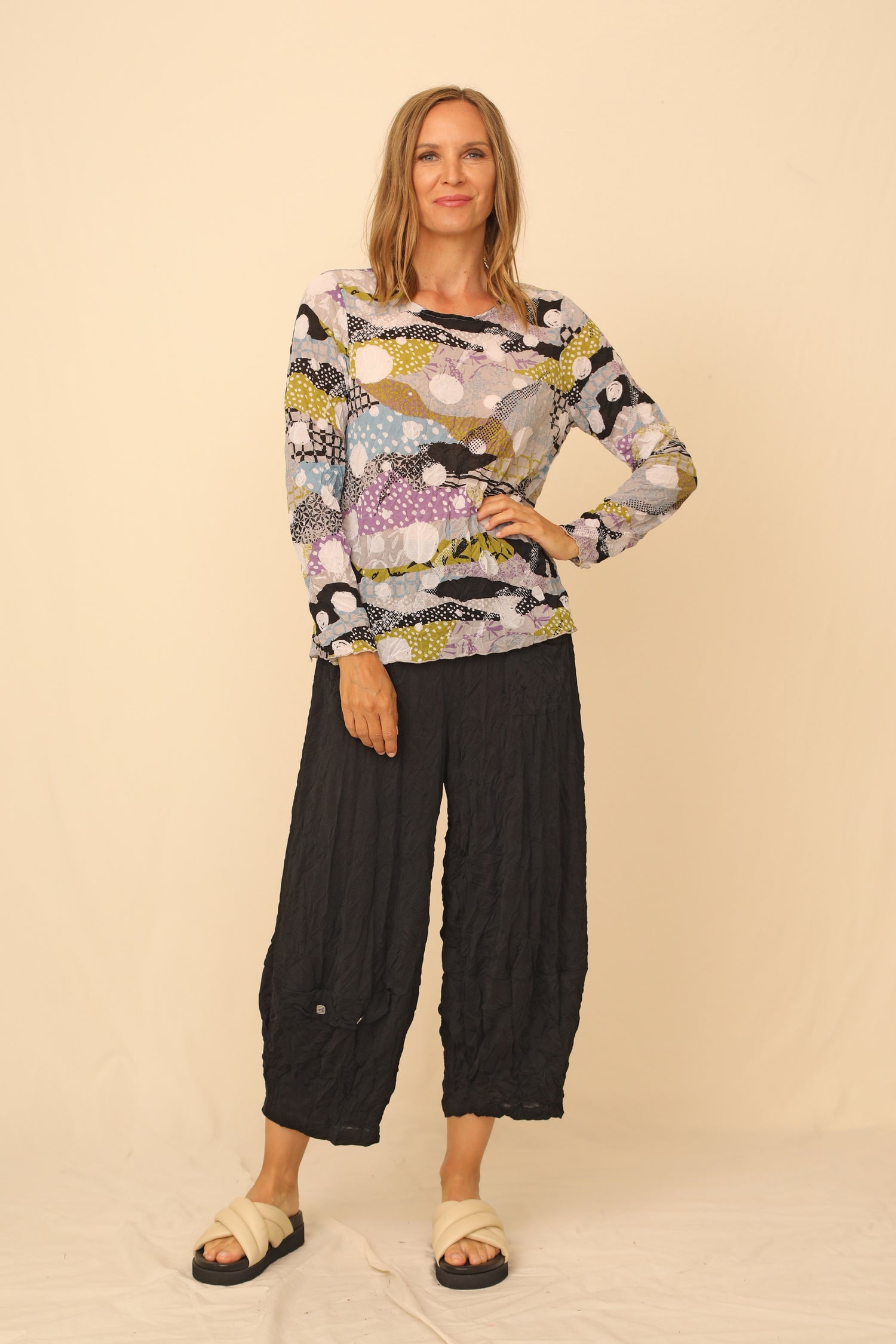 A true staple to that brings comfort and style. The Andrea Top returns with beloved characteristics of a rounded neckline and long sleeves in a straight hemmed boxy silhouette. Extremely lightweight and comfortable in our crinkle mesh fabric that brings a gorgeous elevated texture and travel friendly capability.