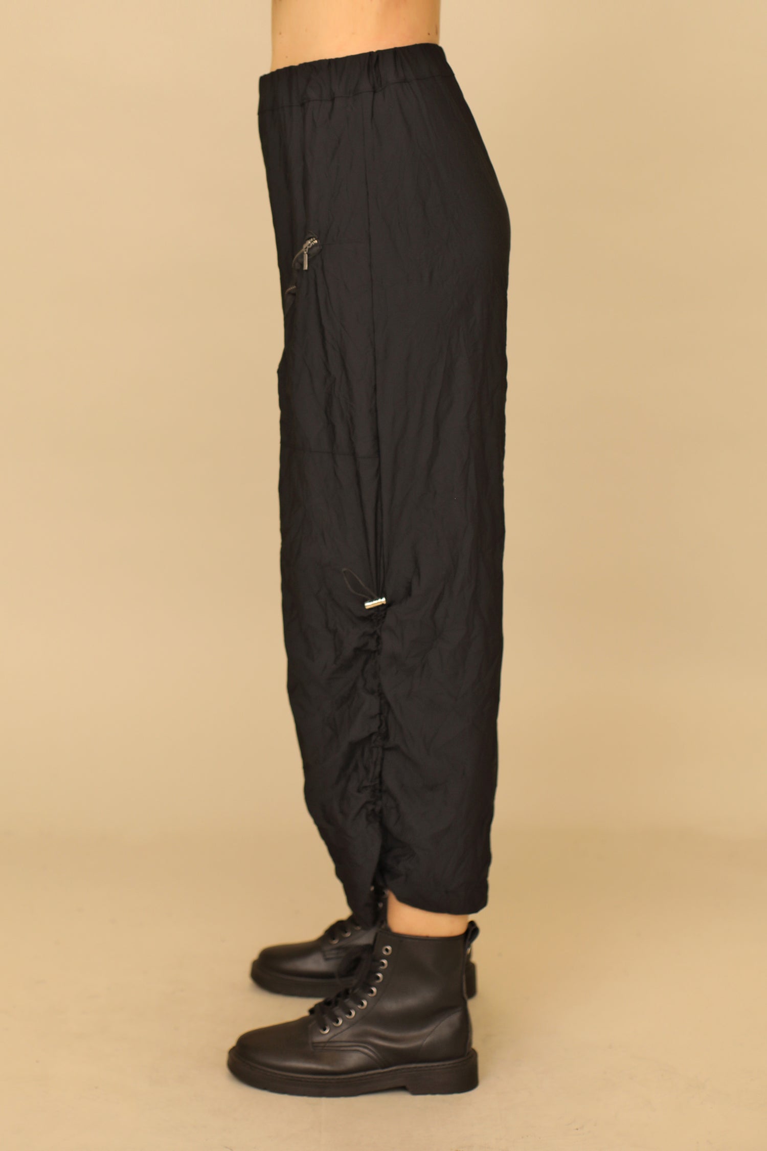 The straight relaxed fitted Andrina Pant offers a balance of comfort and sleek details to revamp your fall looks. The side drawstrings tied with crinkled finish and front curved zipped pockets adds unique textural depth and appeal, while the stretchy waistband provides ease of wear for a versatile pair of bottoms to embrace this fall season.