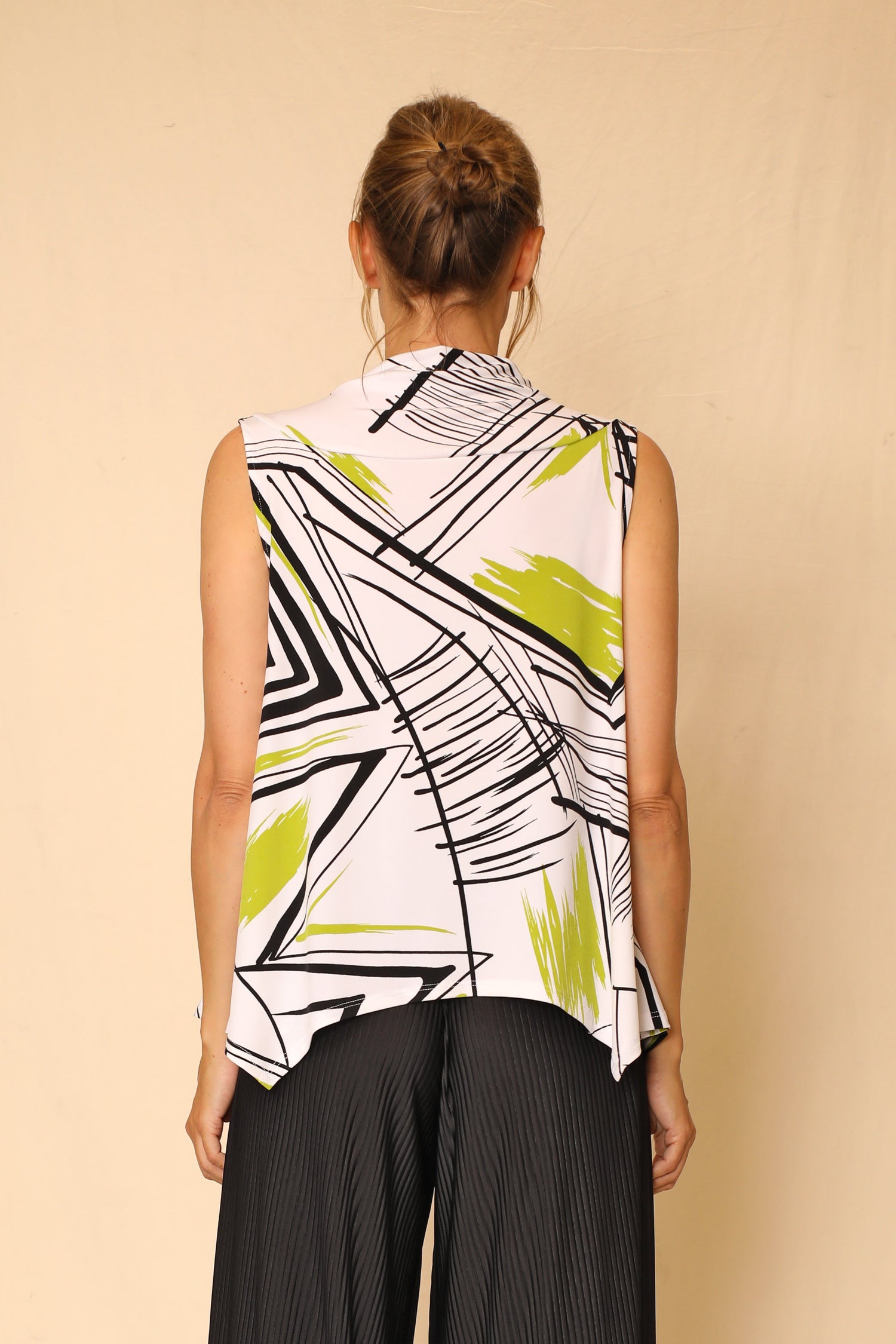 Shown in our striking Jungle pattern, it adds to the mesmerizing design of the Arleth Tank. The loose nature of its silky-smooth fabric elevates the A-line fit to accentuate the flow of its draped side pockets that form a shark bite hem. The cowl neckline gives you an effortless look to top any outfit with an unforgettable bold fit.