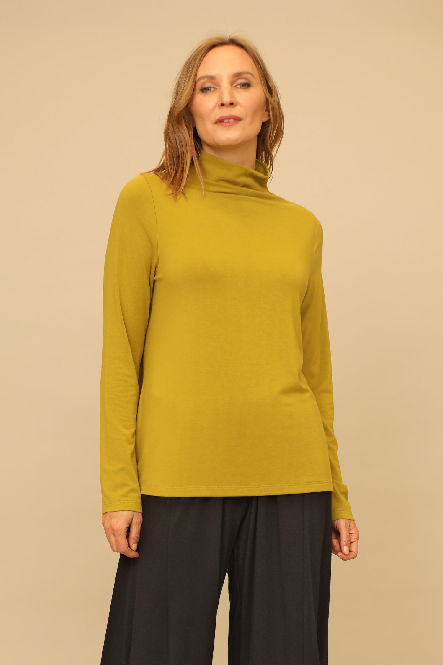 Cut from our handpicked modal cotton fabric, the long sleeve Bethany Top is an absolute needed fall essential. A loose turtle neck and relaxed A-line silhouette allows for easy layering under any coat and extra warmth to stay cozy for those seasoned days.
