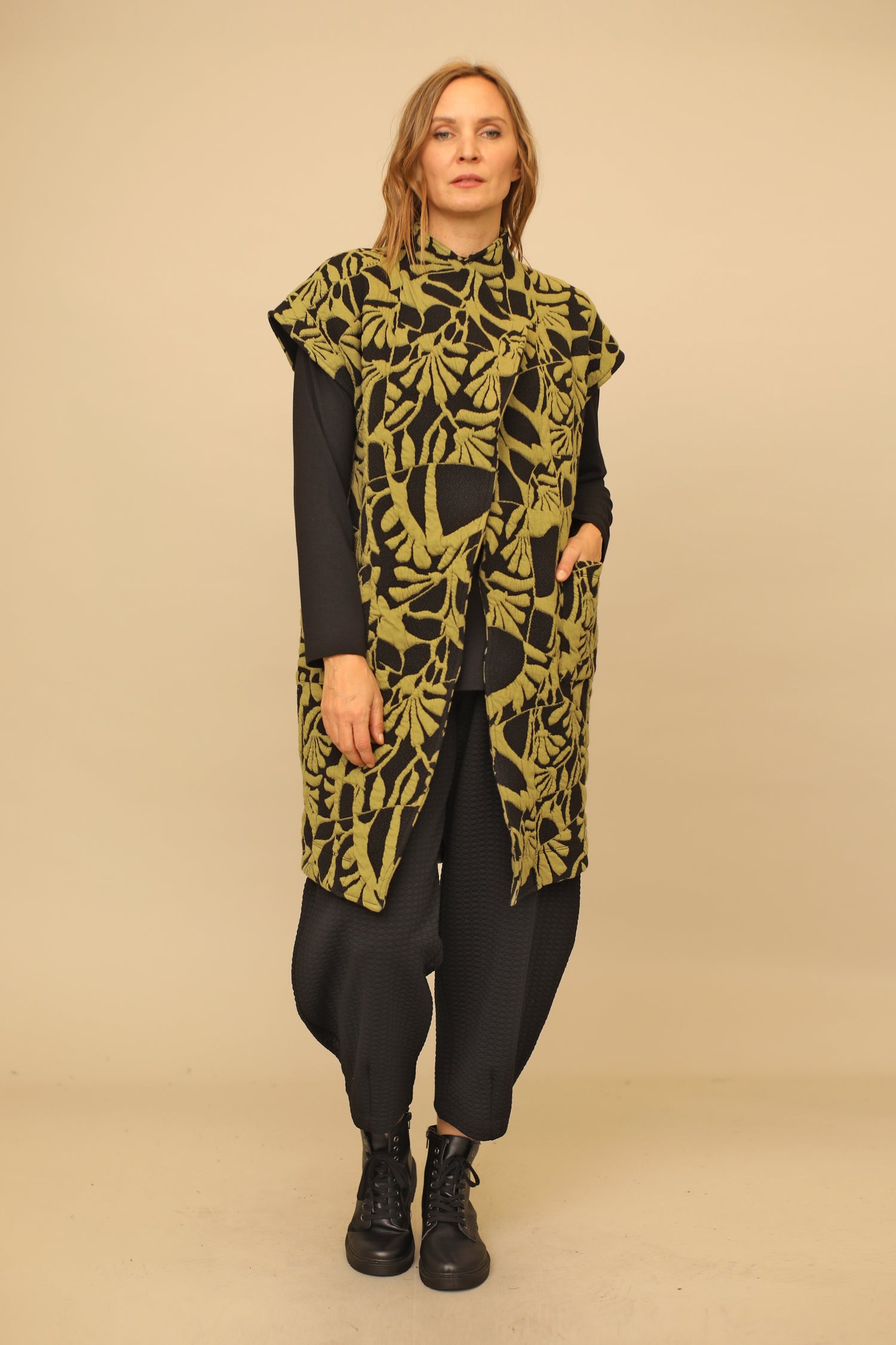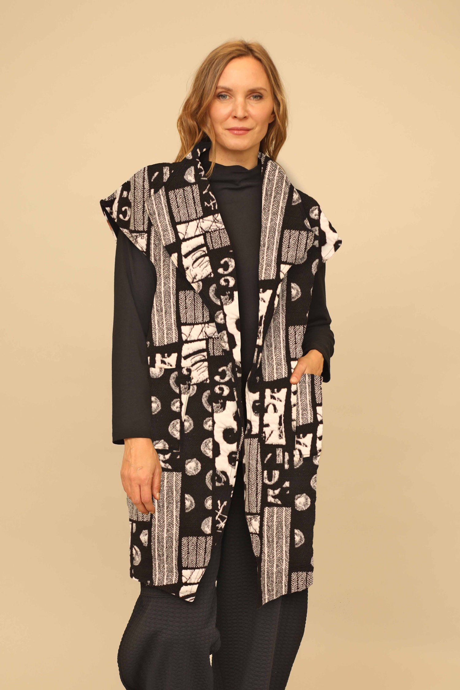 Become the epitome of beauty and grace, with the all new extended sleeved Brimsley Vest. An absolute gorgeous piece that beautifully layers over any top with its design of a shawl collar and boxy fitted straight hem, front patch pockets, and a button fastening in our puffed jacquard fabric.
