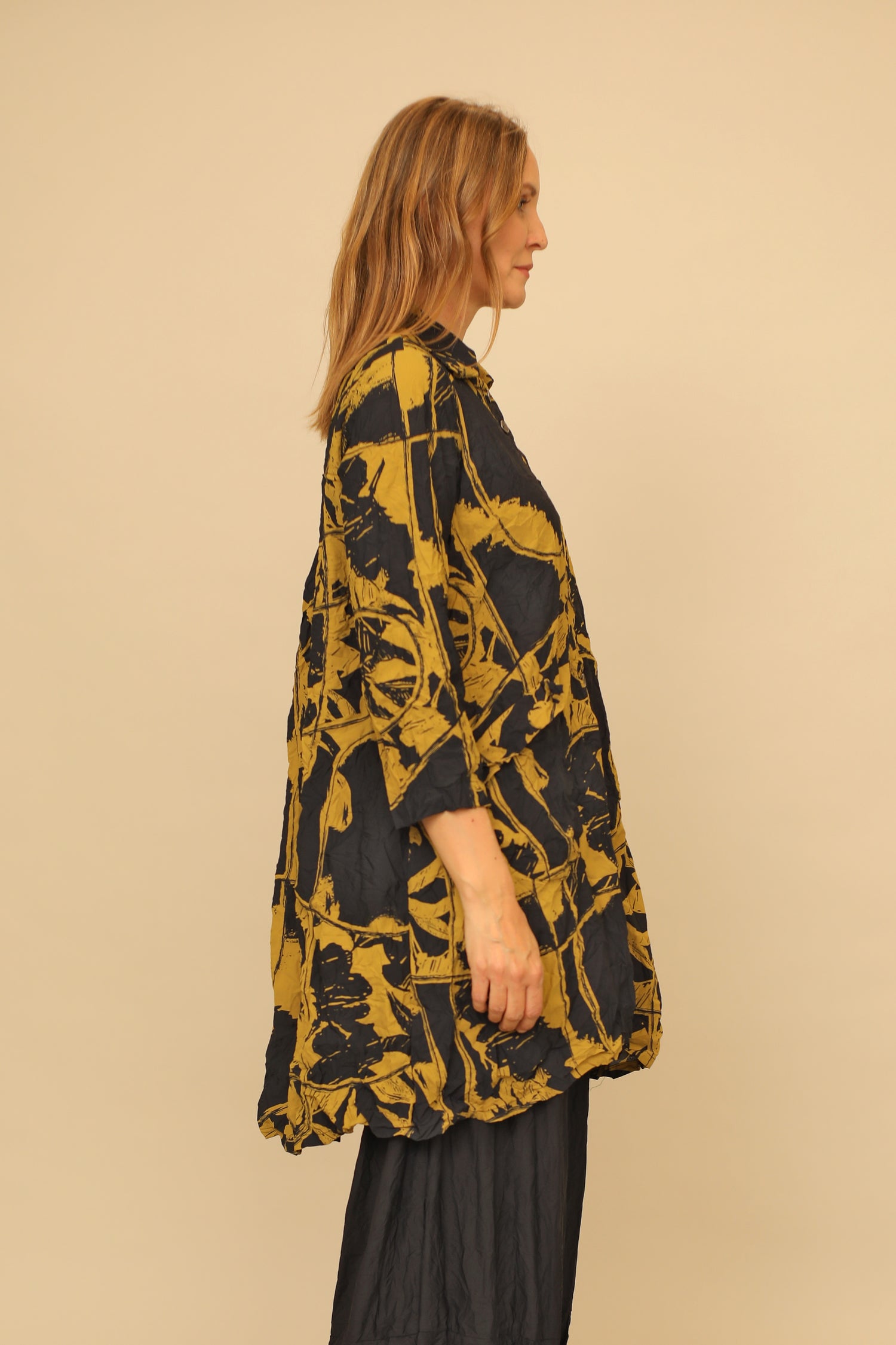 Create a new dimension of style when it comes to the button up crinkled Camille Shirt. Charmingly shown in our Fig colorway, the standout details of front patch pockets with faux flaps and tunic length asymmetric hem in an A-line fit excellently pairs with the key comforts of its collared neckline and ¾ sleeves.