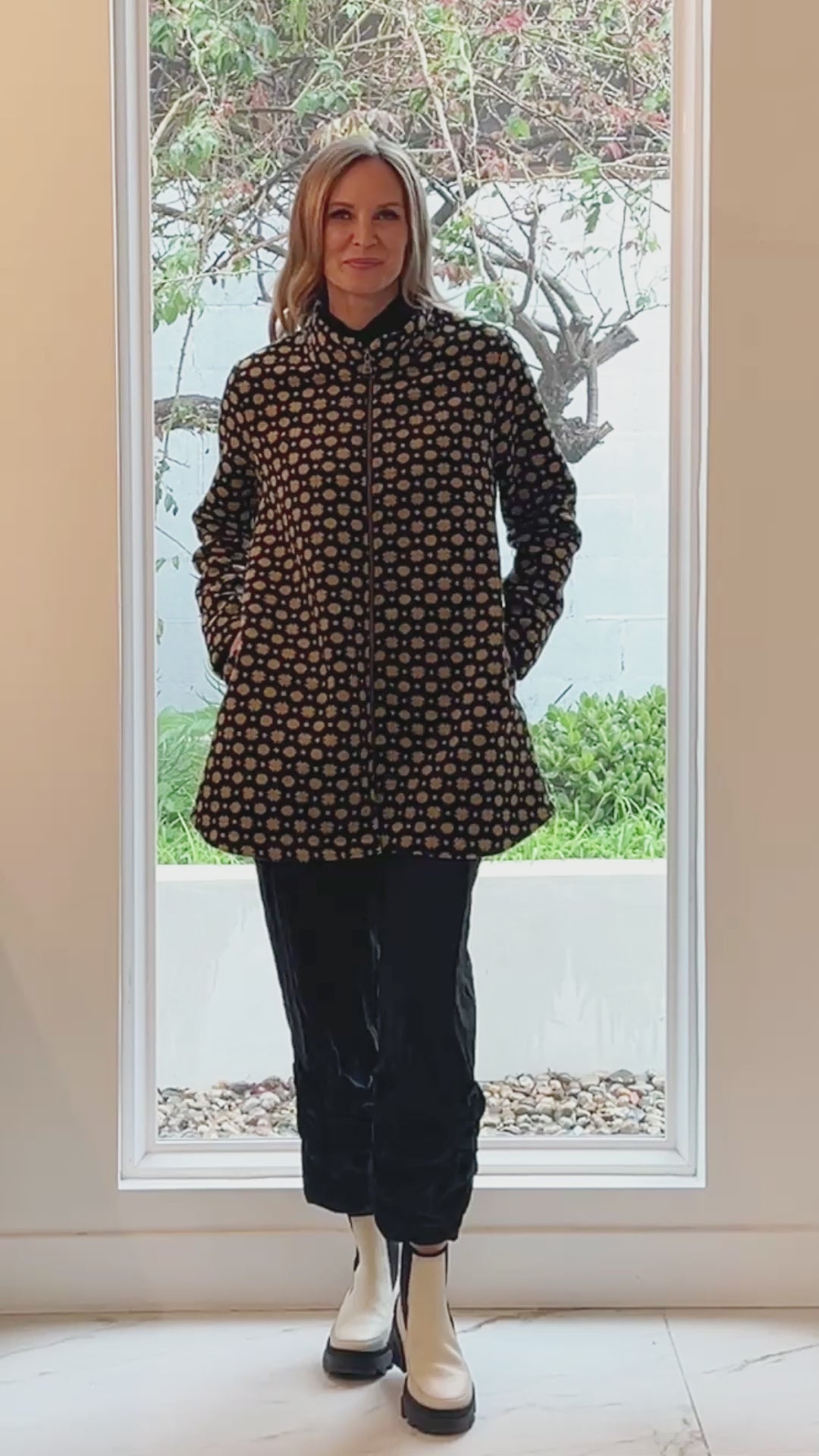 The Christy Jacket is a sophisticated zip-up jacket with a mock neckline and long sleeves. The A-line silhouette with a curved hem offers a flattering fit, while its comforting warmth makes it perfected for layering. Impeccably crafted to an easy on the go style/