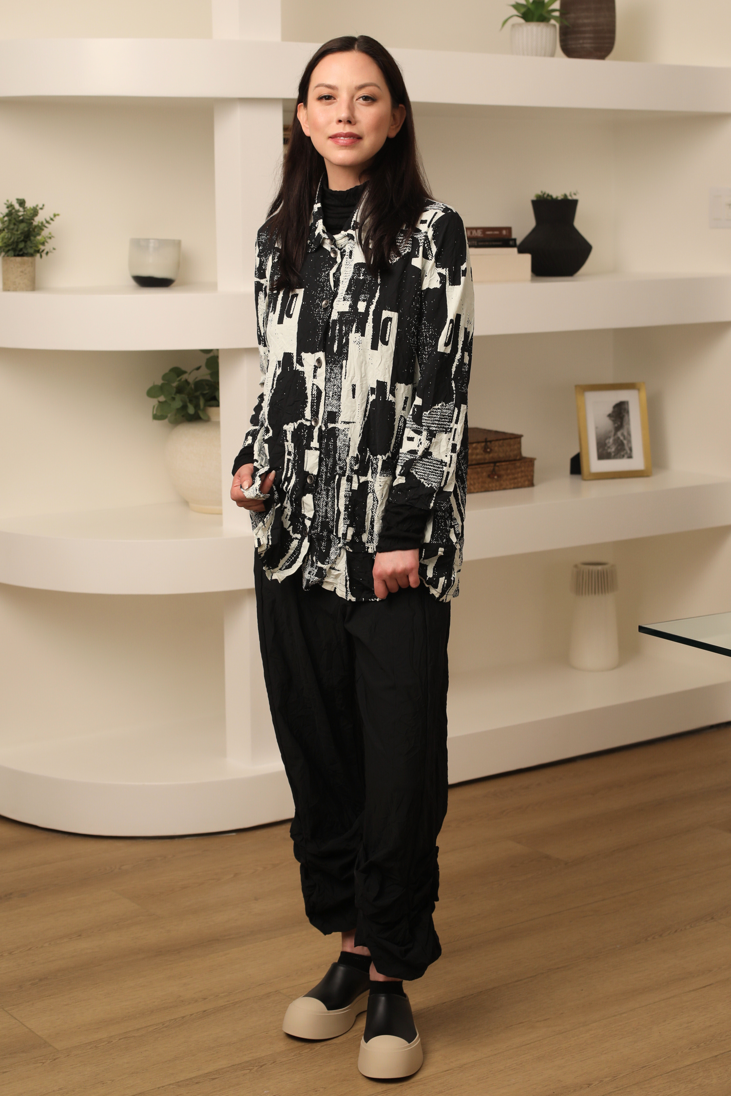 Boldly strut down in our Dinah Pant. Fitted with an elastic waistband, side pockets, and sculptural pleated details. Crafted in our travel friendly lightweight crinkle knit parachute fabric that bring all day comfort.