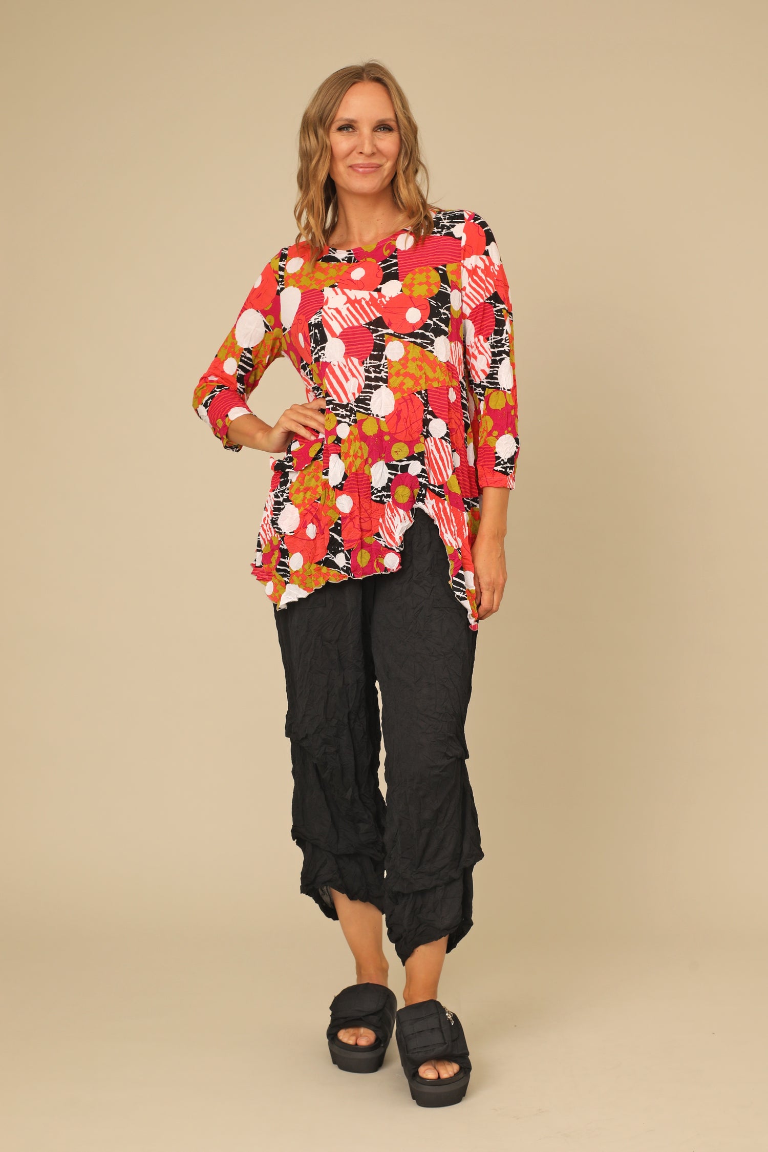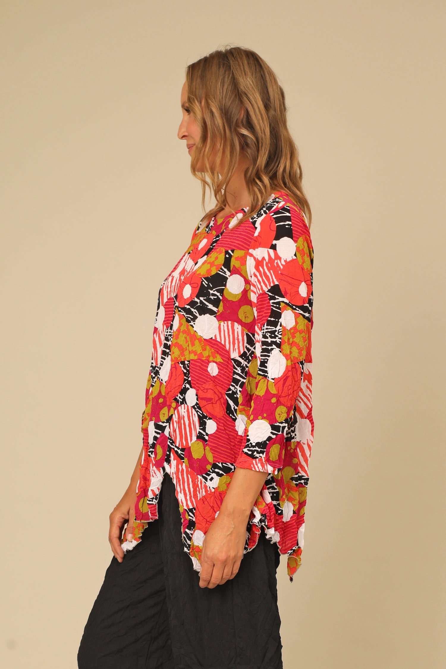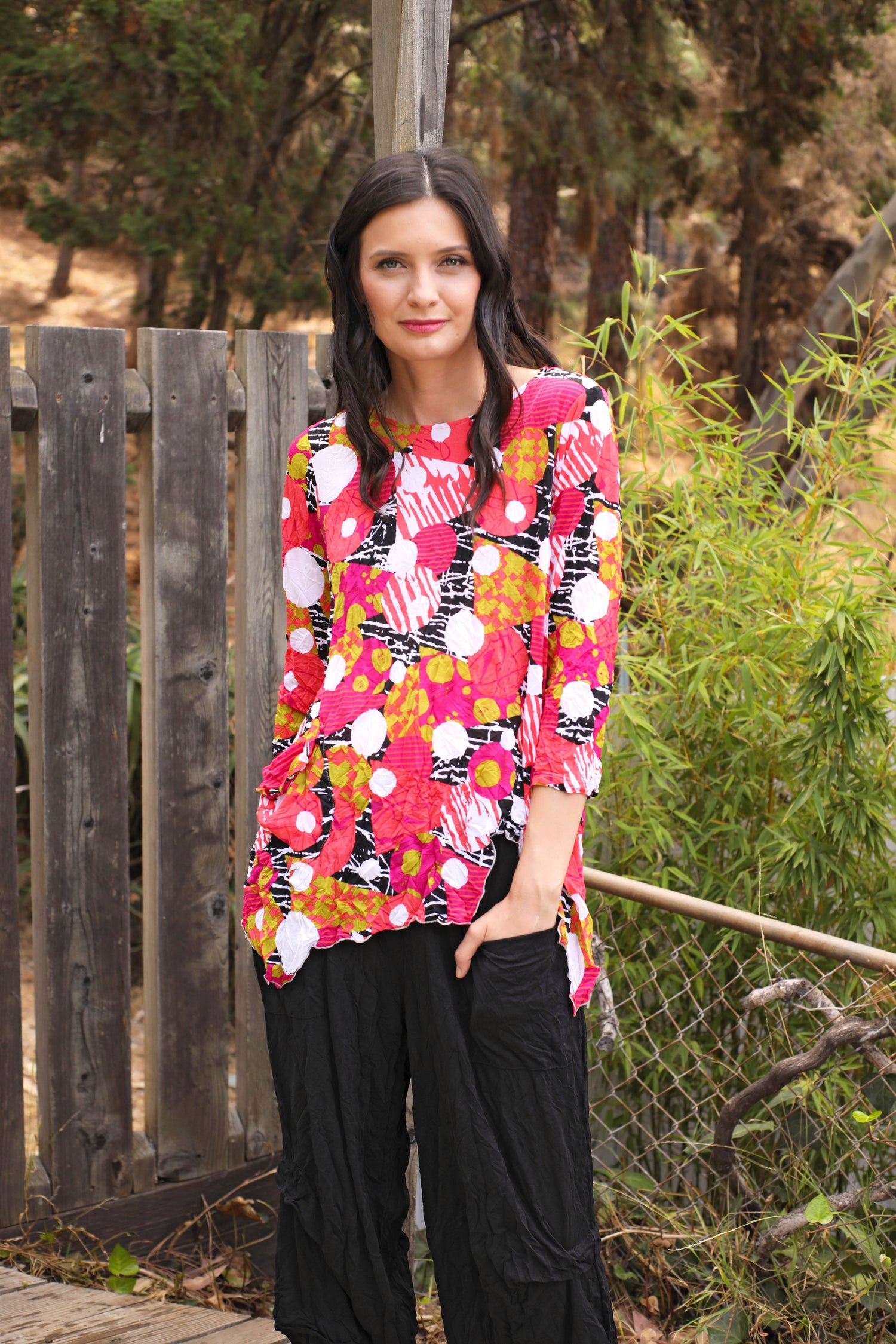 Spring into style with the Emily Top's stunning asymmetric hem, front flapped patch pocket, with a 3/4 sleeved A-line silhouette and rounded neckline. Perfected to have you boldly stand out no matter where you are, in our travel friendly crinkle mesh fabric.