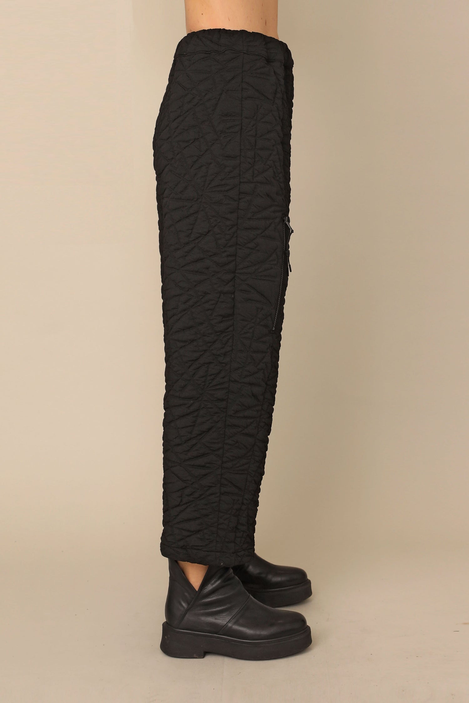 A statement in comfort and form. The Fawn pant is designed with a stretchy waistband and zipper trim that balances chic edge with high quality comfort, crafted in our luxuriously plush textured puff jacquard fabric that instantly creates a bold statement for any and all occasions.