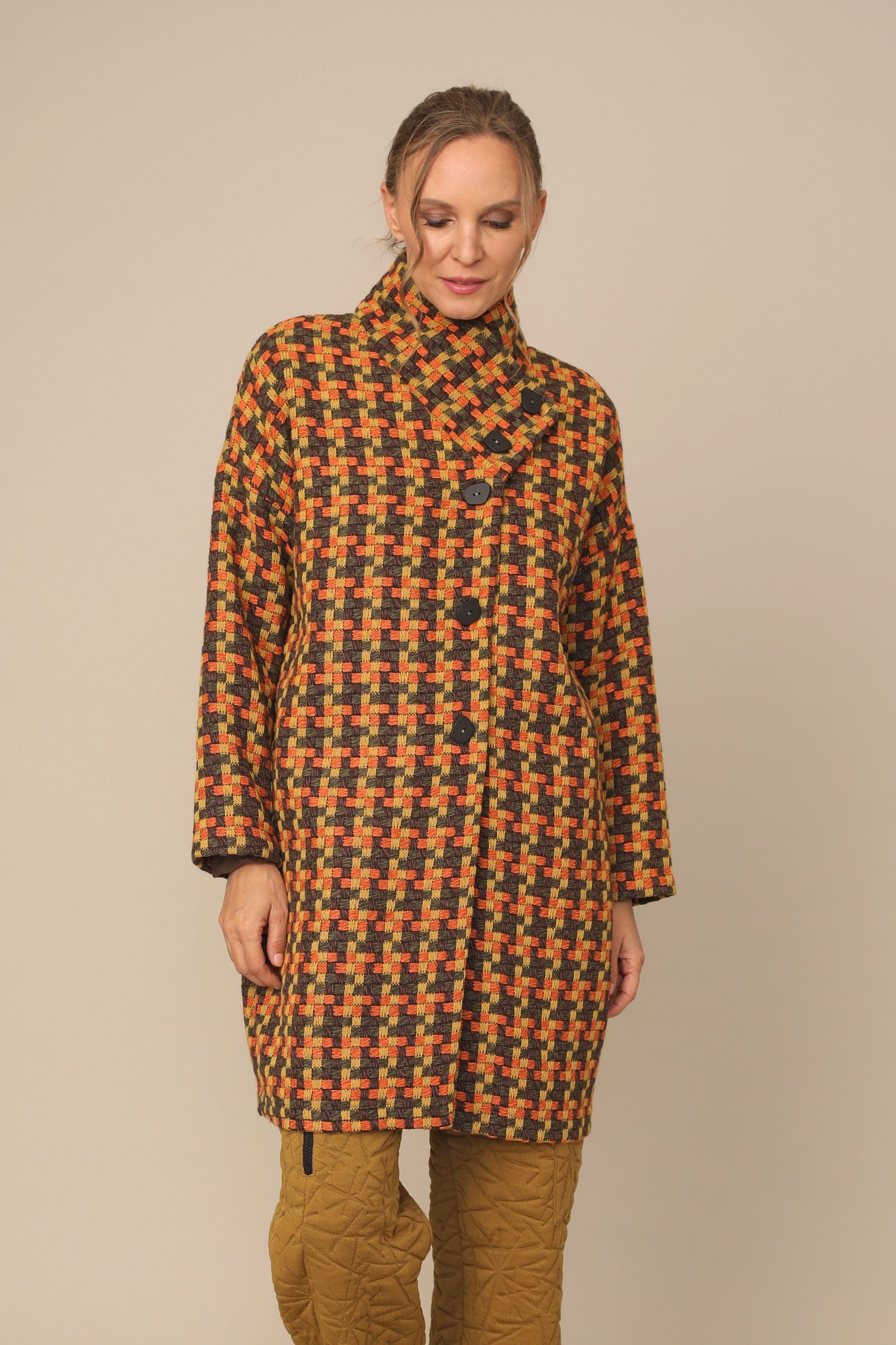 The luxe button up Harlene Coat is designed with drop shoulder long sleeves and an overlapping collared neckline. Inseam pockets and a straight hem enhances its silhouette to a gorgeous statement piece that elevates instantly any look.