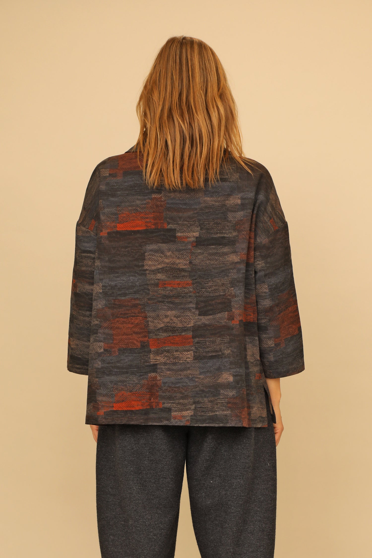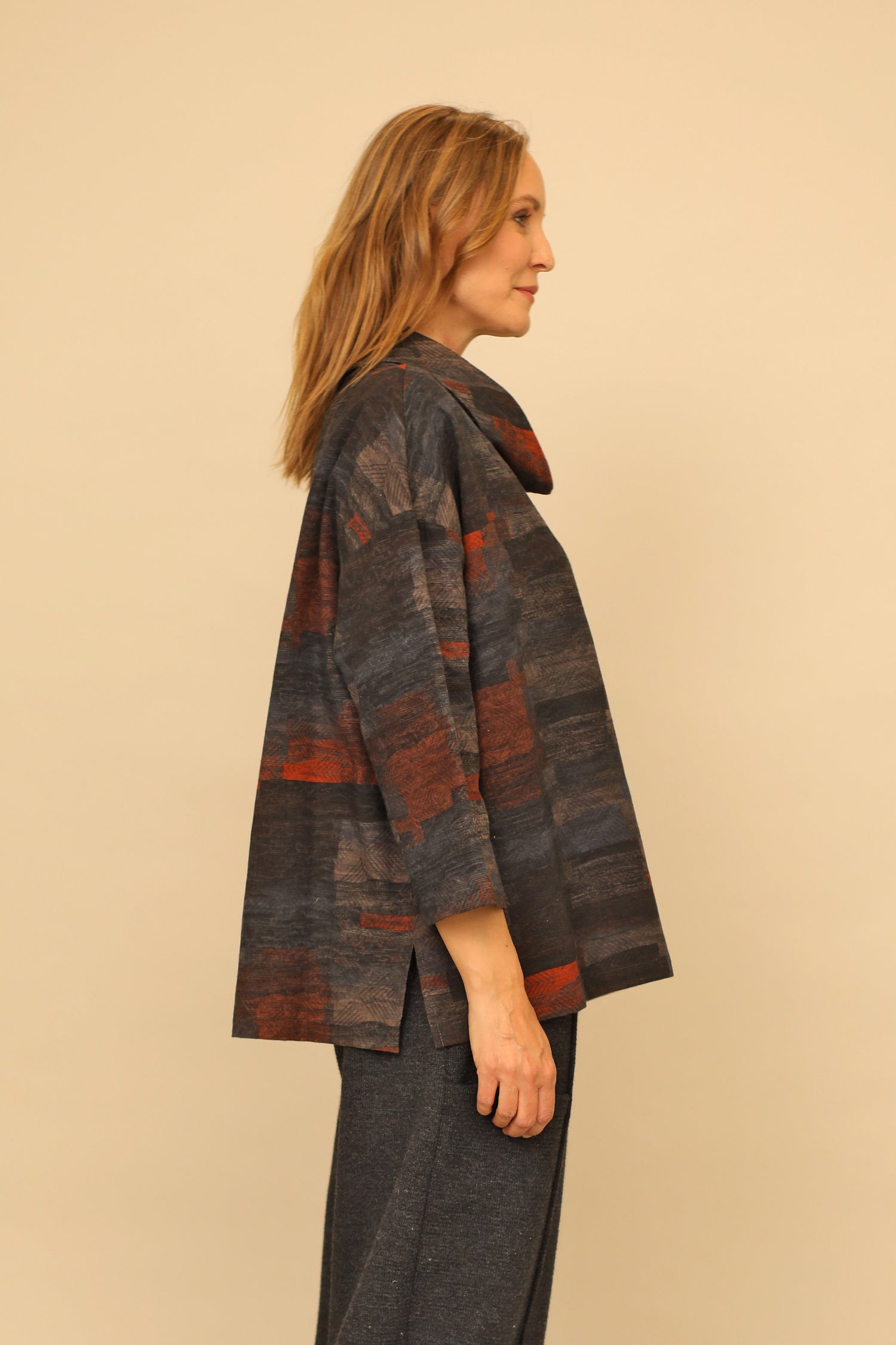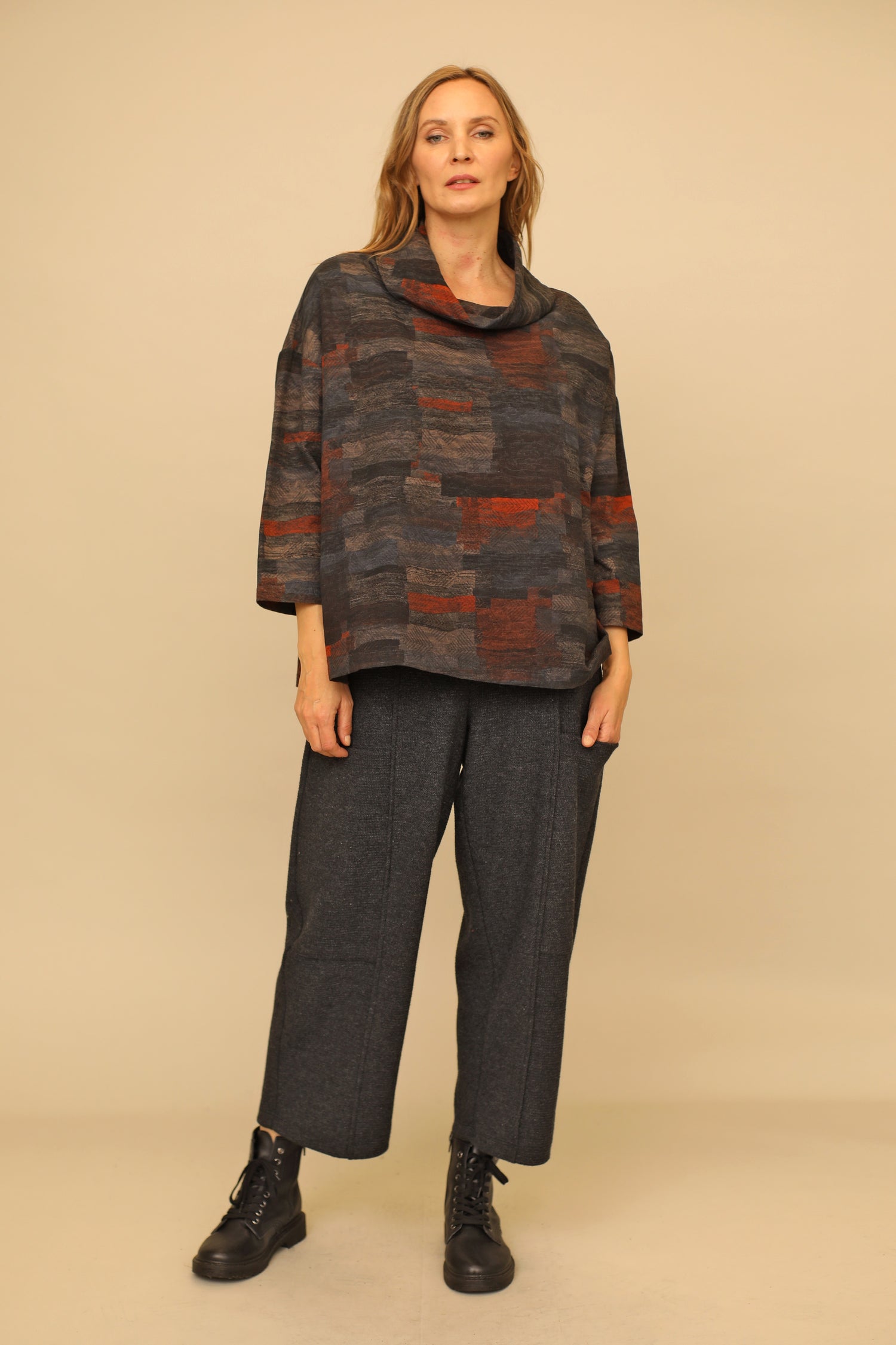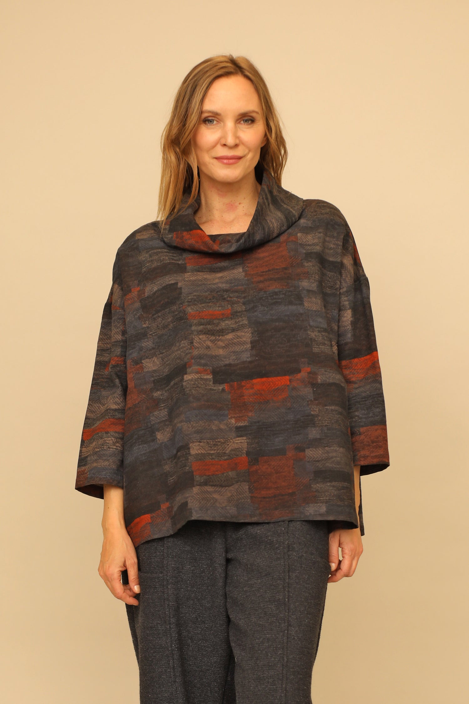Classic silhouettes meet seasonal flair. The Helene Top is bound to become your next essential staple, cut in a straight hemmed boxy silhouette with side slits, alongside its turtle neckline and ¾ drop shoulder sleeves. Showcased in our Printed Cotton fabric adding a touch of rustic charm.