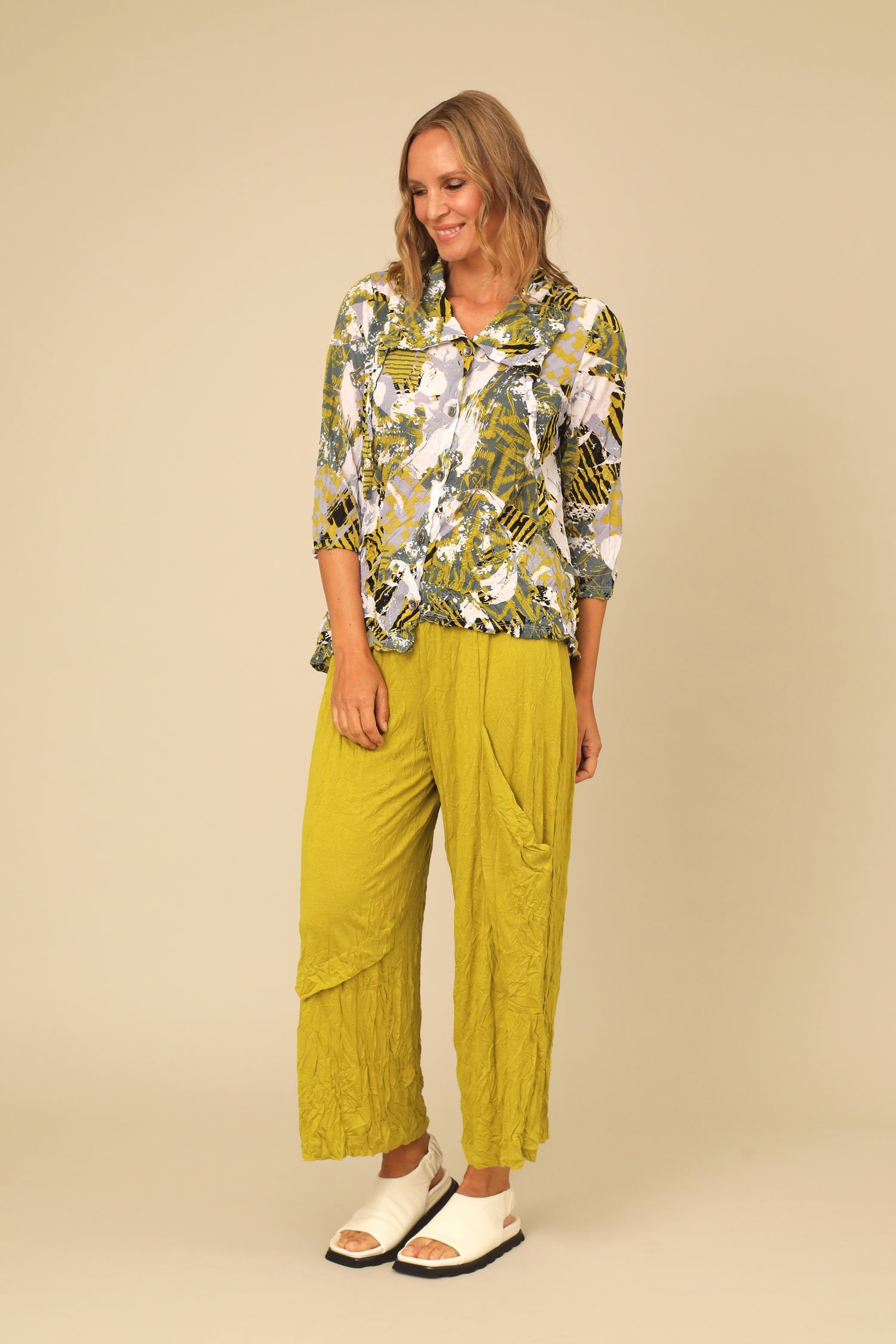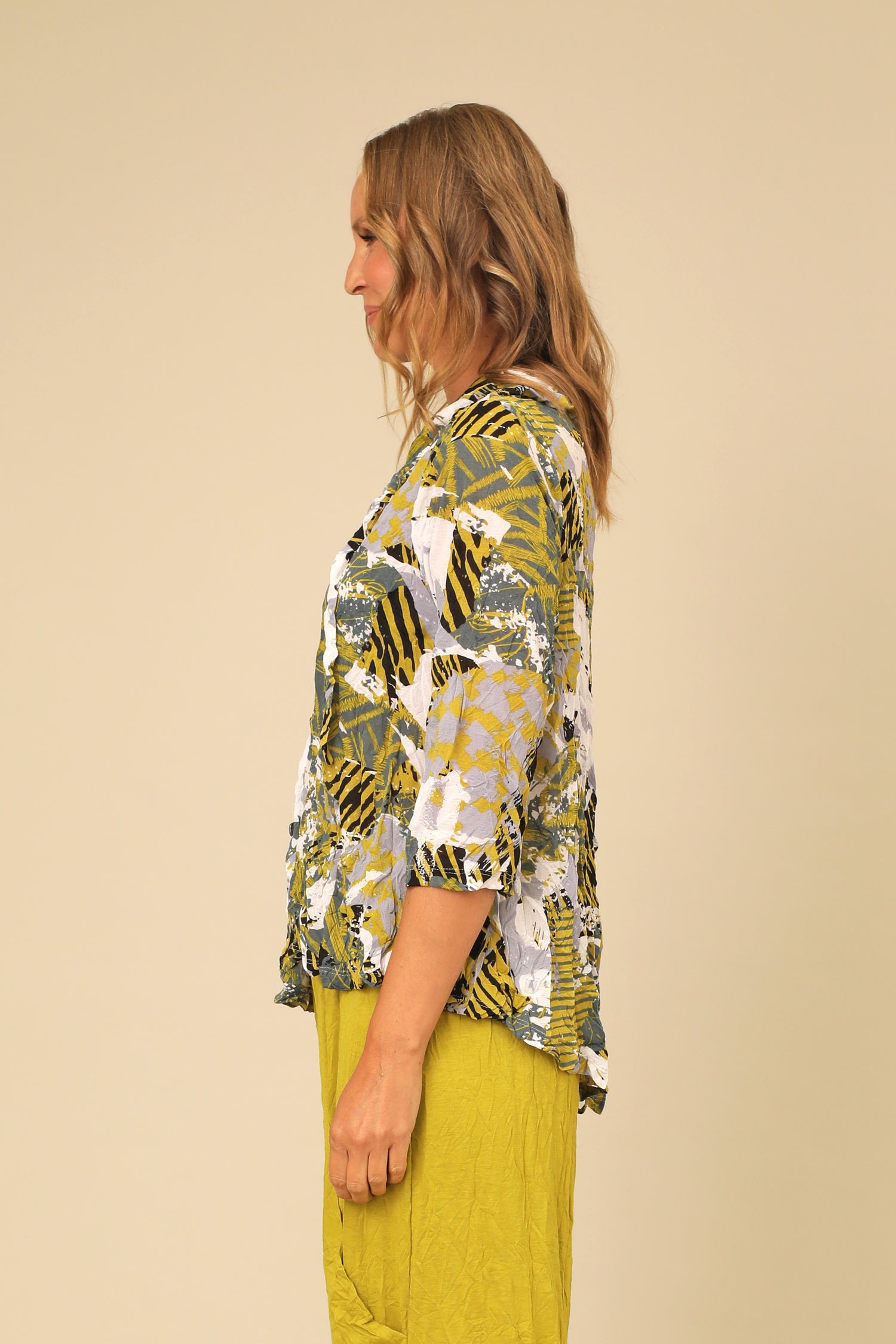 Sophisticated and chic is just the start of our travel friendly crinkle mesh Hilary Shirt. Gorgeously designed with a cinched draw stringed button up collar, 3/4 sleeves, in an asymmetric hemmed A-line silhouette and patch pocket. Layer over even your most basic tops to instantly bring any outfit to life.