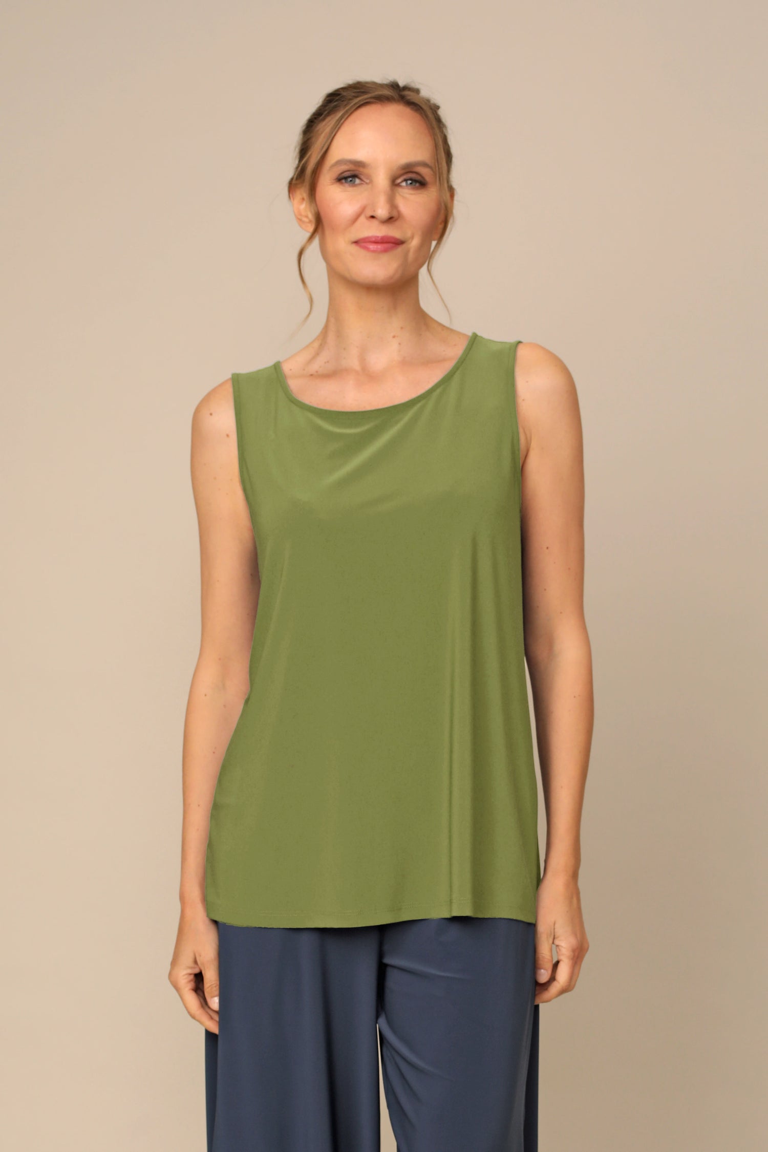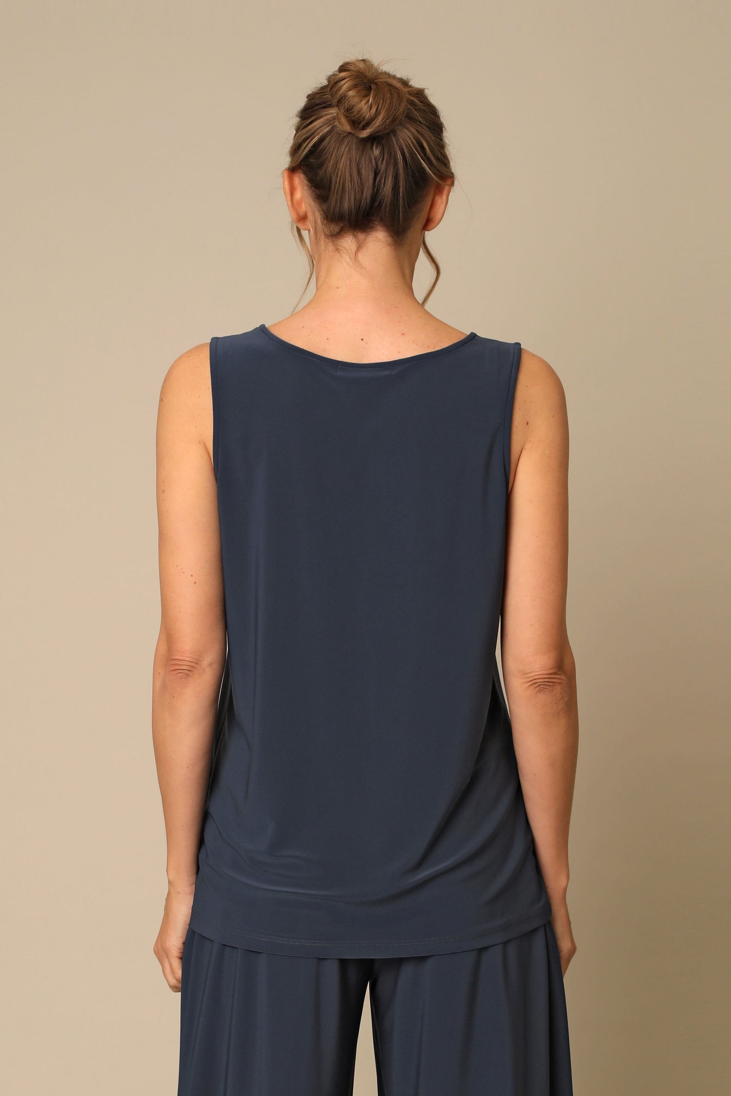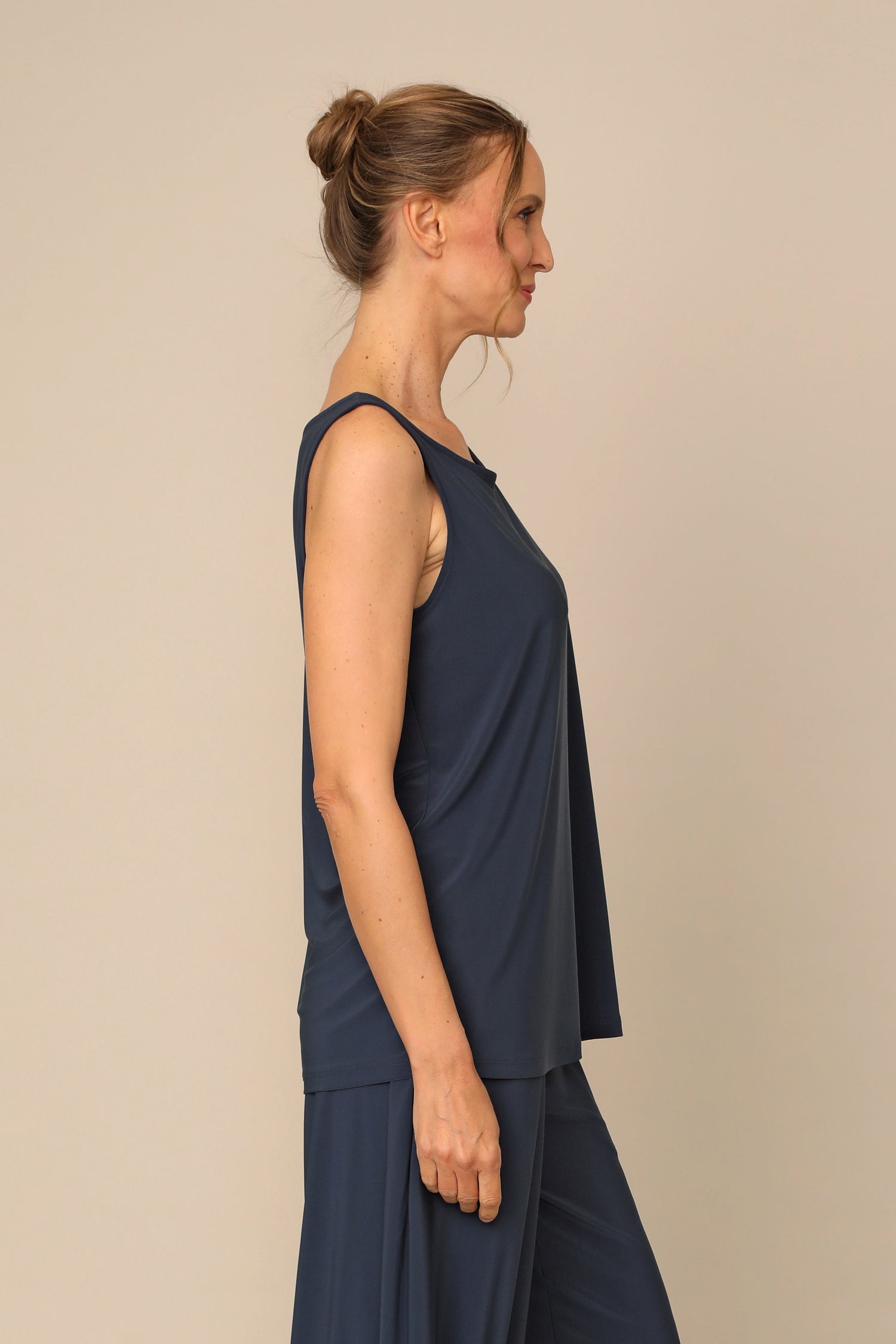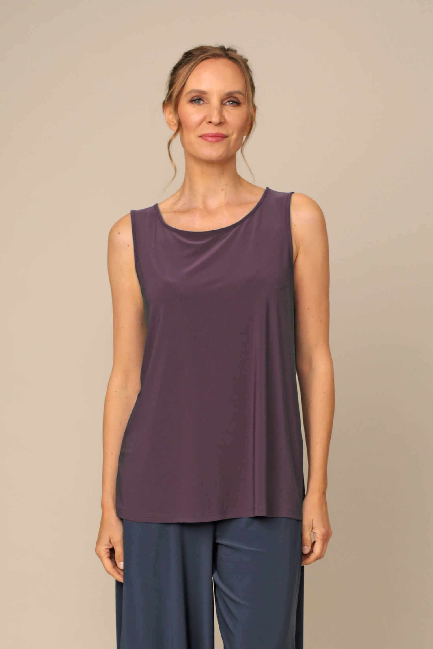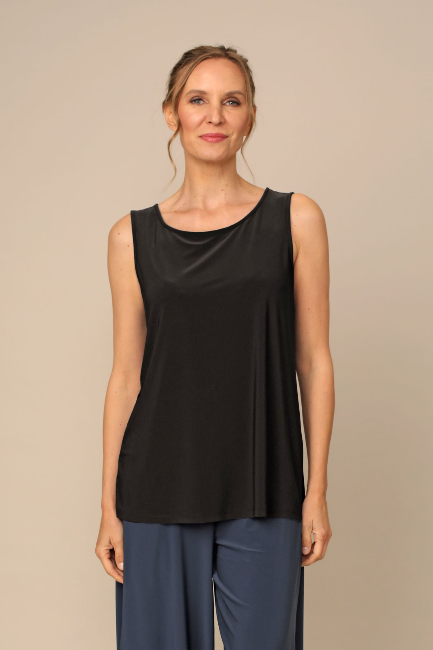 An elevated basic, keeping all the comfort with a new fresh look. The classy sleeveless Indiana Tank still brings the familiar rounded neckline in a straight hemmed boxy fit. Perfect for layering under a staple coat and highlighted in its comforting buttery sleek fabric.