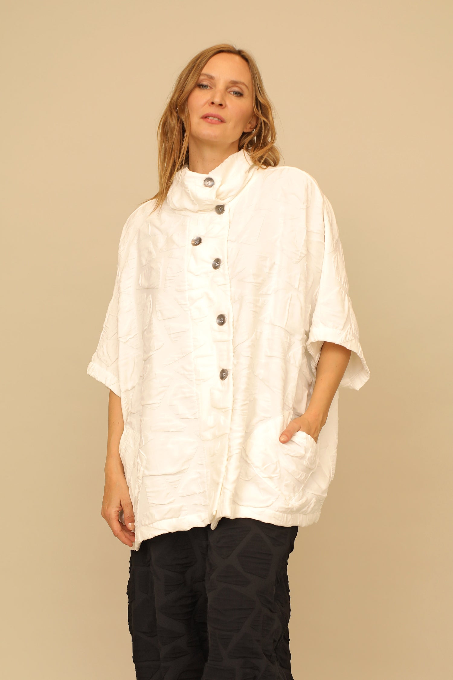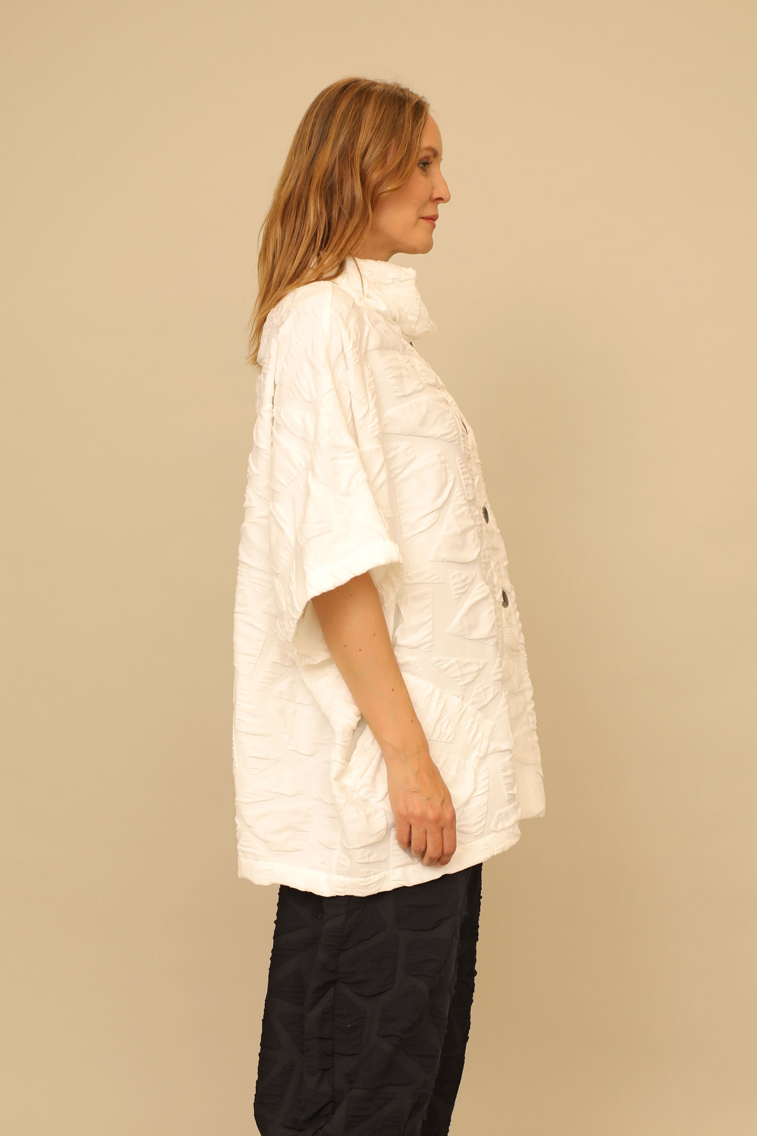 Comfort without limits and style that always stuns, satisfy your need with our dashing button up Indigo Coat wrapped in premium novelty puff jacquard fabric. Exquisitely exalted with the appeal of its ¾ drop shoulder sleeves pairing a loose turtle neckline in a straight hemmed boxy silhouette and front patch pockets.