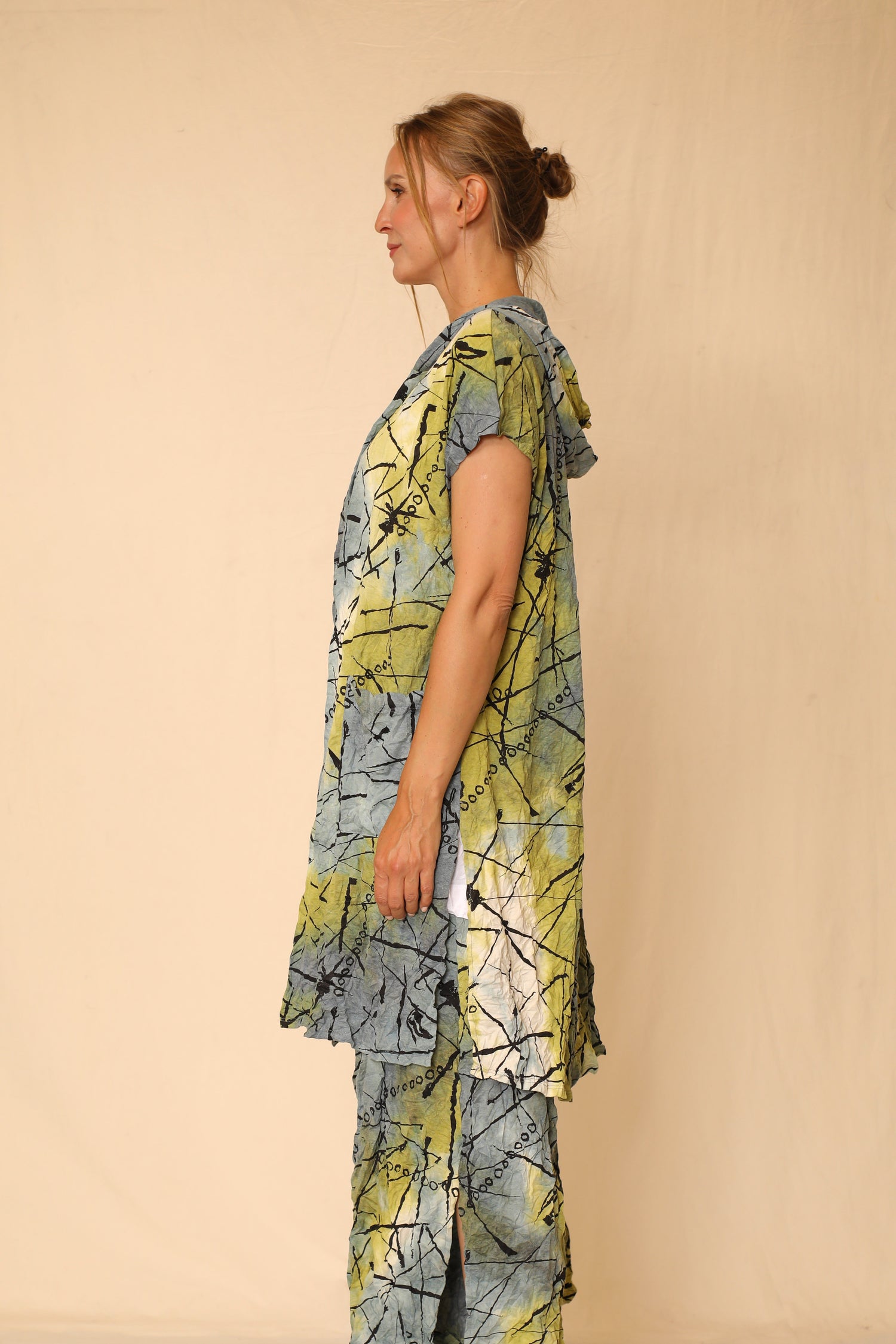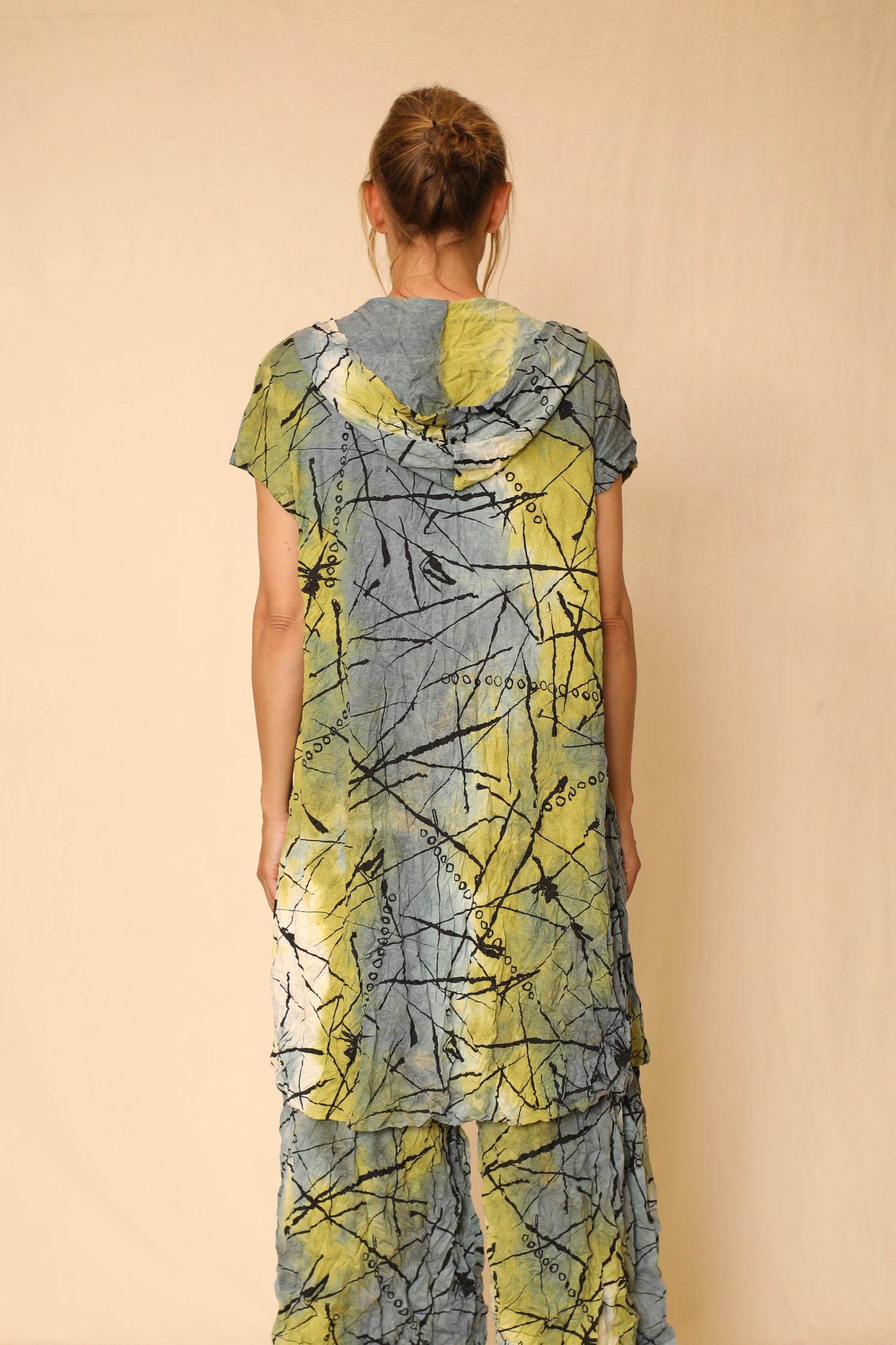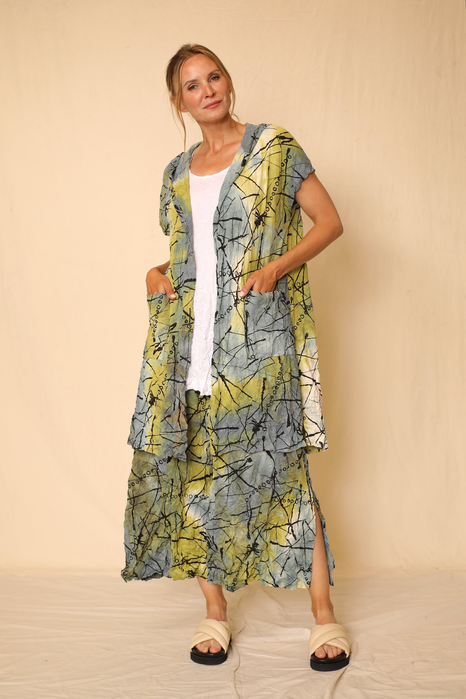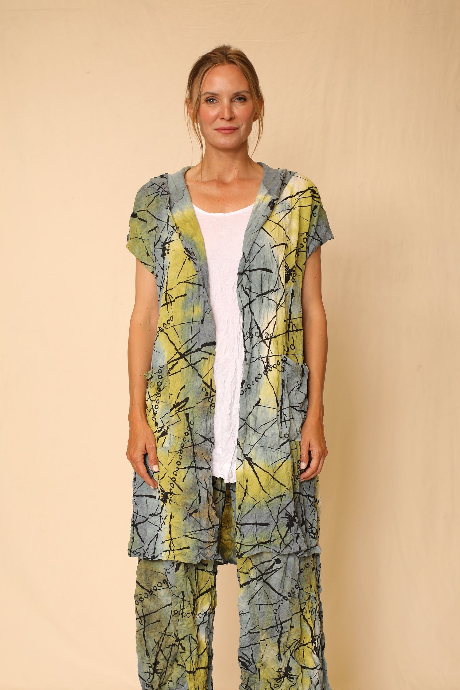 You will never not look your best when you’re hitting the town in our Ireland Vest. Its open straight hem sways gracefully from its side slits on either side and wraps you in luxurious comfort with its drop shoulder design, front patch pockets, and hood. Elevate any outfit and leave others in awe in our abstract pattern and unique array of tie-dye colors.