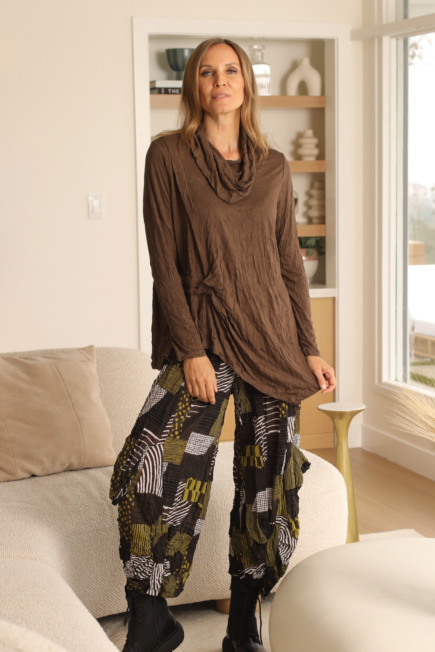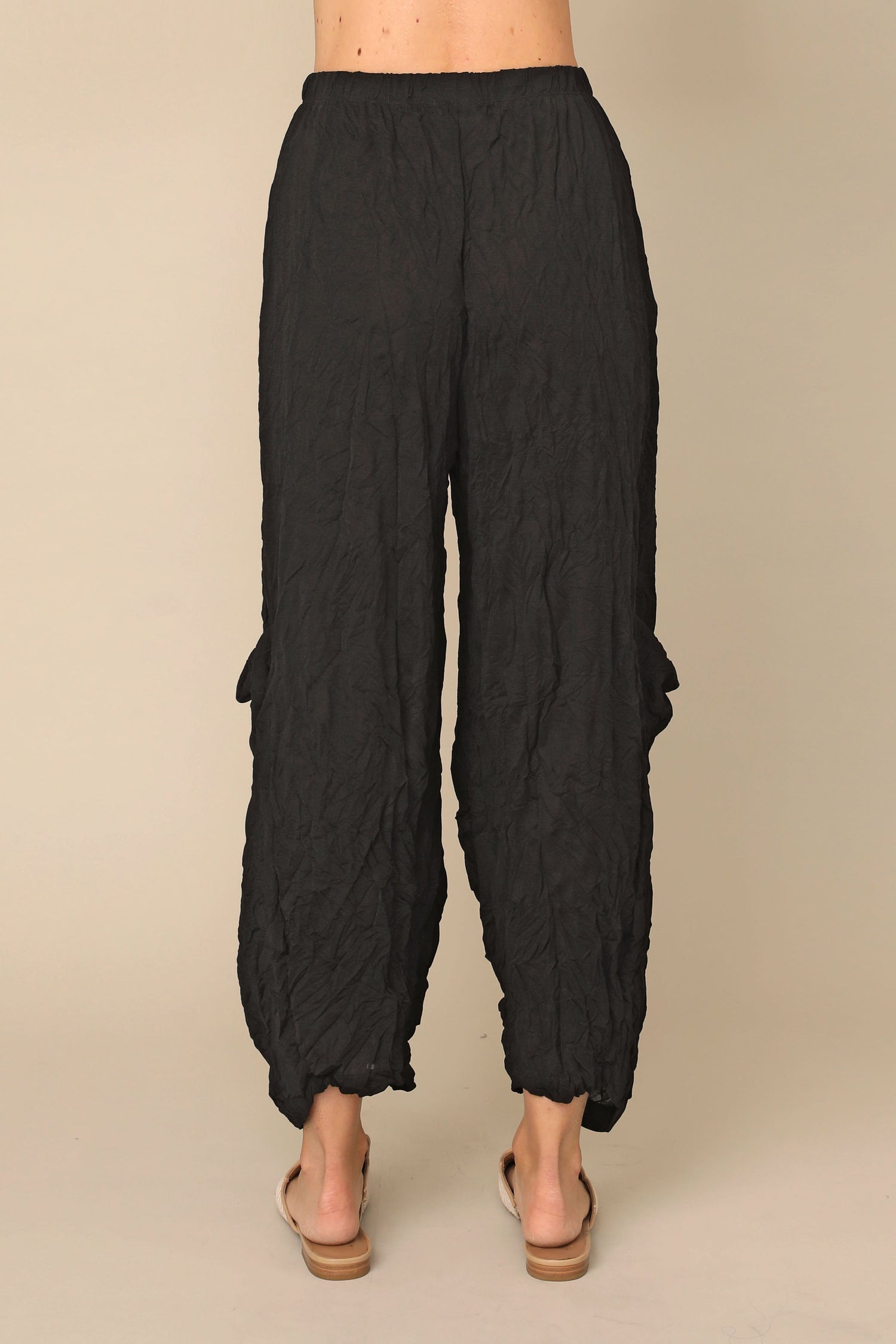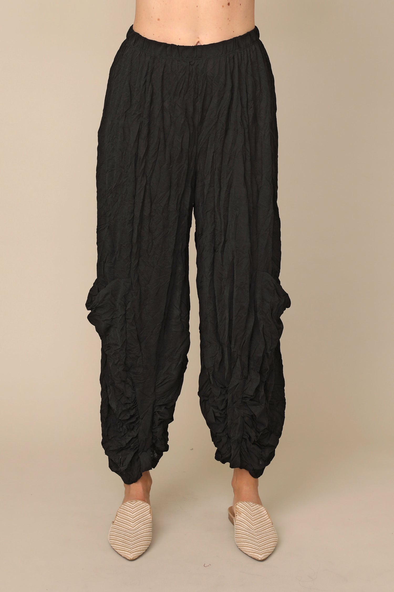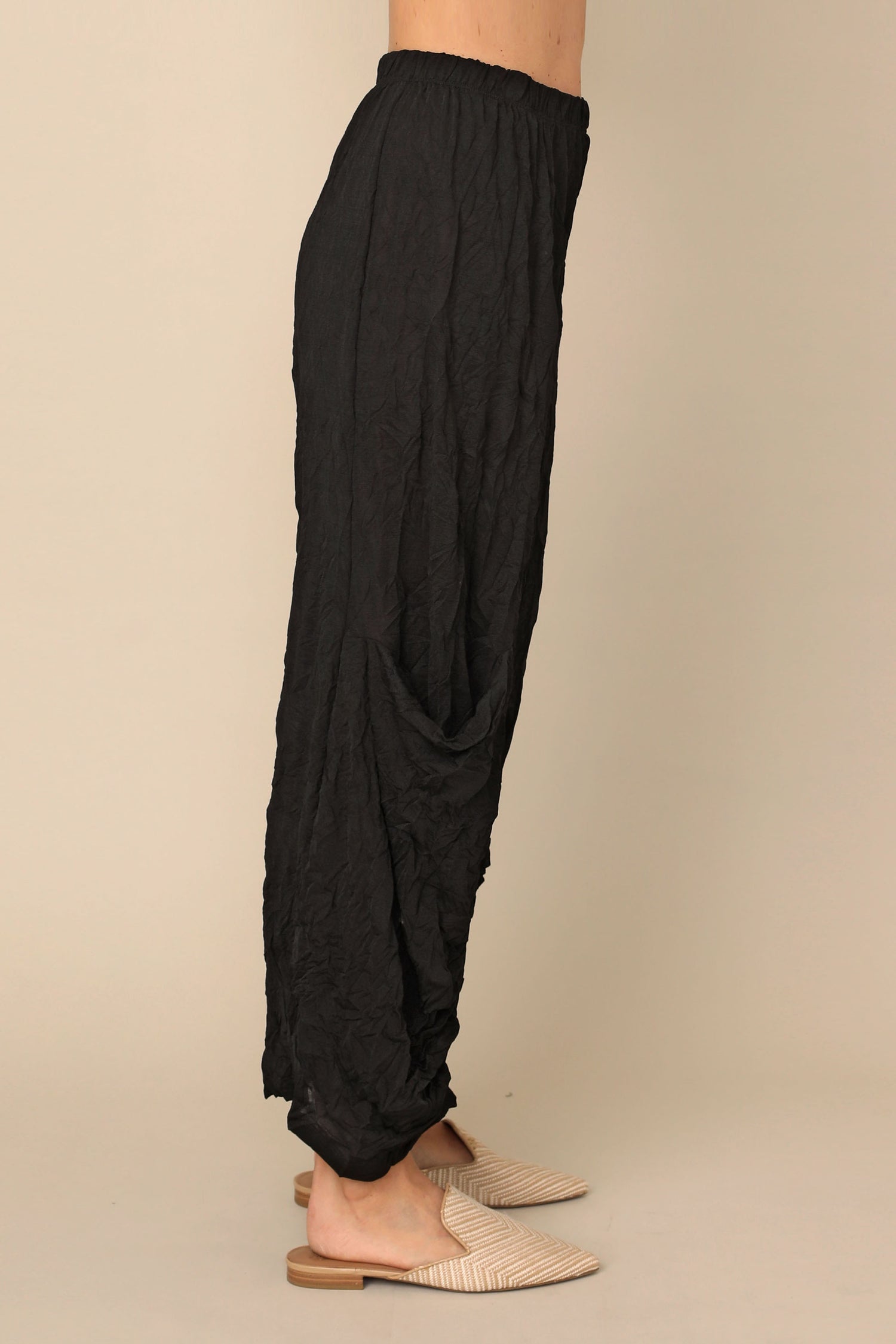 The Jalena Pant offers more than just comfort from its elastic waistband and loose fit, but the thoughtful details of its front cinched design create a beautiful silhouette that ties perfectly with the drapey side pockets for an instant effortless put together look in our crinkled mesh fabric. Pack and travel with ease to create a statement look no matter the place or occasion.