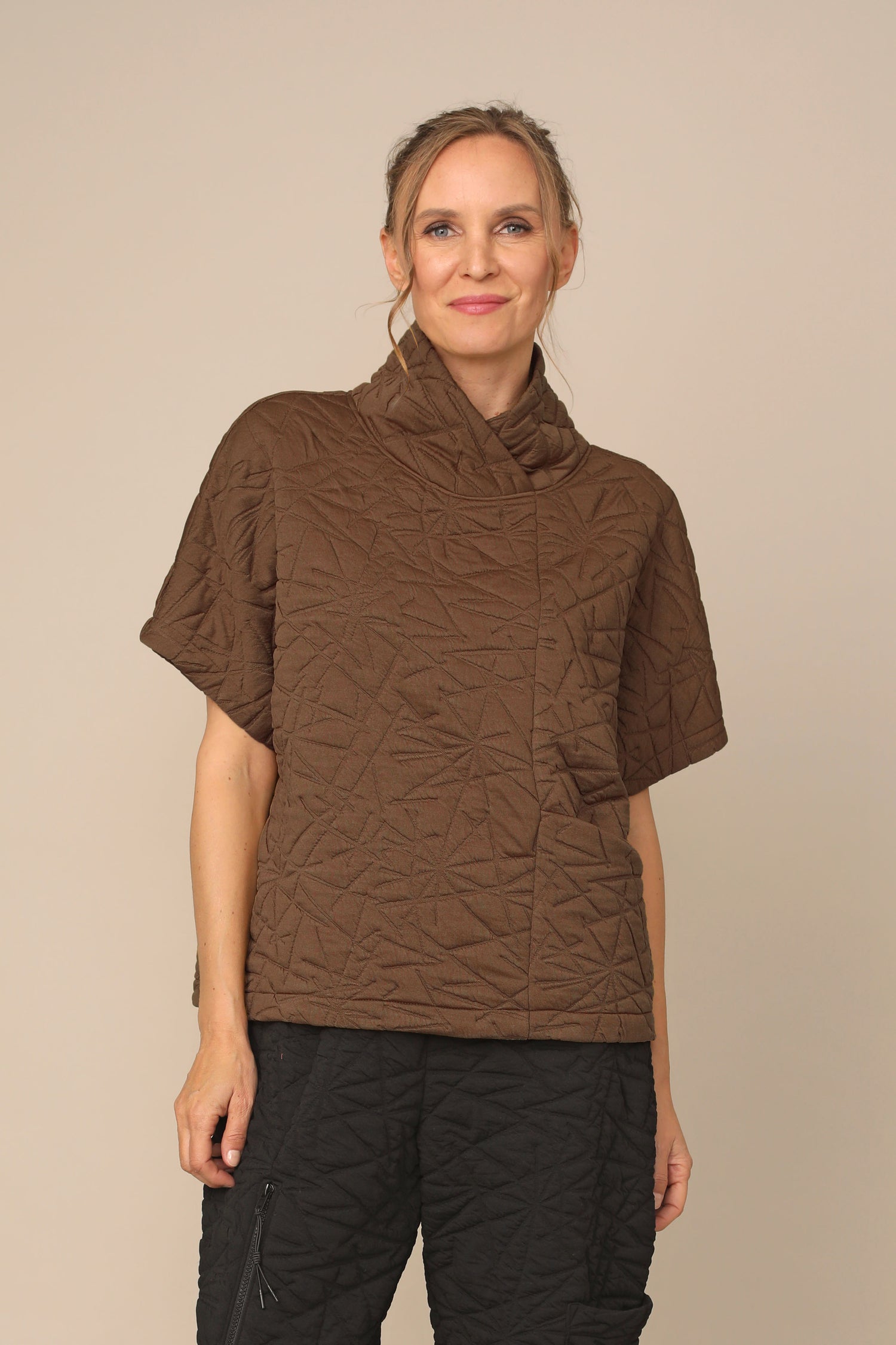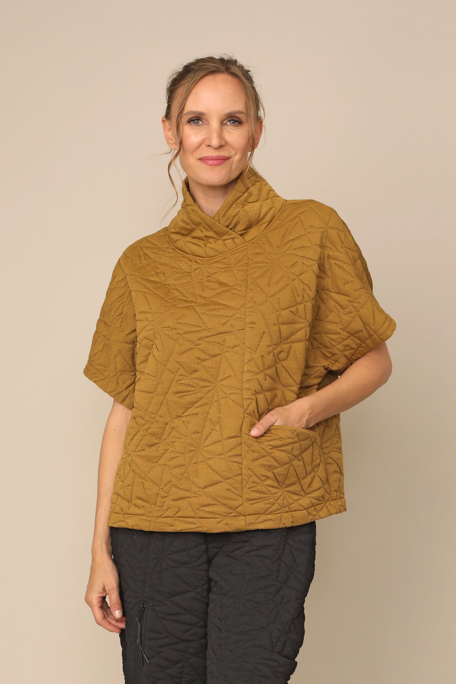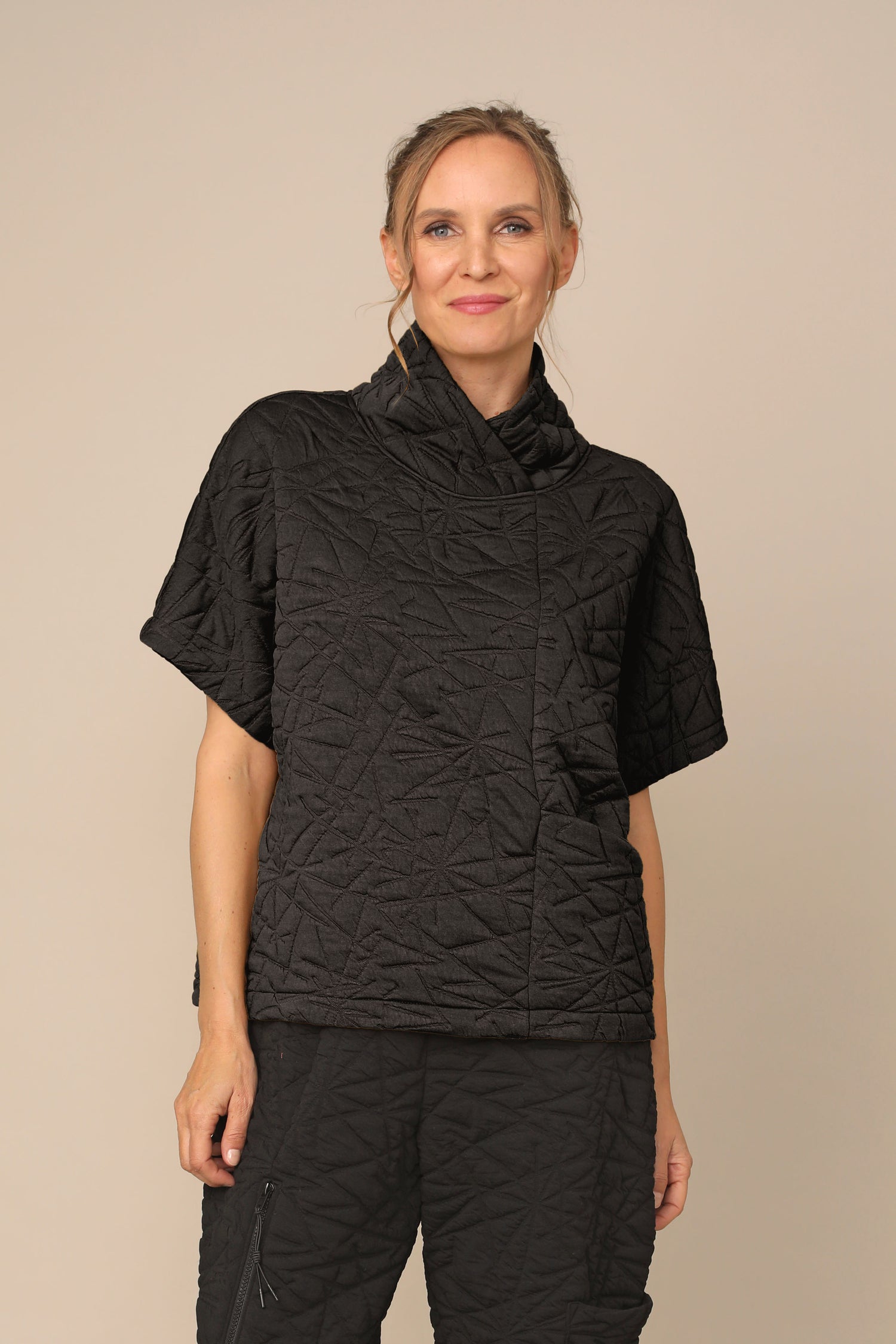 Soft structure meets exquisite charm. The Jianna Top carries dolman short sleeves with an overlapping mock neck and patch pocket in a straight hemmed boxy silhouette. Crafted in plush textured puff jacquard that feels as inviting as it looks.