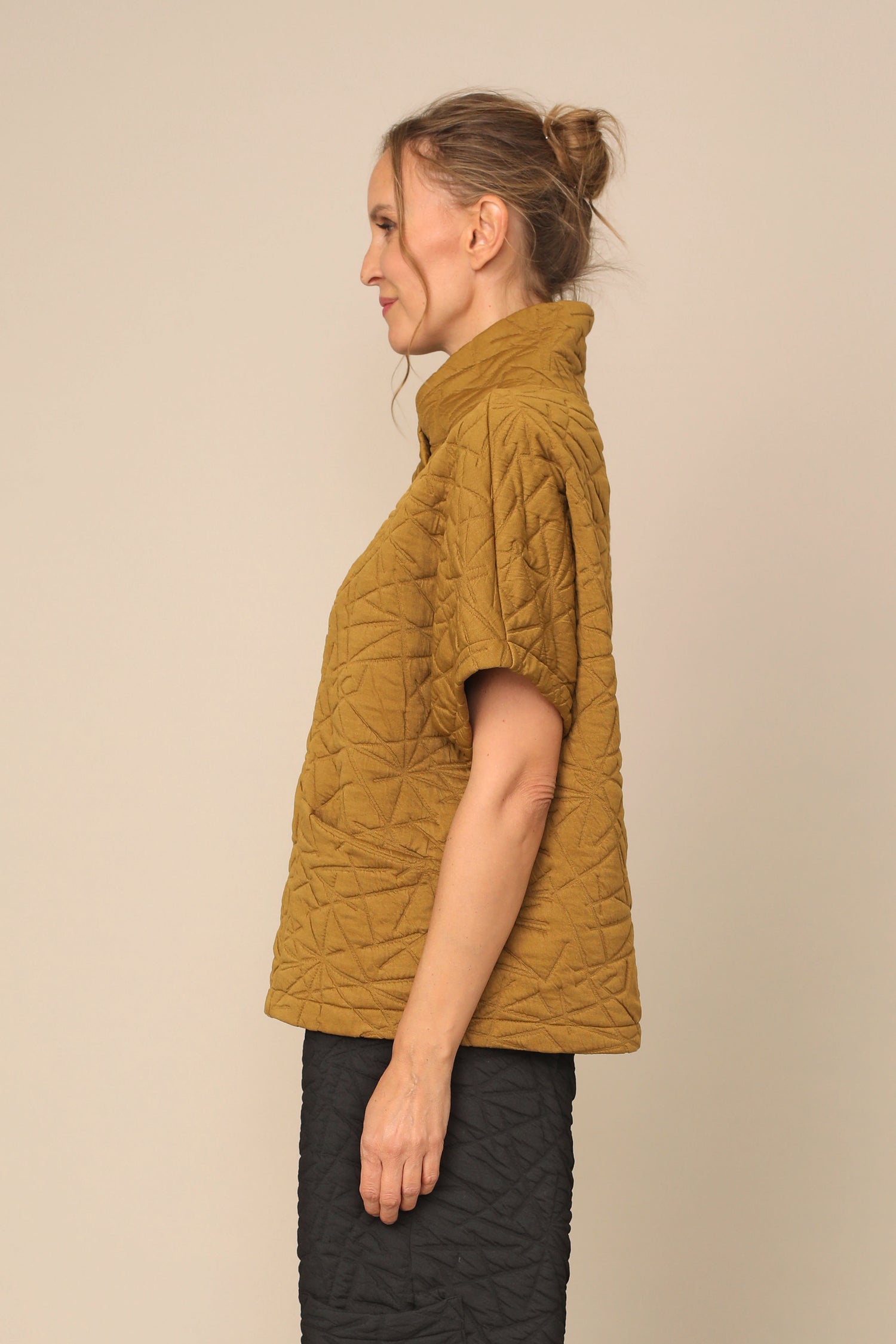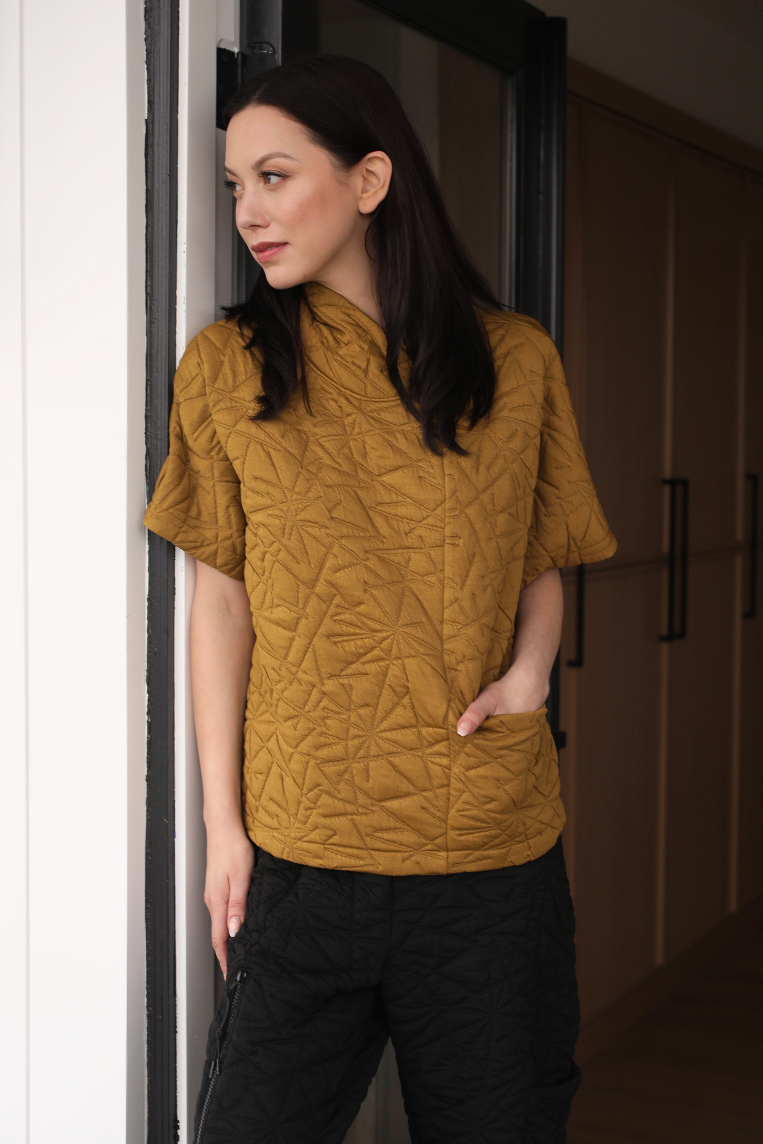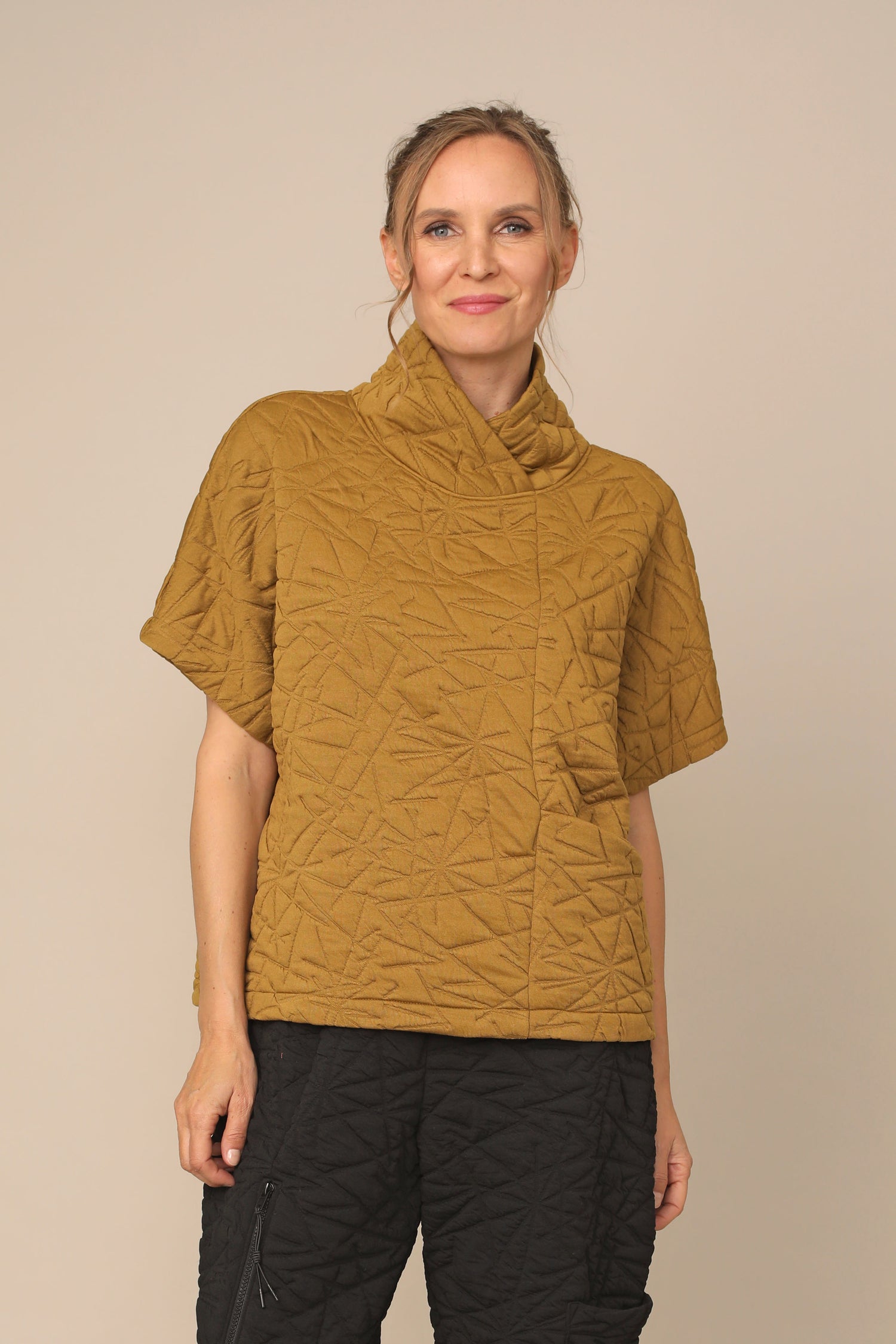 Soft structure meets exquisite charm. The Jianna Top carries dolman short sleeves with an overlapping mock neck and patch pocket in a straight hemmed boxy silhouette. Crafted in plush textured puff jacquard that feels as inviting as it looks.