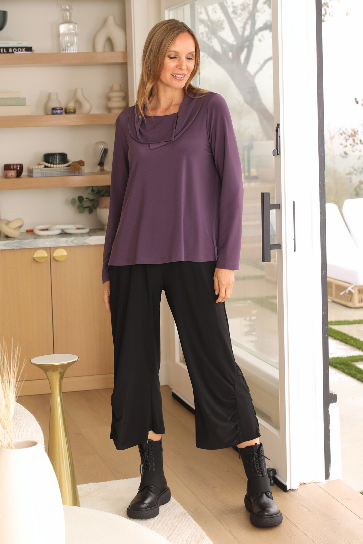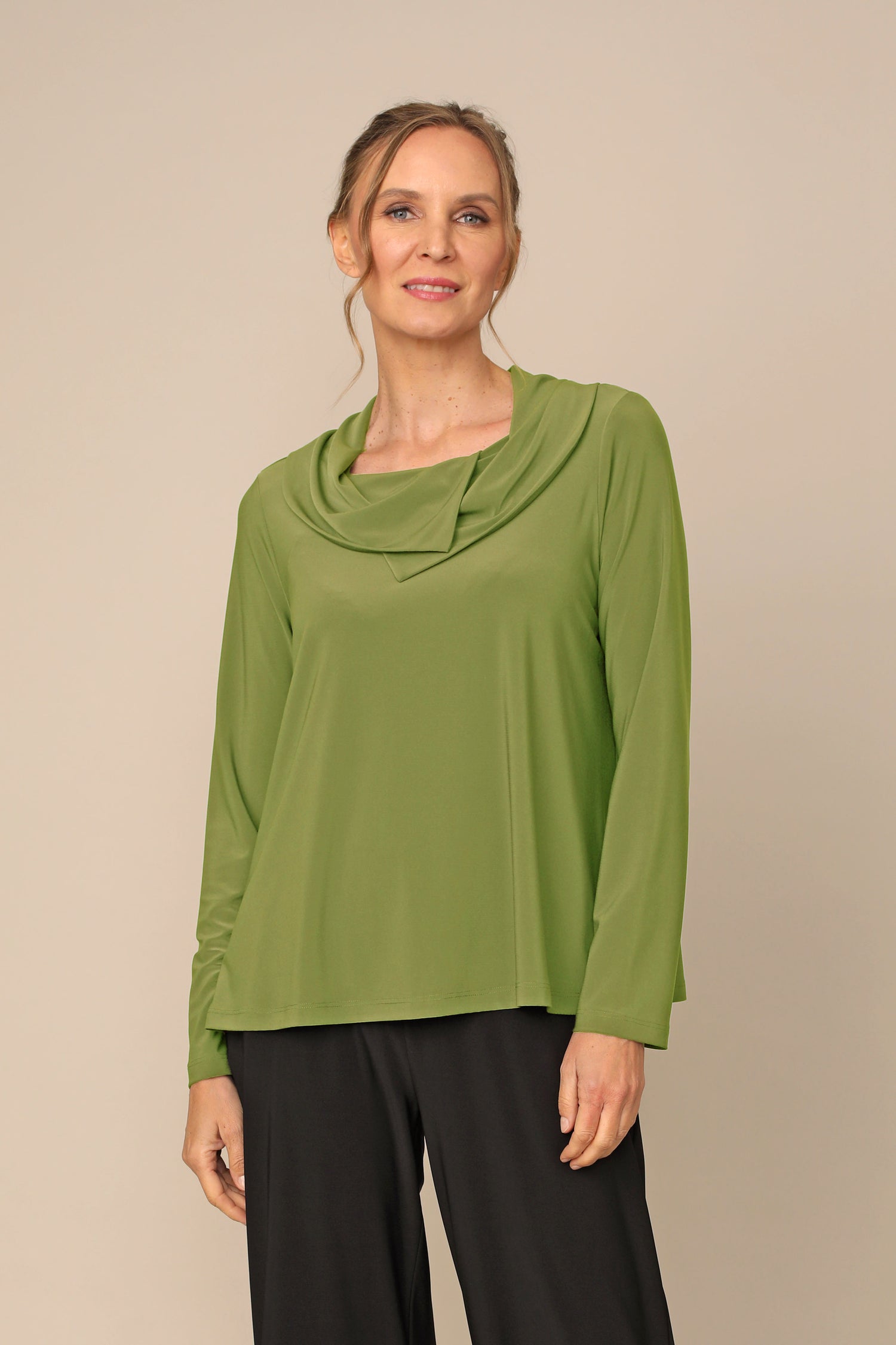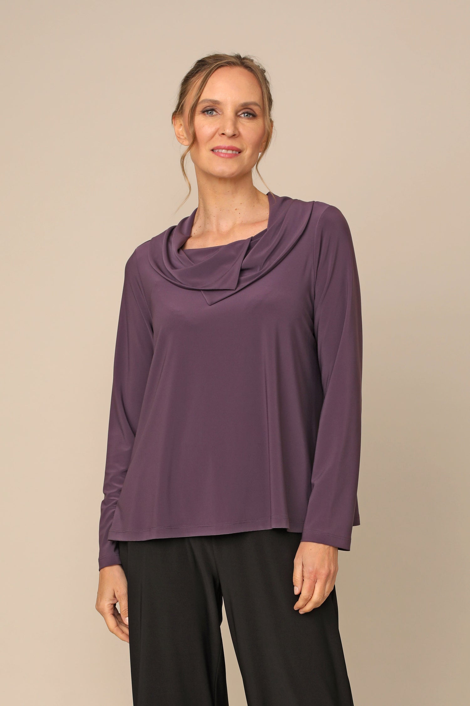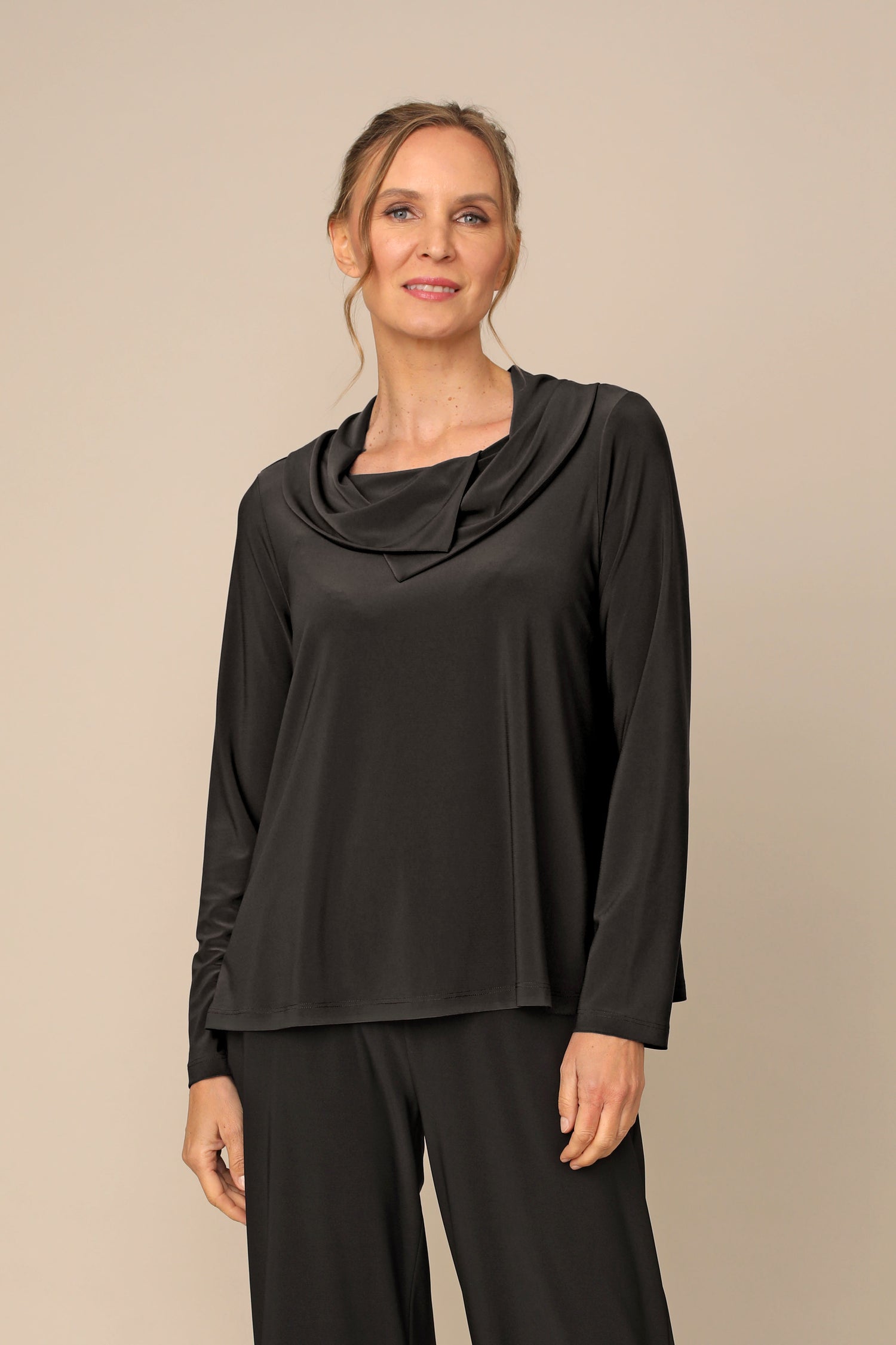 Our Jordana Top is a new edition that carries all the comfort you require with its long sleeves and curated in our lightweight buttery polished fabric, but has details that elevate your basic look with its unique cowl neckline and straight hemmed A-line silhouette that instantly flatters.