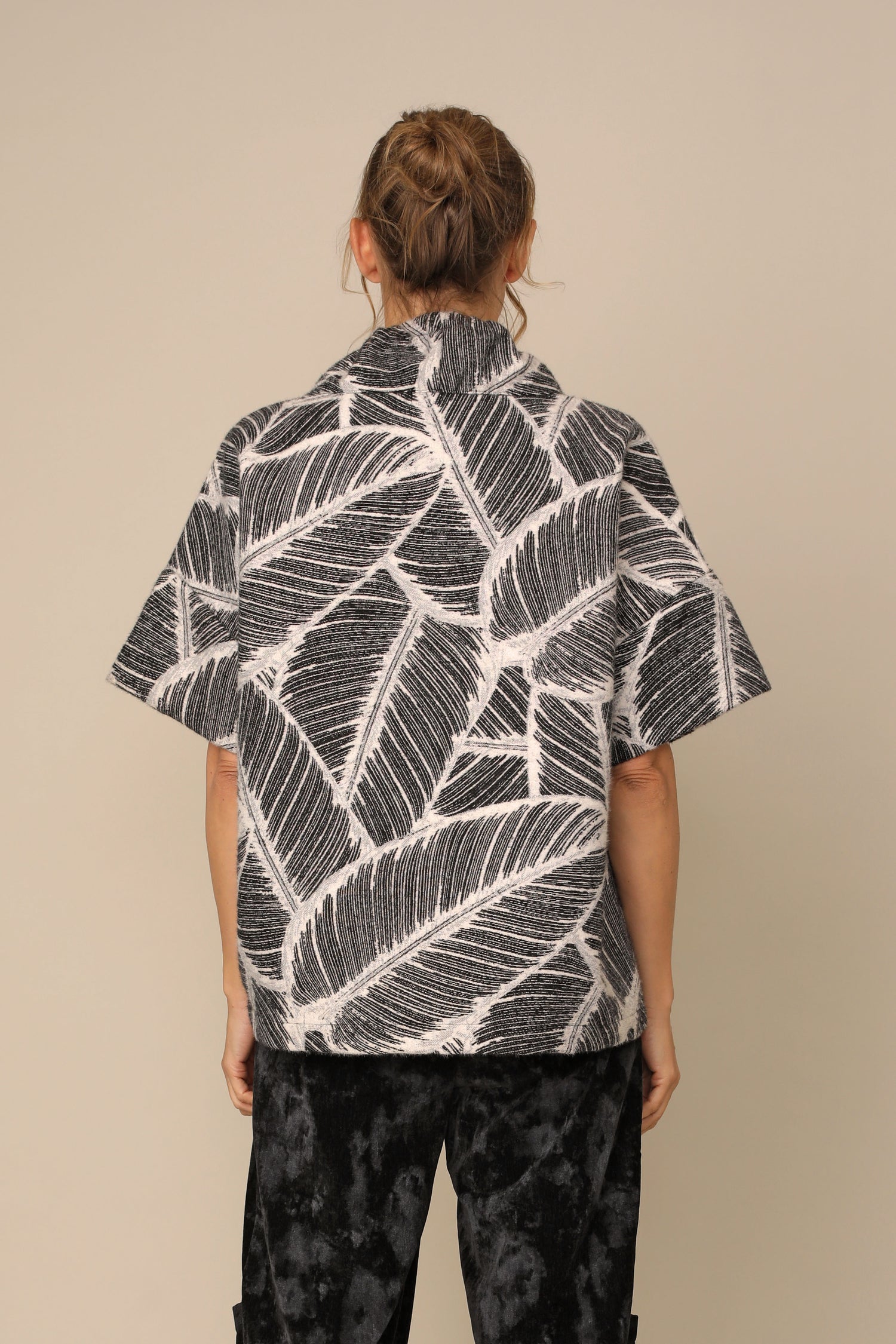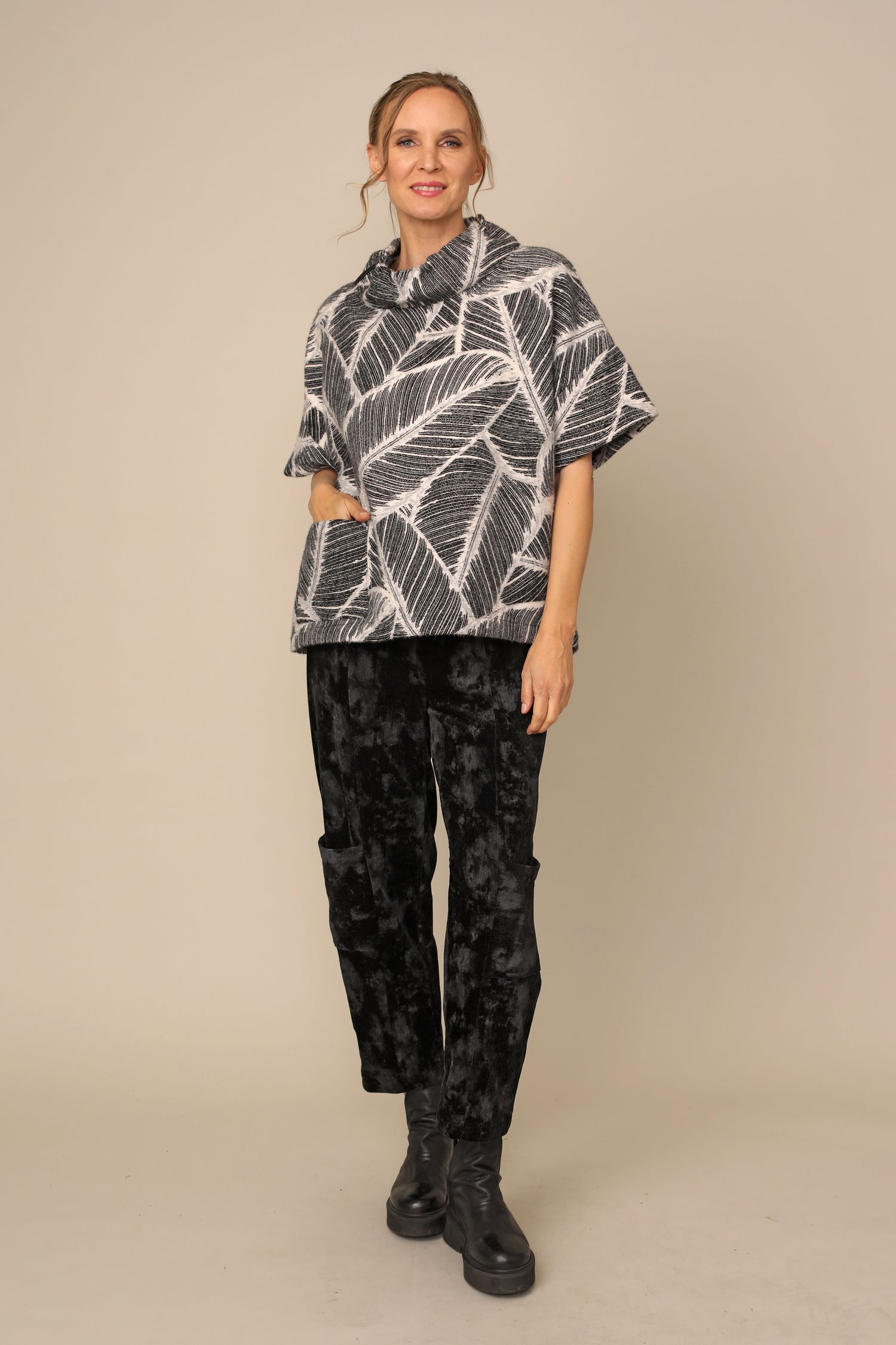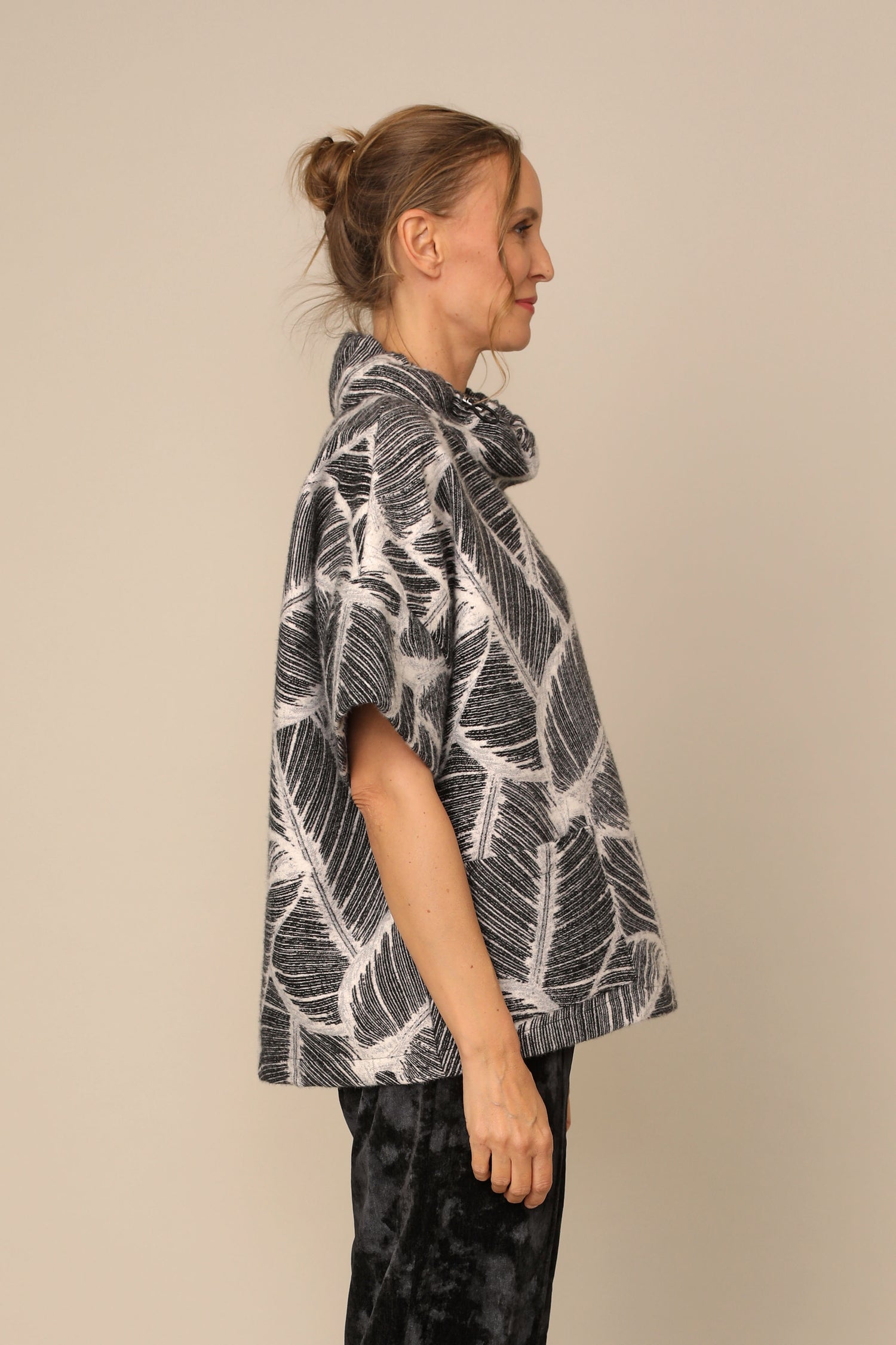 The Kalista Top is the perfected garment to easily throw on looking effortless. Featuring dolman banded sleeves in a boxy straight hemmed silhouette, with added details of a front patch pocket and an elastic cording mock neckline for a chic finish in our Feathered Jacquard fabric.