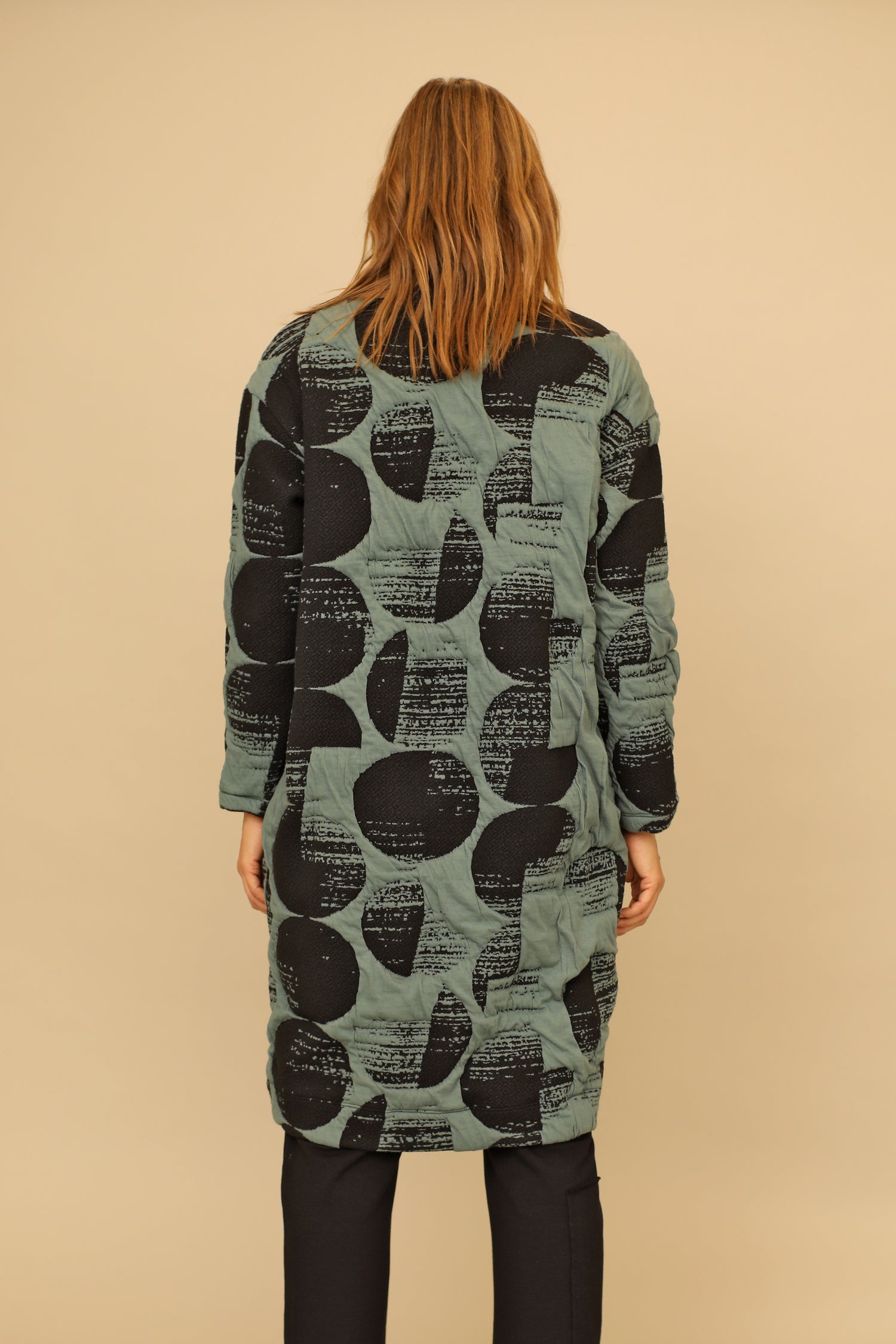 A garment to show off and never take off, the long-sleeved drop shoulder zip up Kiani Jacket proves you can achieve both luxurious pillowy comfort and elevated style in our puff jacquard fabric, with its details of a mock neckline and front patch pockets in a boxy straight hemmed silhouette.