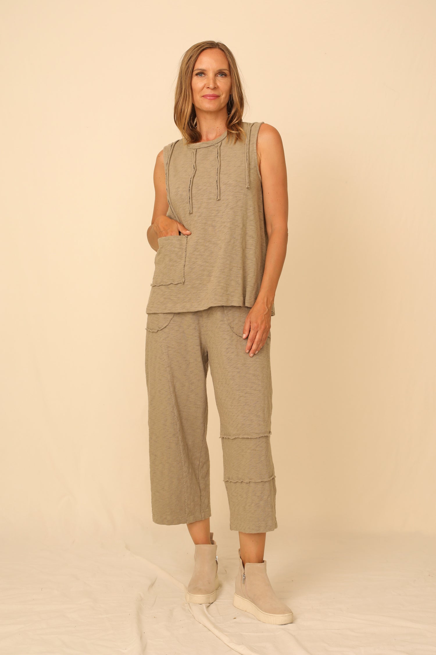 Experience a refreshing feel and style like no other in the Lane Pant. Molded into one of the most comfortable garments with a stretchy waistband in our cotton slub fabric, effortlessly strut from the early mornings to the late evenings. Detailed with patch pockets and running raw edge seams to elevate even your most simplest looks.
