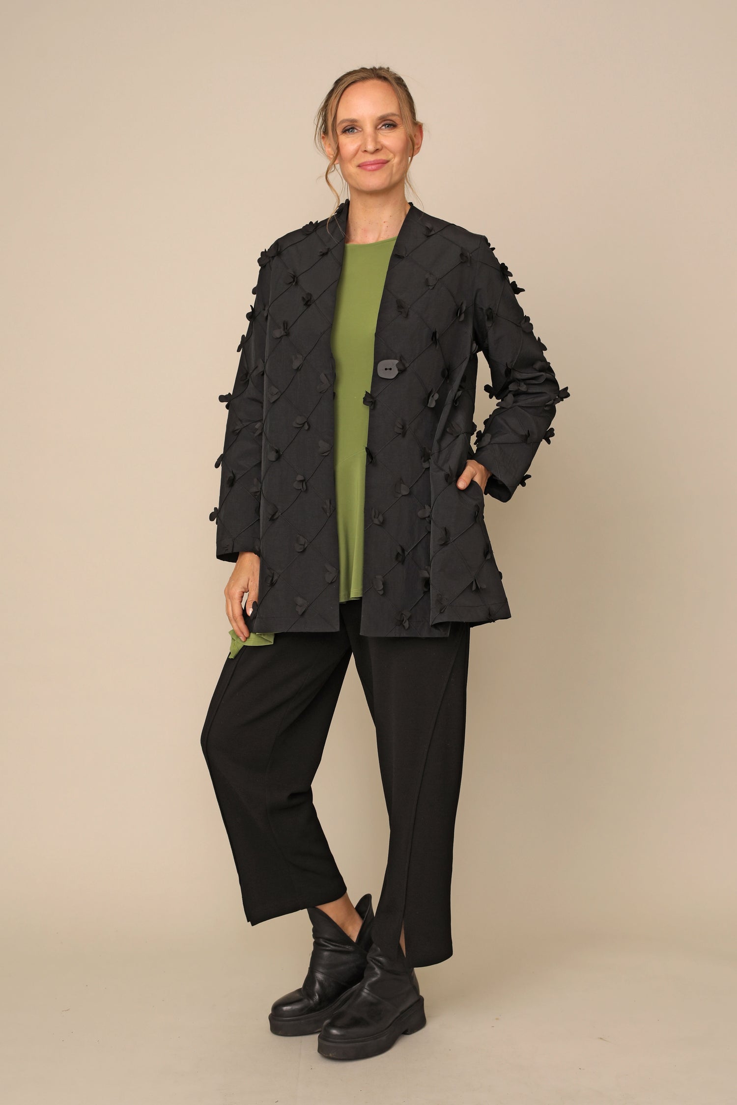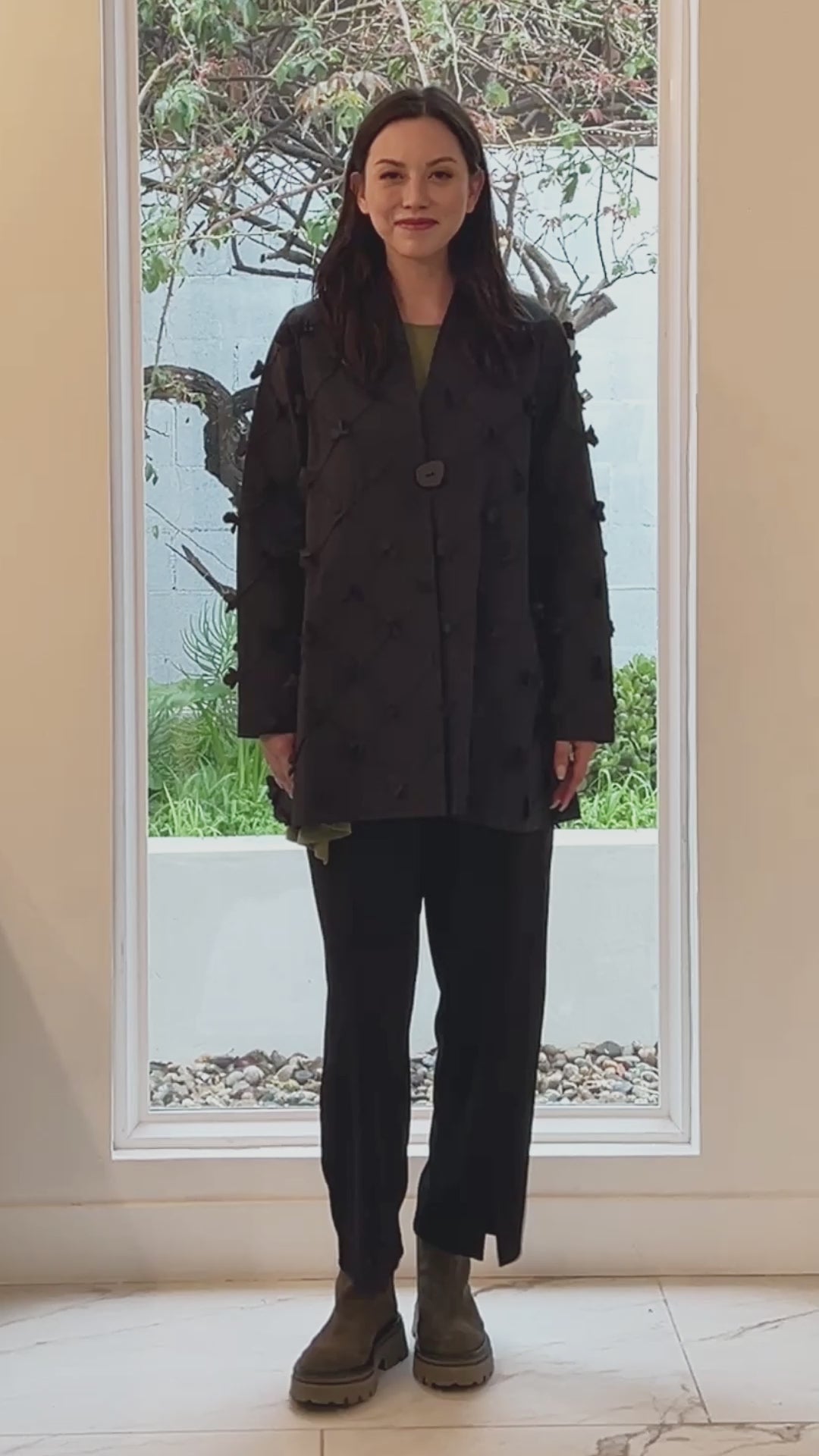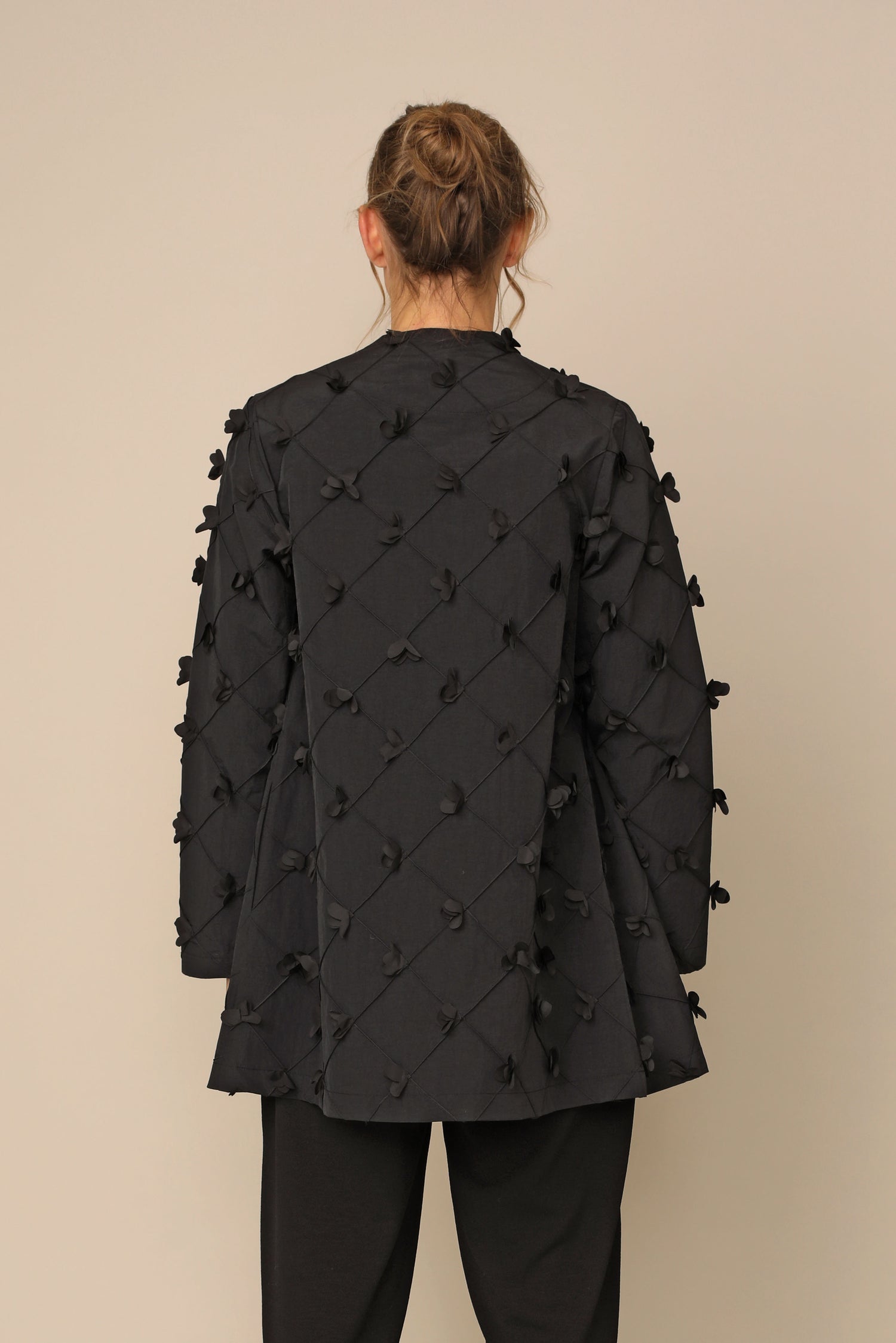 The Lilibet Jacket beautifully elevates even the simplest outfits. Curated in intricate woven petal fabric, this long sleeved buttoned jacket carries a straight hemmed A-line silhouette that instantly flatters.