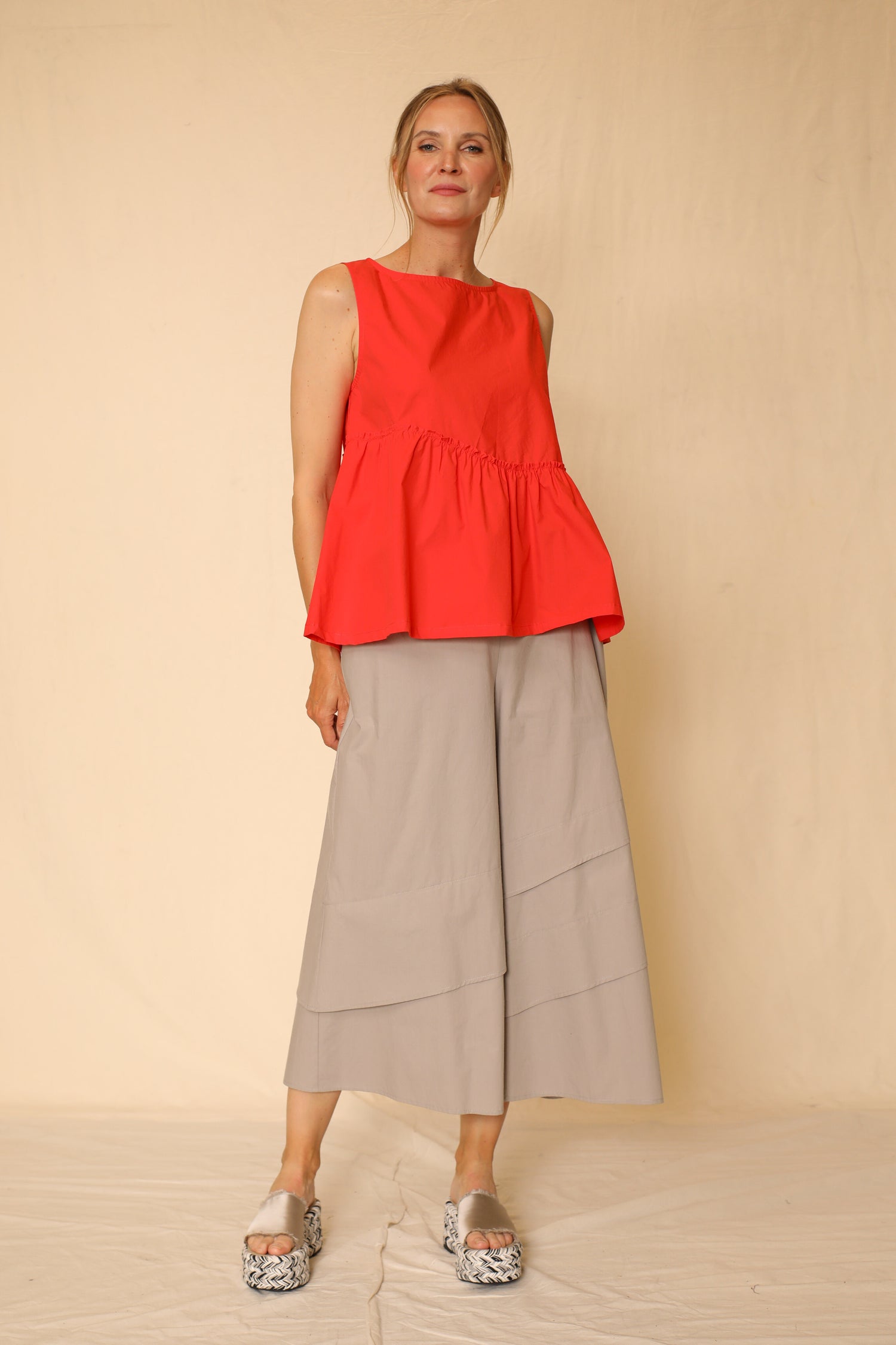 Radiate beauty and never-ending fashion strutting in the Maddy Pant. The wide leg opening portray a fetching bell-bottomed silhouette creating an effortless dramatic charm, adding to the allure of the detailed asymmetric pleat design and comfort from its inseam pockets with an elastic waistband cut in our cotton woven fabric.