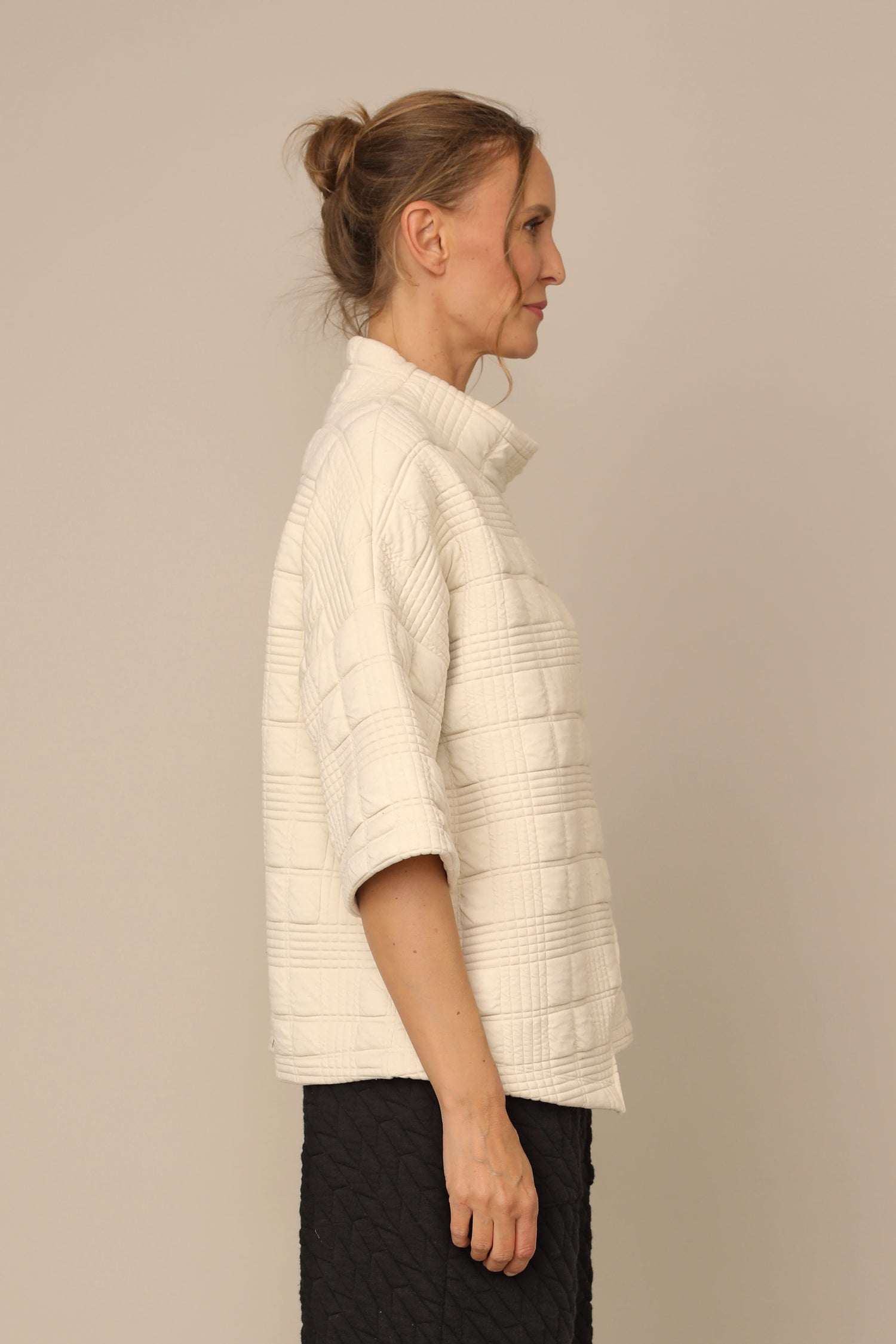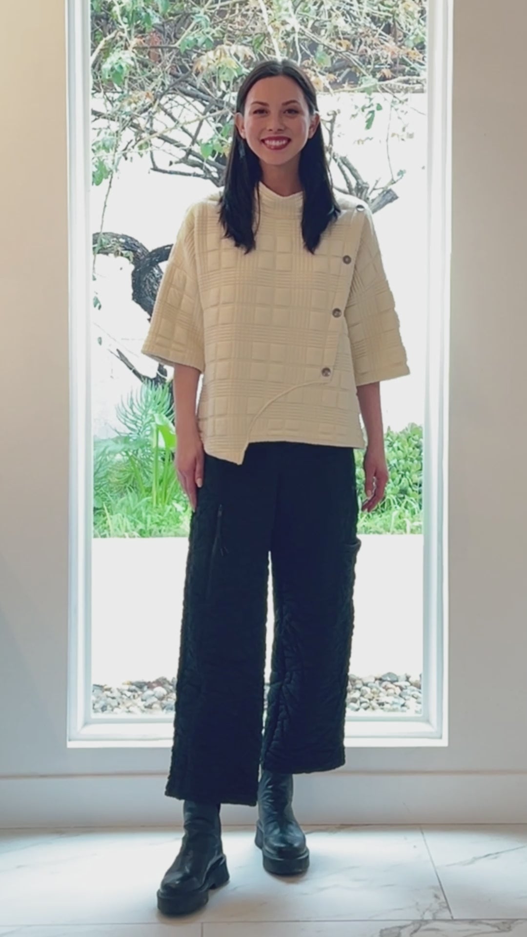 Featured in our crisp Bone colorway, the Melody Top is designed with a mock neckline and drop shoulder elbow sleeves in a boxy fit with an asymmetric hem. Gorgeously designed with button trims for a high-top luxury appeal in our extremely soft jacquard fabric.
