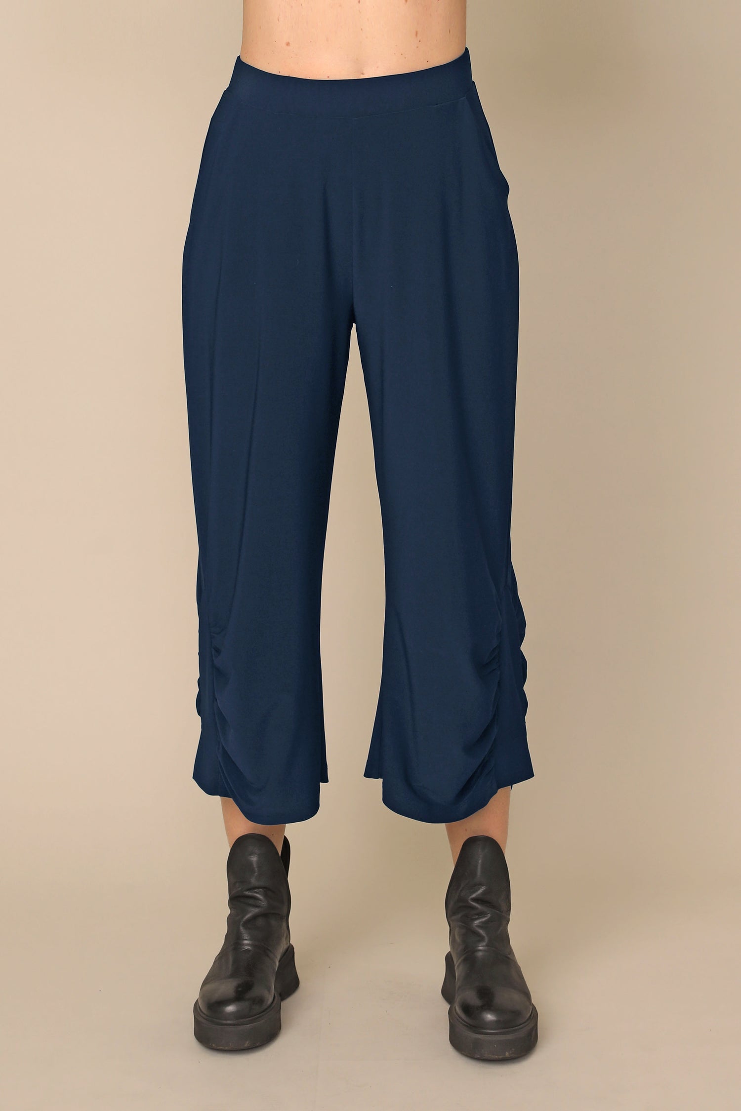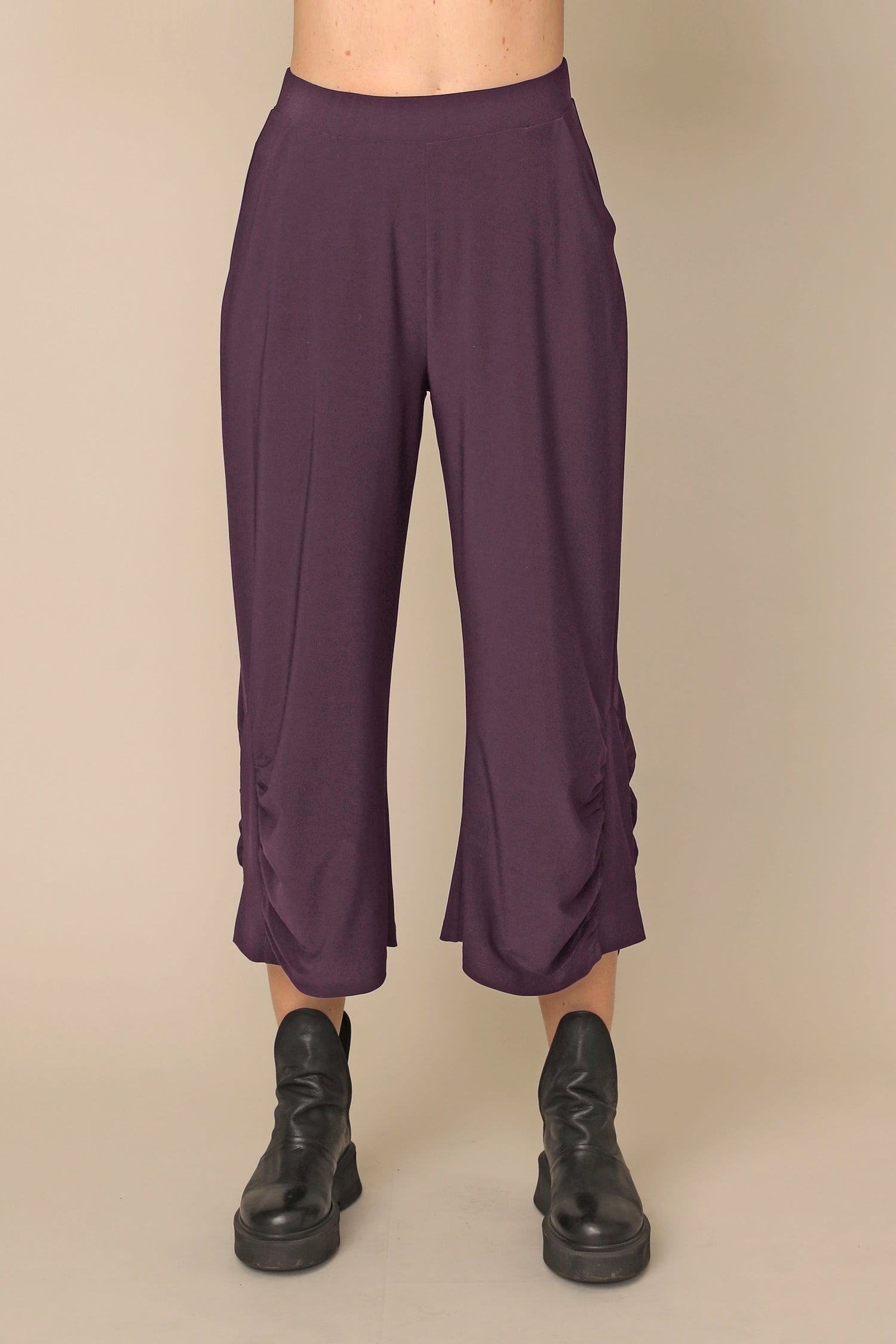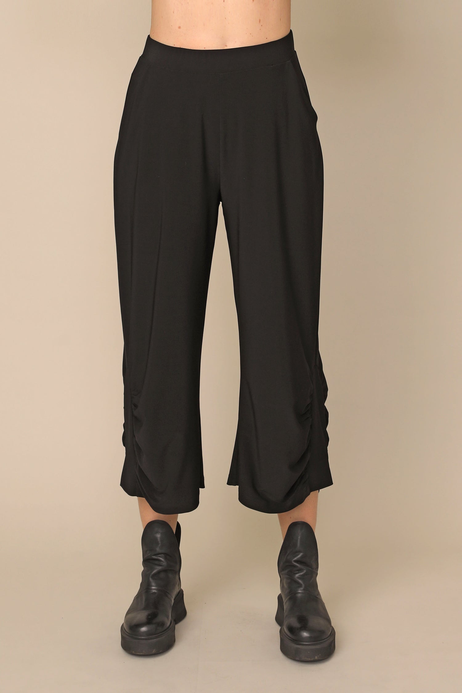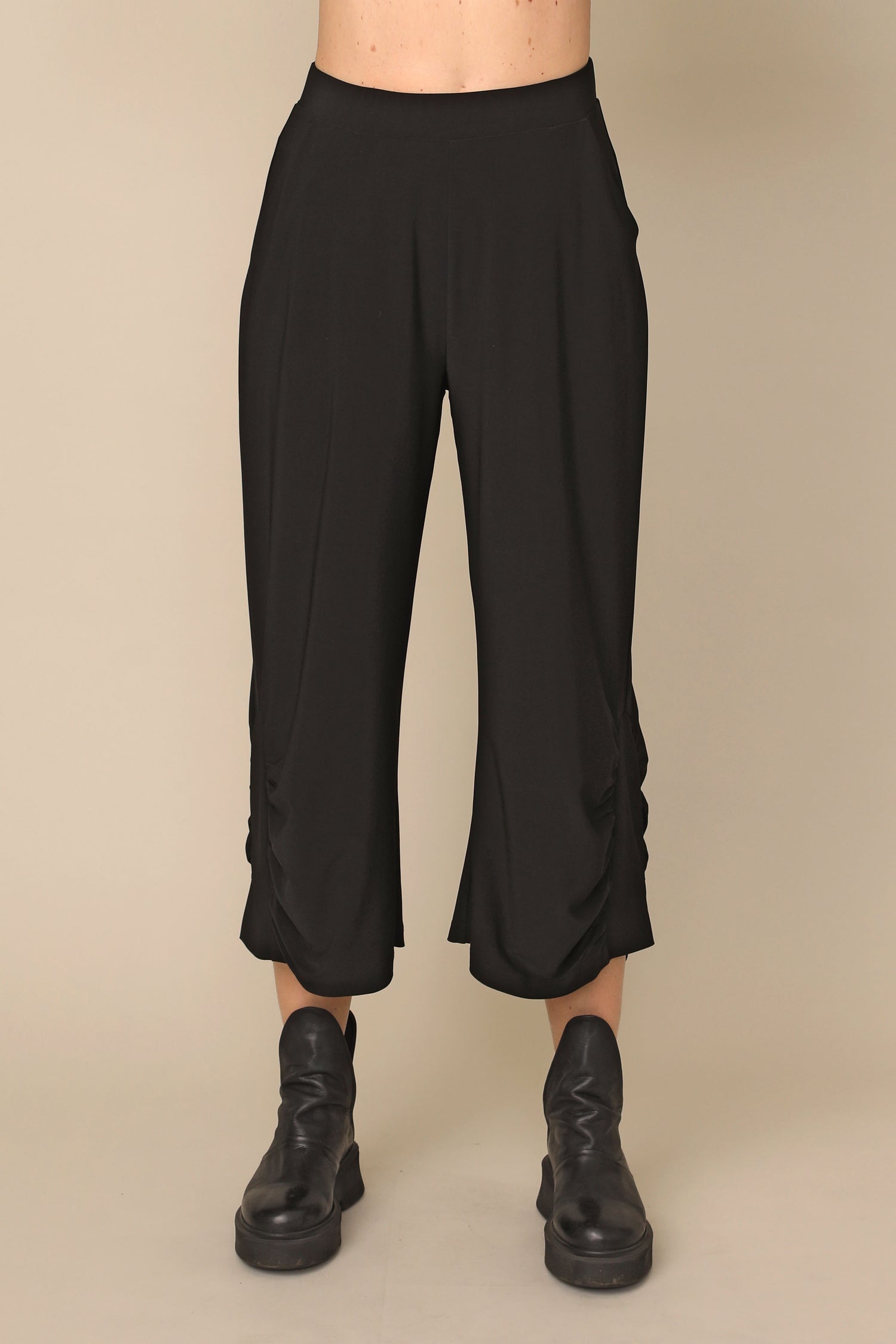 The Nancy pant flows beautifully in our ultra-smooth buttery fabric, not only carrying the ability to keep you in all day comfort, but allowing all day wear and movement for every occasion. Featuring a stretchy waistband and side pockets, with side shirring that perfectly accents its loose silhouette.