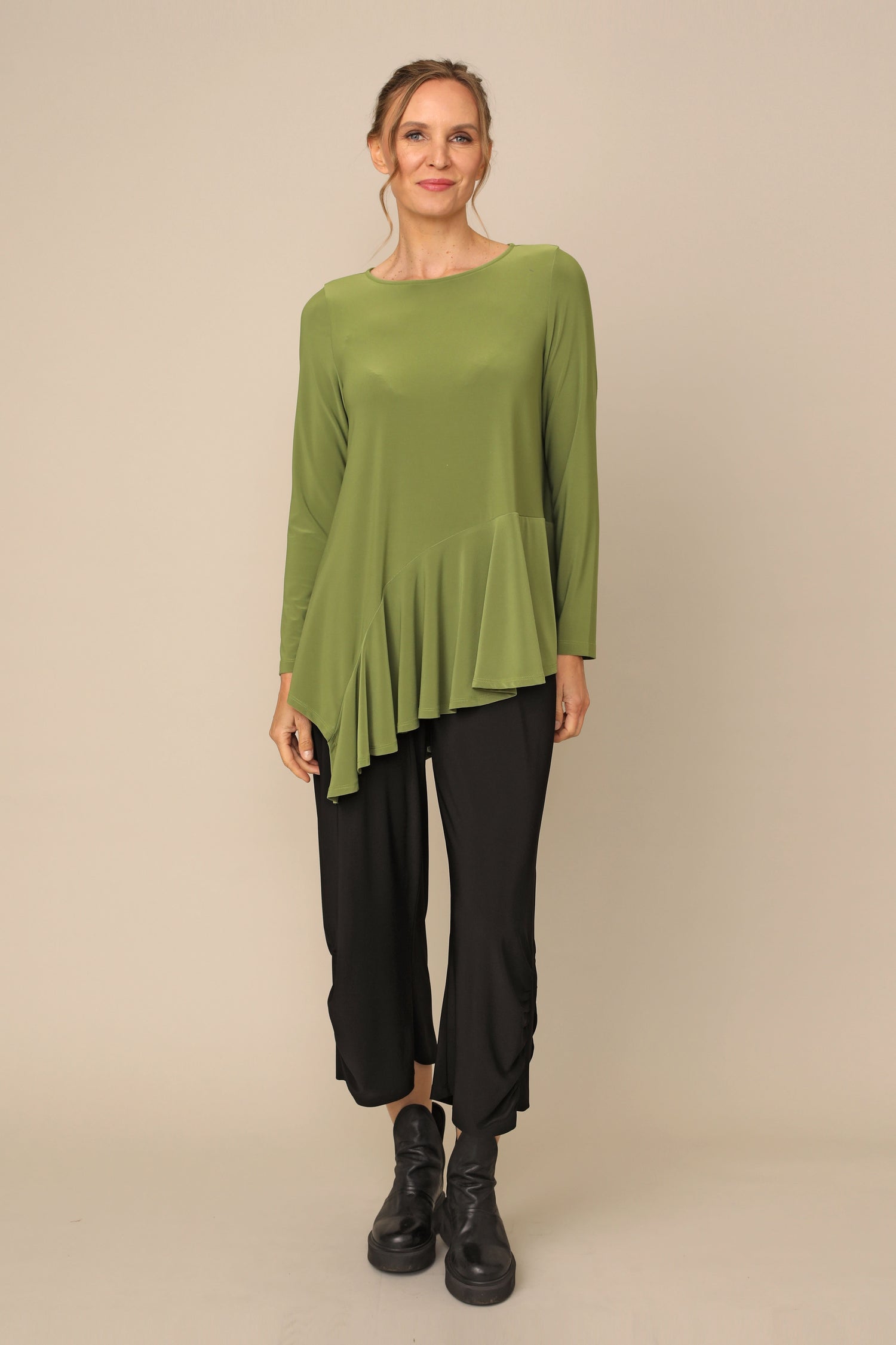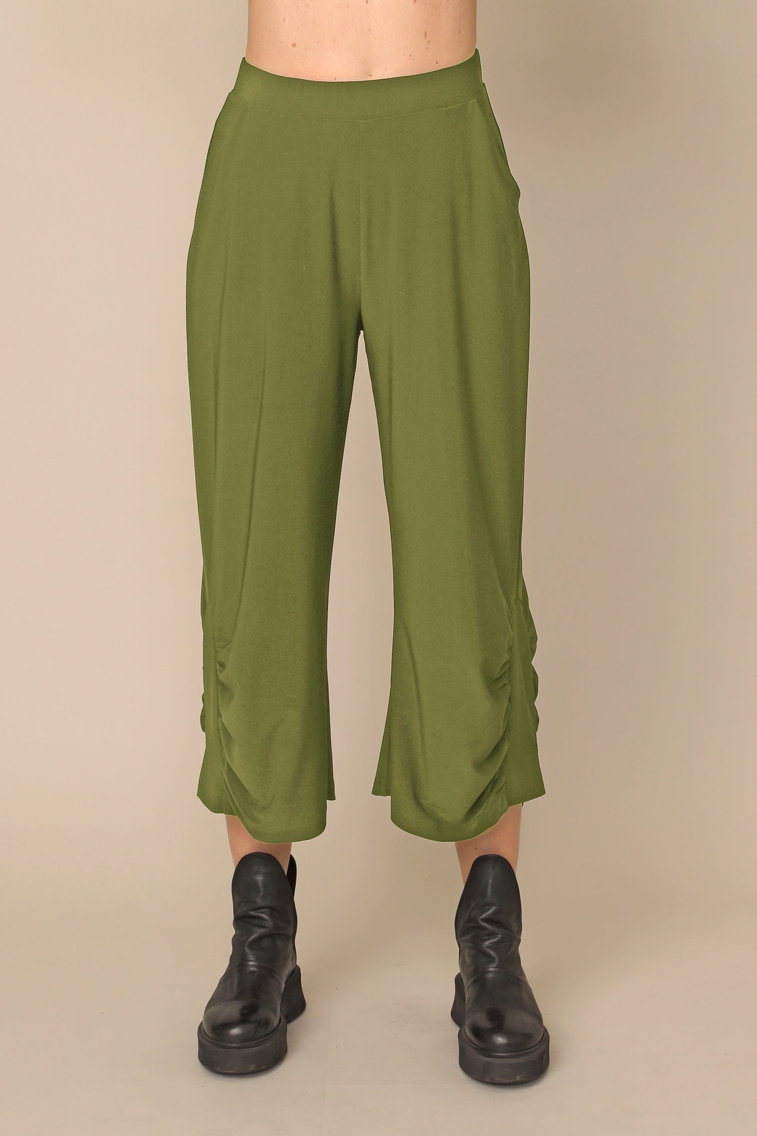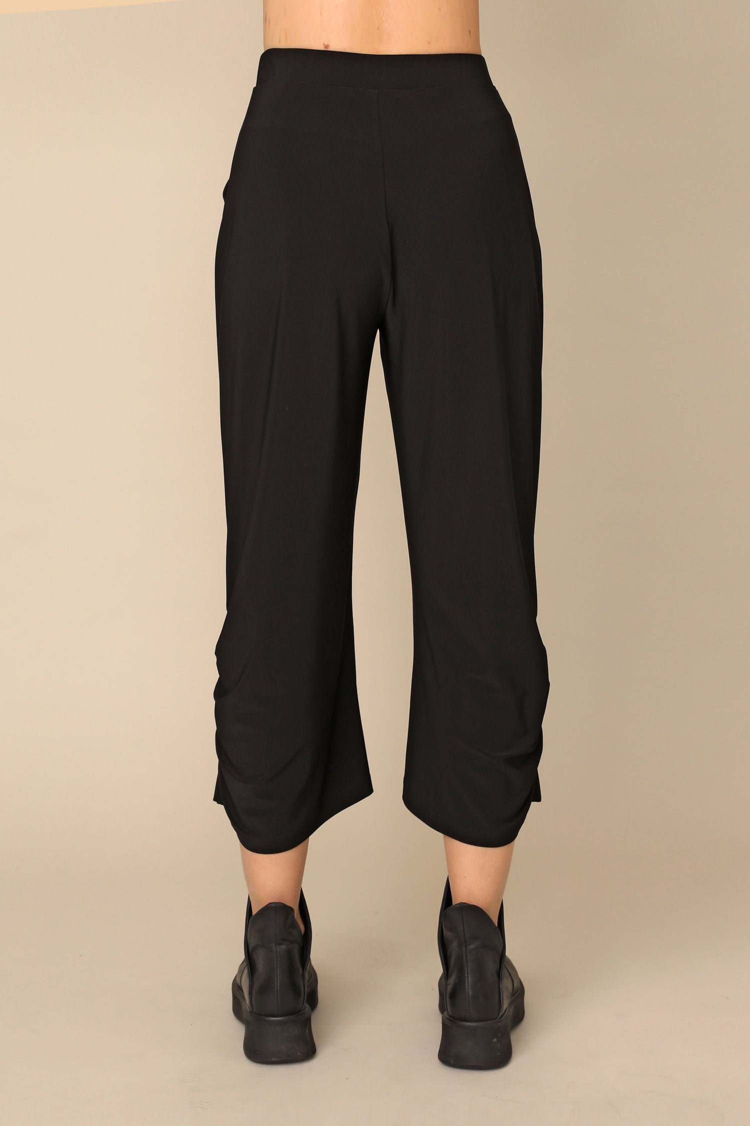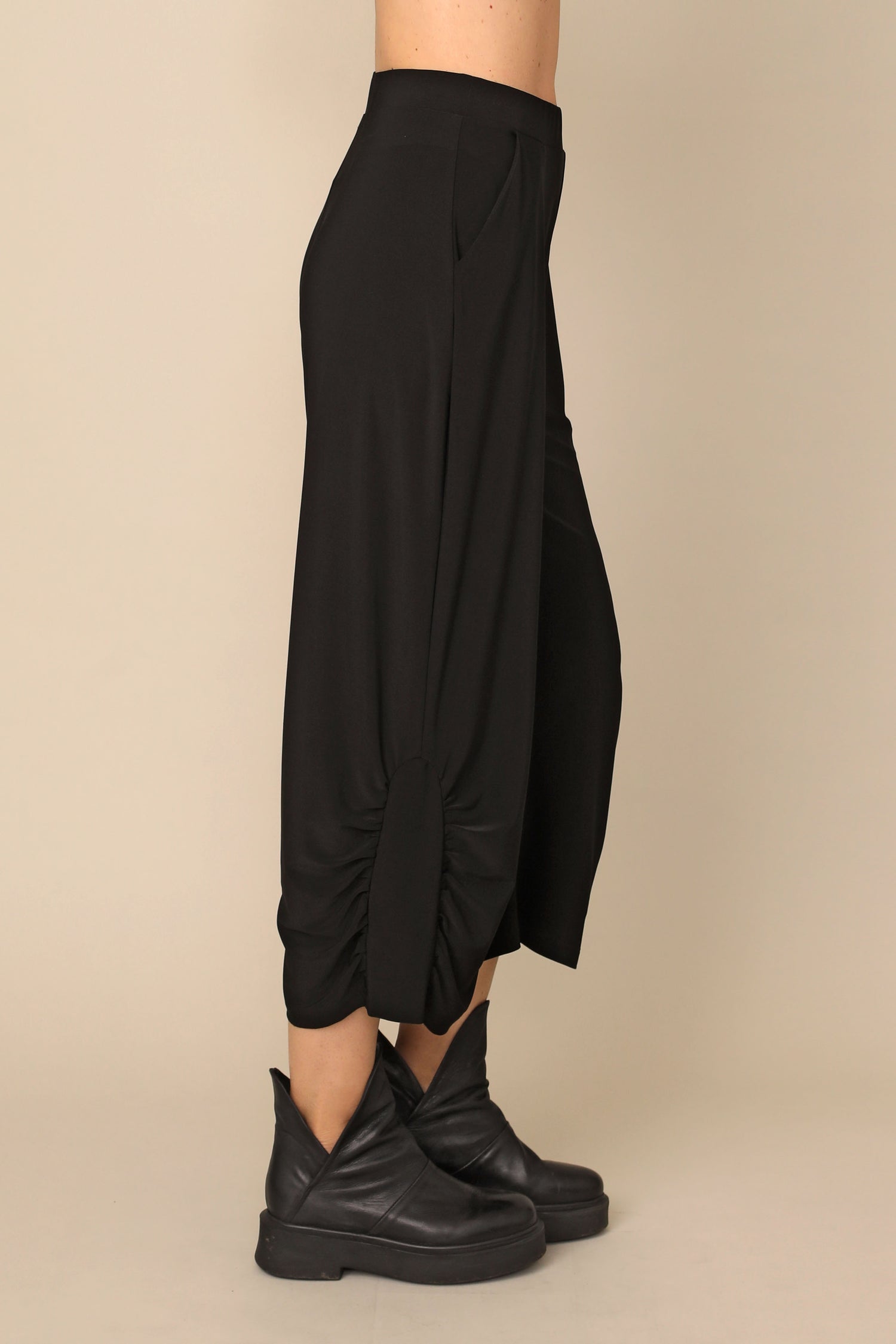 The Nancy pant flows beautifully in our ultra-smooth buttery fabric, not only carrying the ability to keep you in all day comfort, but allowing all day wear and movement for every occasion. Featuring a stretchy waistband and side pockets, with side shirring that perfectly accents its loose silhouette.