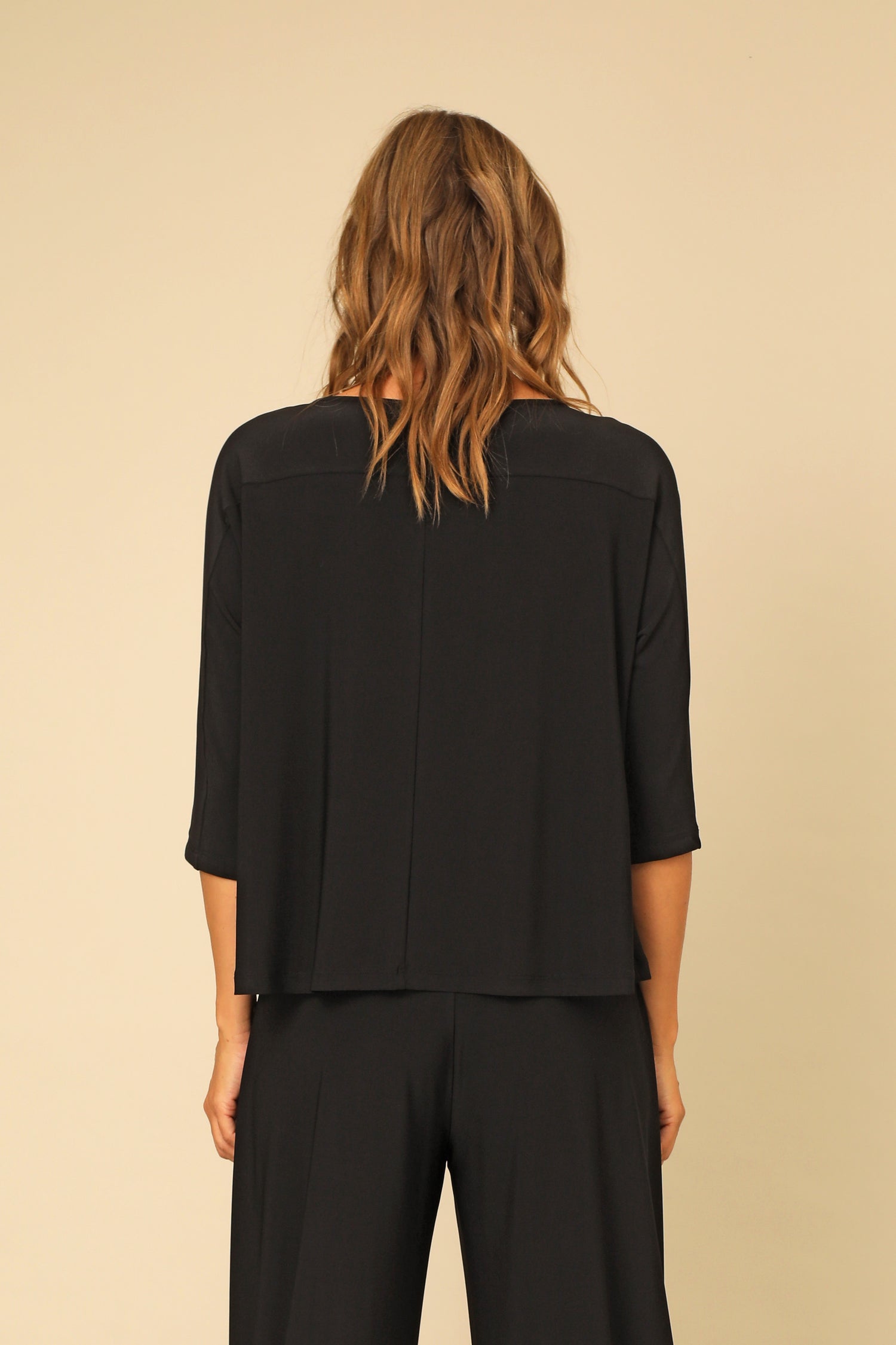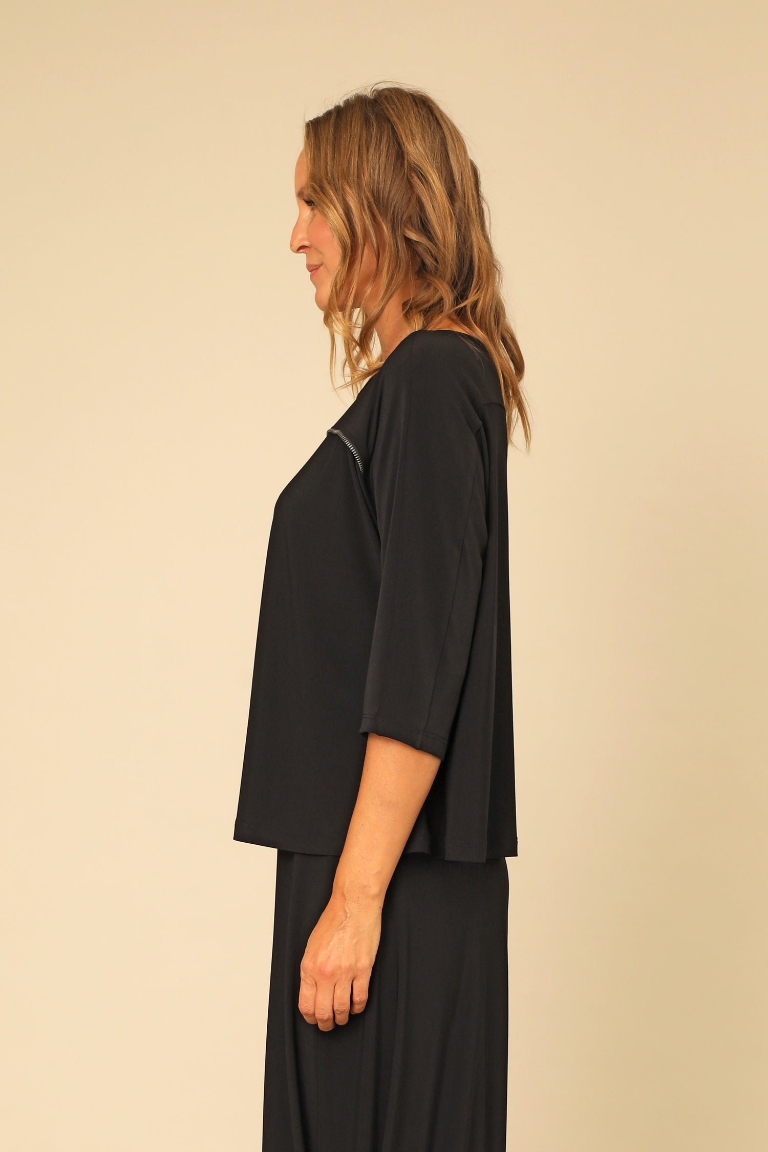 A refined essential with an unexpected twist. The Primrose Top features ¾ dolman sleeves and a straight hemmed boxy cut. Below the rounded neckline features a unique zipper trim, lending just the right amount of modern polish to this extremely comfortable, versatile piece