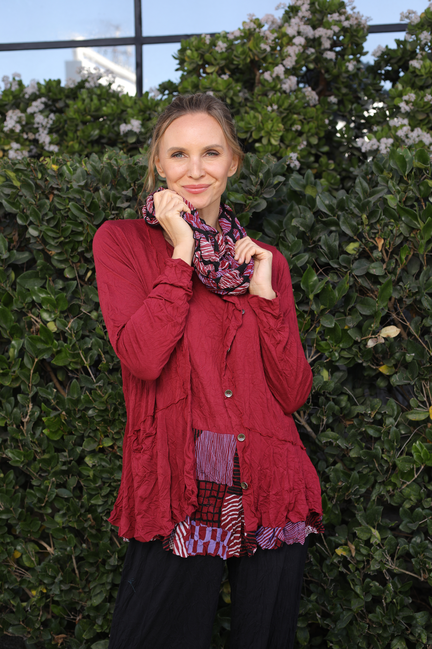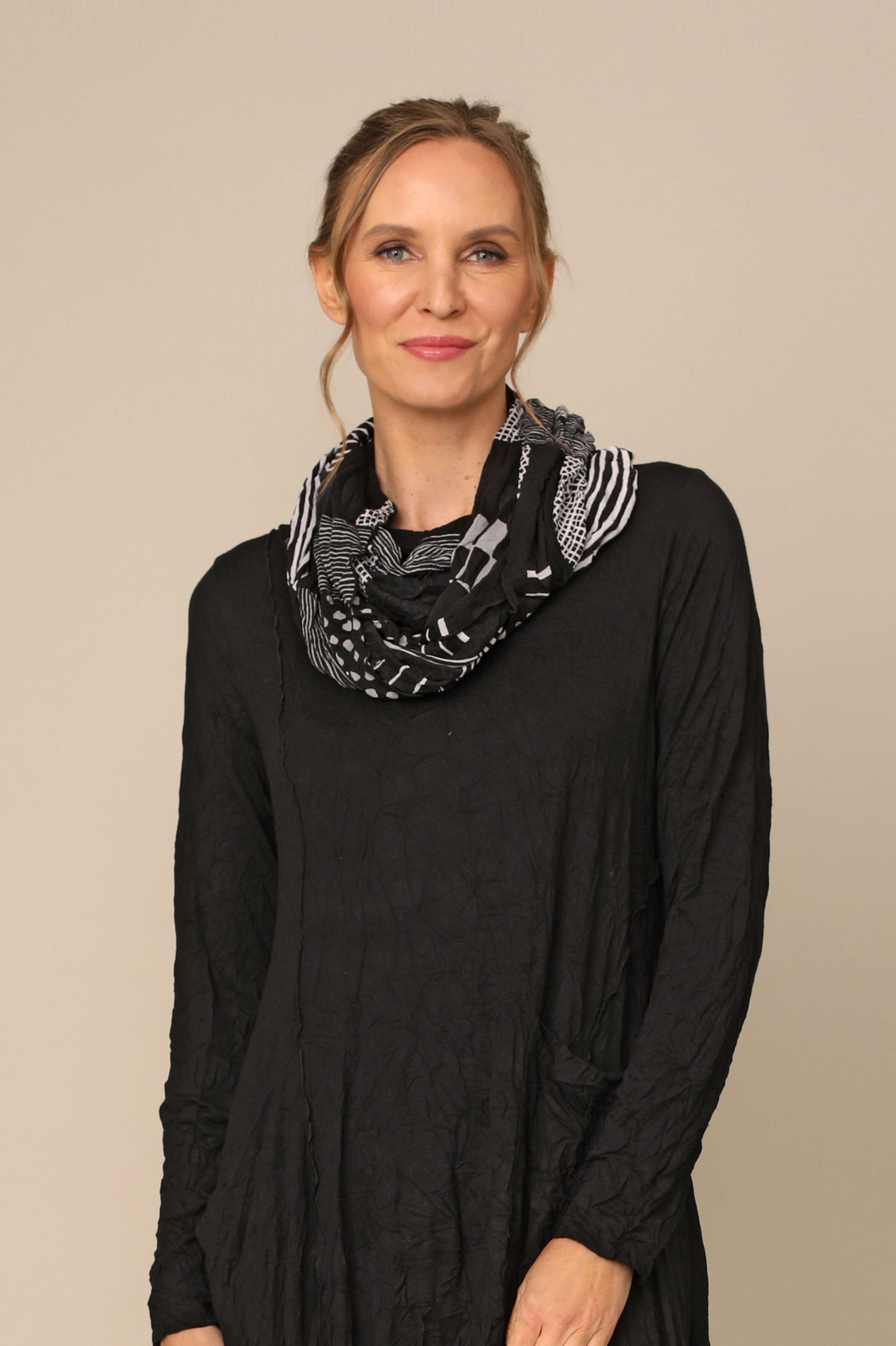 The new seasonal scarf is now offered in a gorgeous array of colors that will instantly give your style the pop statement piece it needs. Whether in our Ruby Dot colorway for a spunky feel or Emerald Hash for a piercing creative appeal, this crinkle mesh accessory is the perfect way to tie all your favorite looks together.