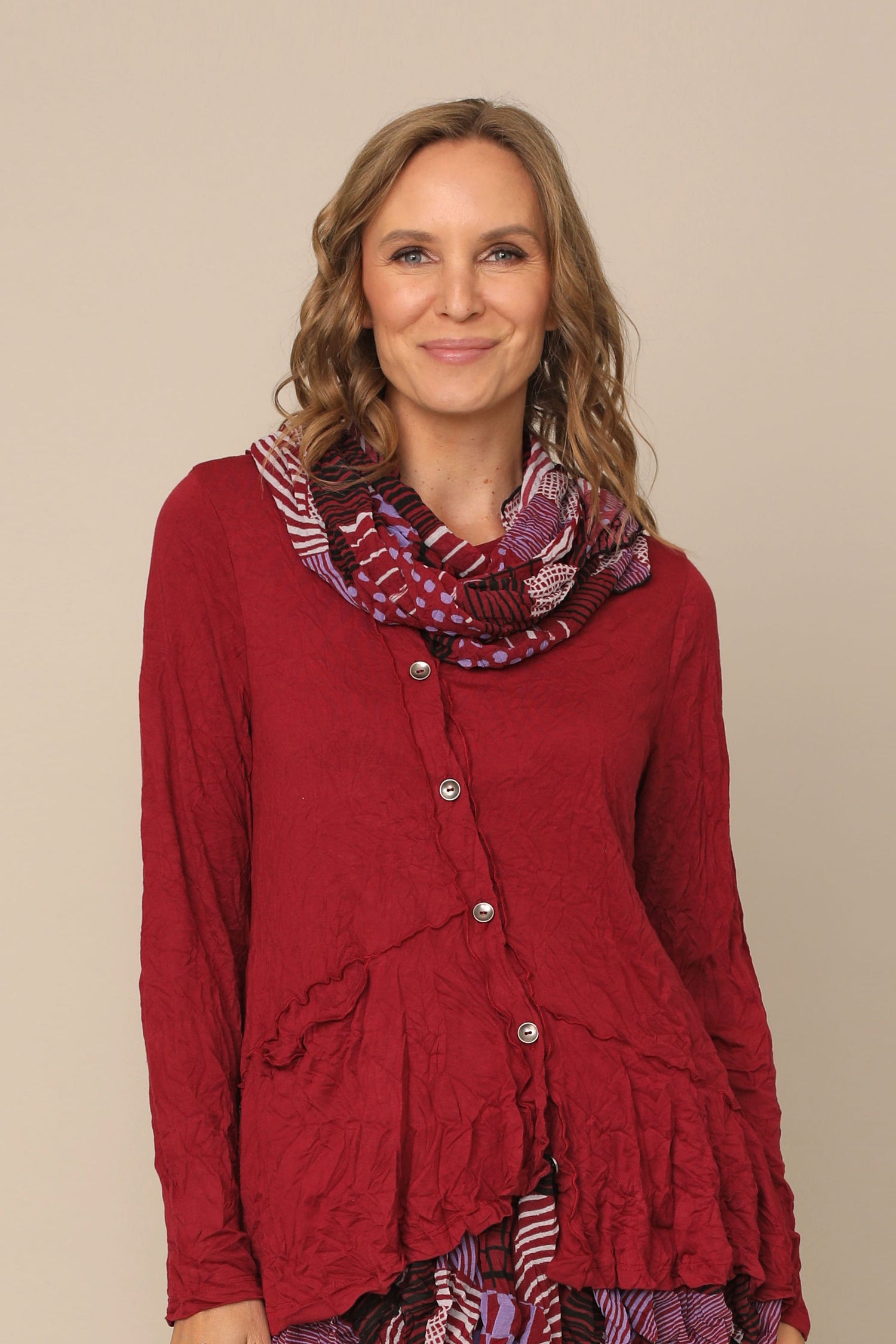 Model is wearing “Ruby Dot” color, size Small