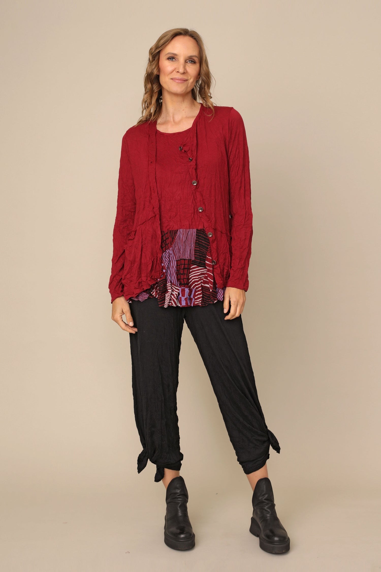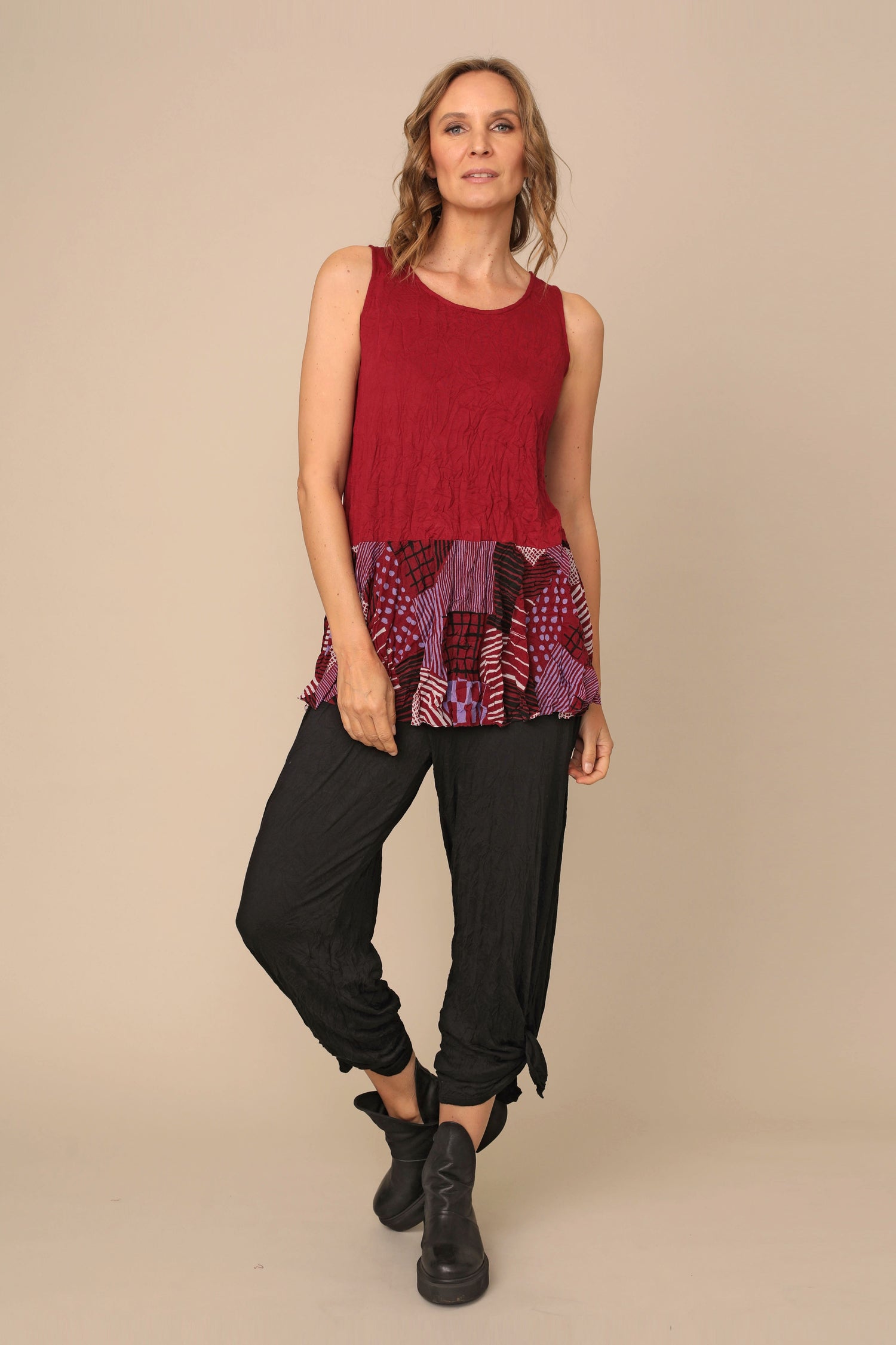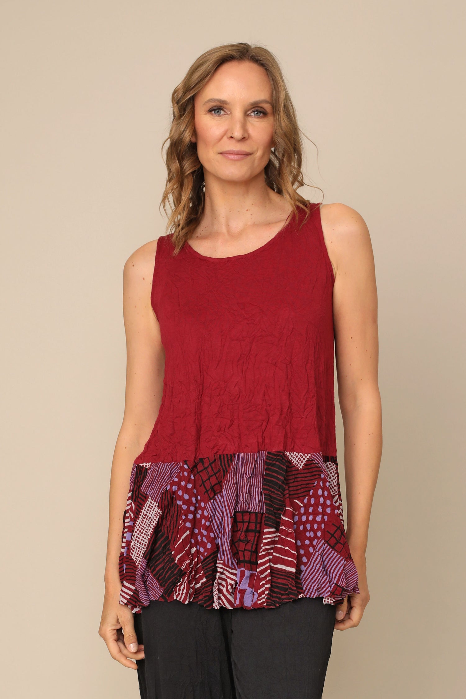 The classic sleeveless Sophia Tank is designed in a boxy silhouette and rounded neckline that pairs beautifully under any top or layering piece for an effortless put together look. Curated in a solid crinkle jersey body and contrasting crinkle mesh at the straight hem, leave others in awe as you artistically style in unlimited ways.
