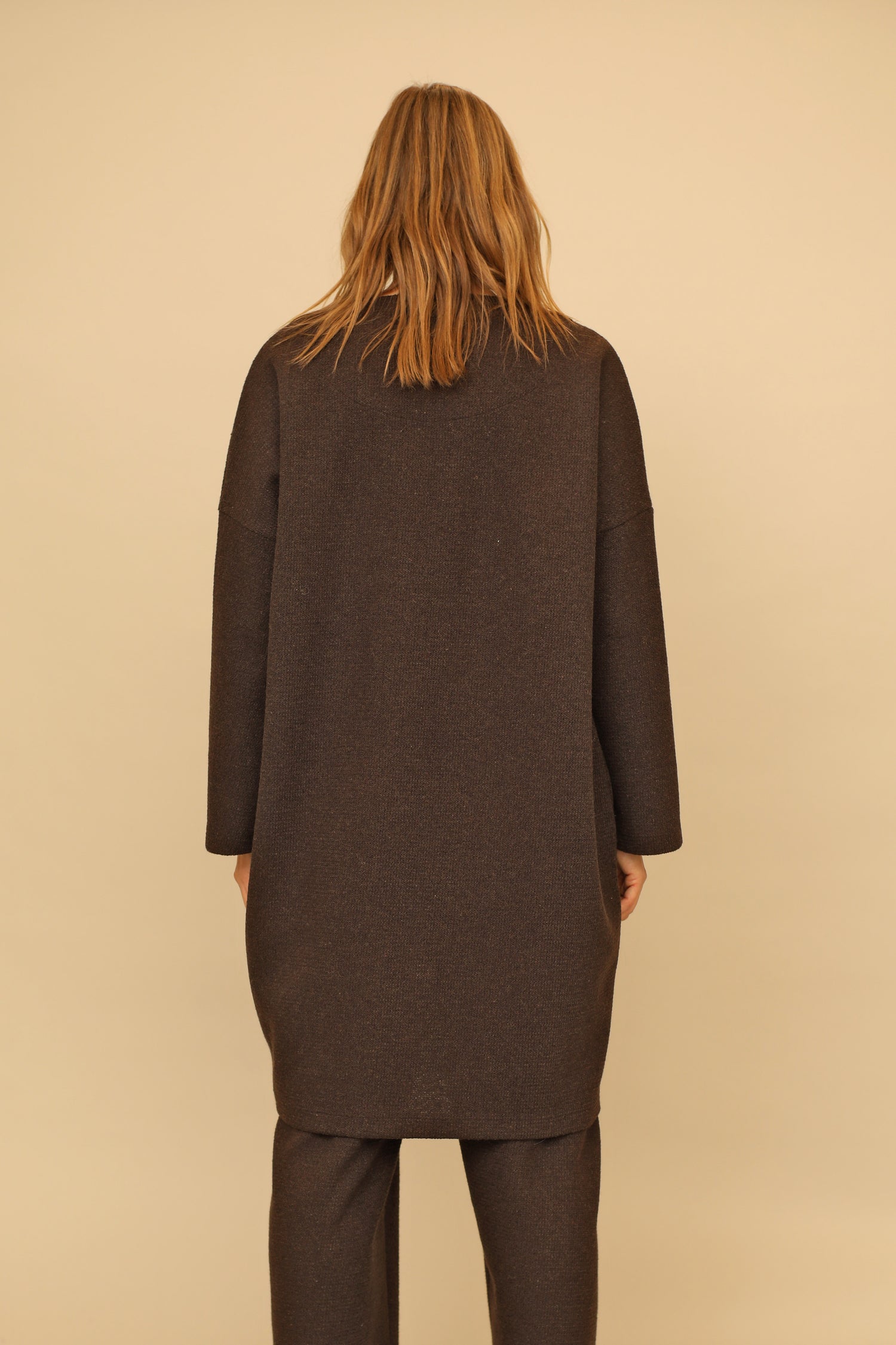 Wrap yourself in our buttoned Uma Coat with the luxurious warmth of solid wool to perfect those chilly days. A timeless sophisticated design of a rounded neckline with long drop shoulder sleeves in a straight hemmed boxy silhouette and side pockets. Truly tailored for comfort and style.