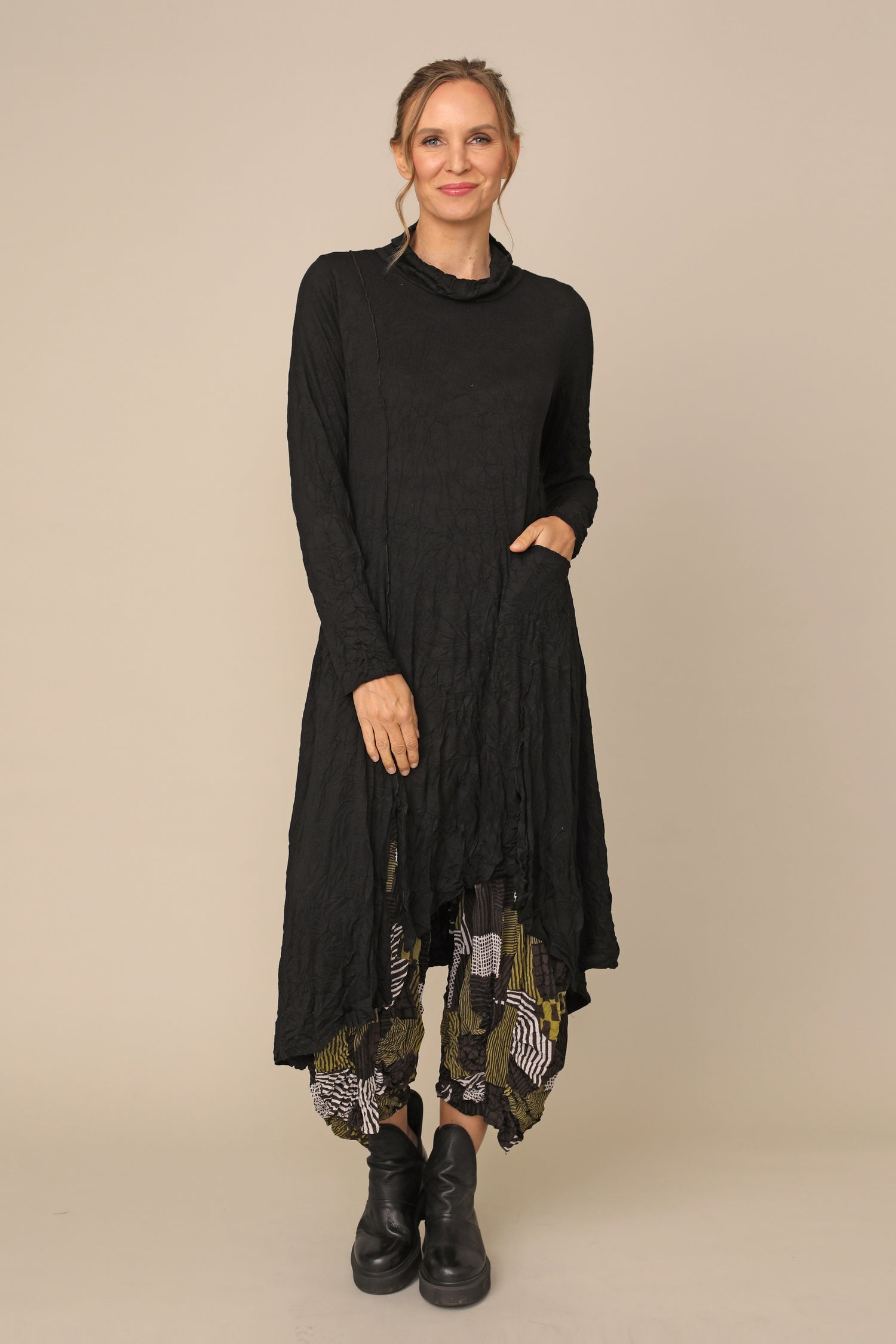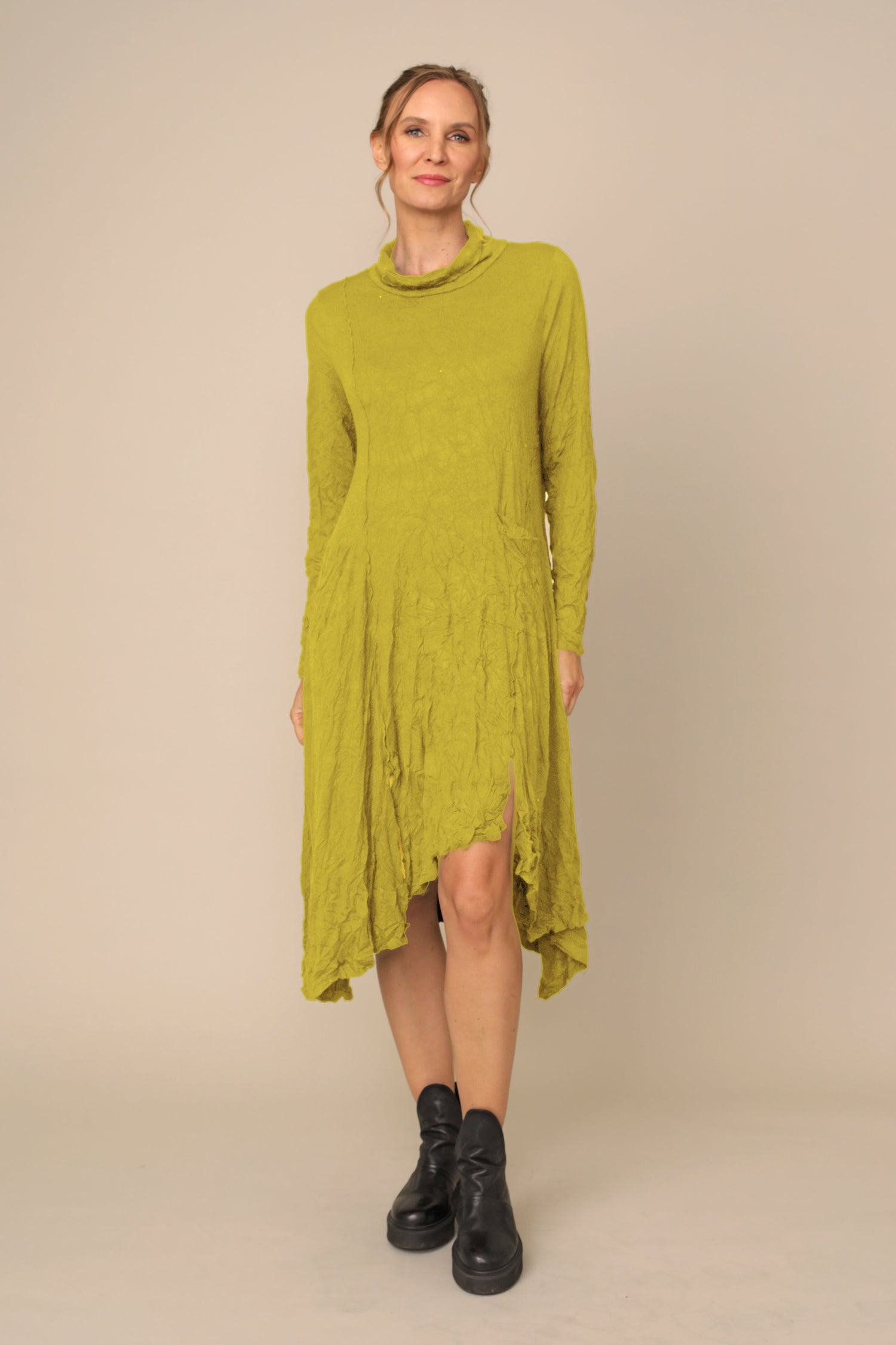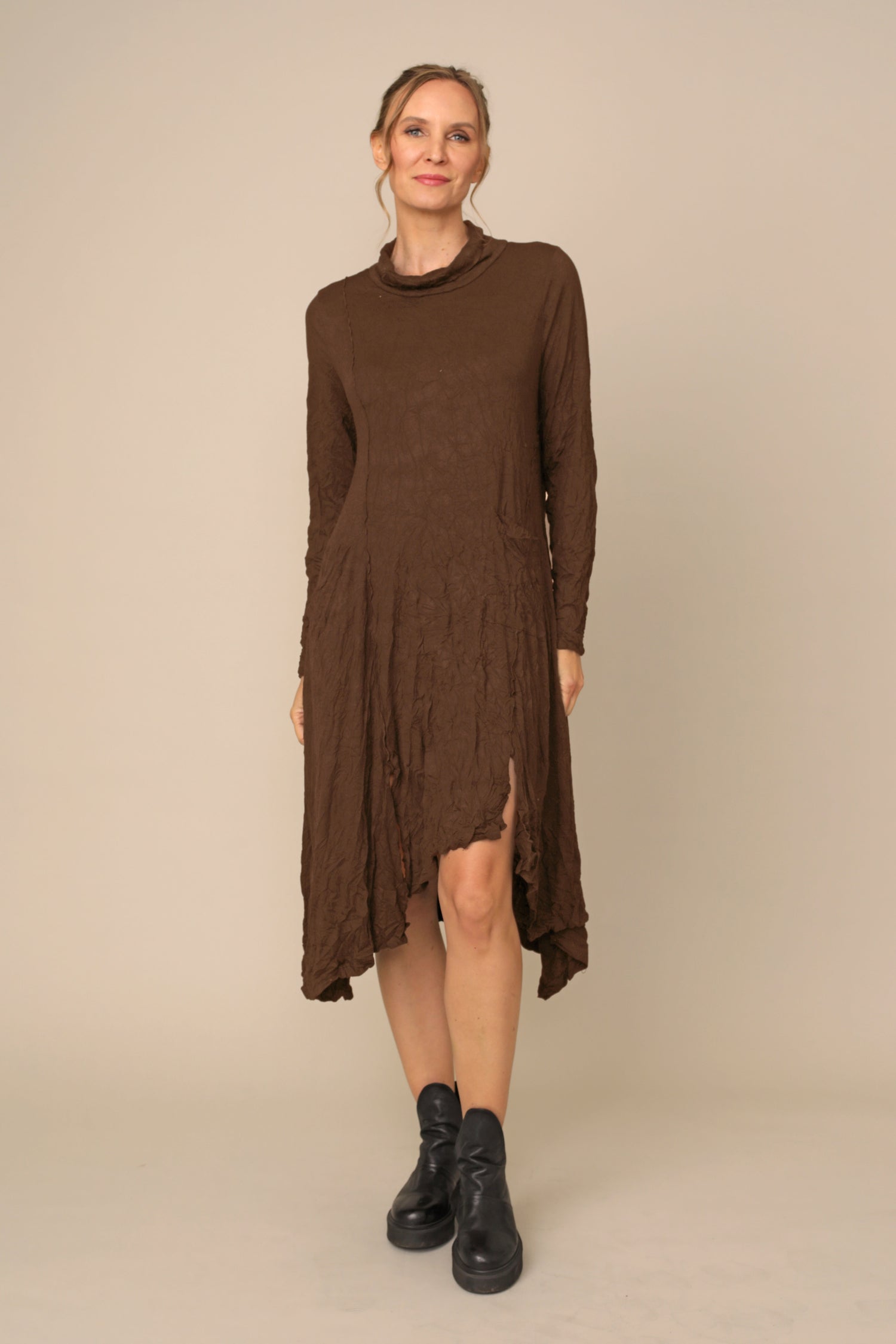 Whether you are across town or across the country, the travel friendly recycled crinkle jersey Varly Dress will be your new favorite staple for the season. Designed with a cowl neckline and long-sleeves with an asymmetrical hemmed A-line fit, the bold seam details elevate the inseam and front patch pocket.