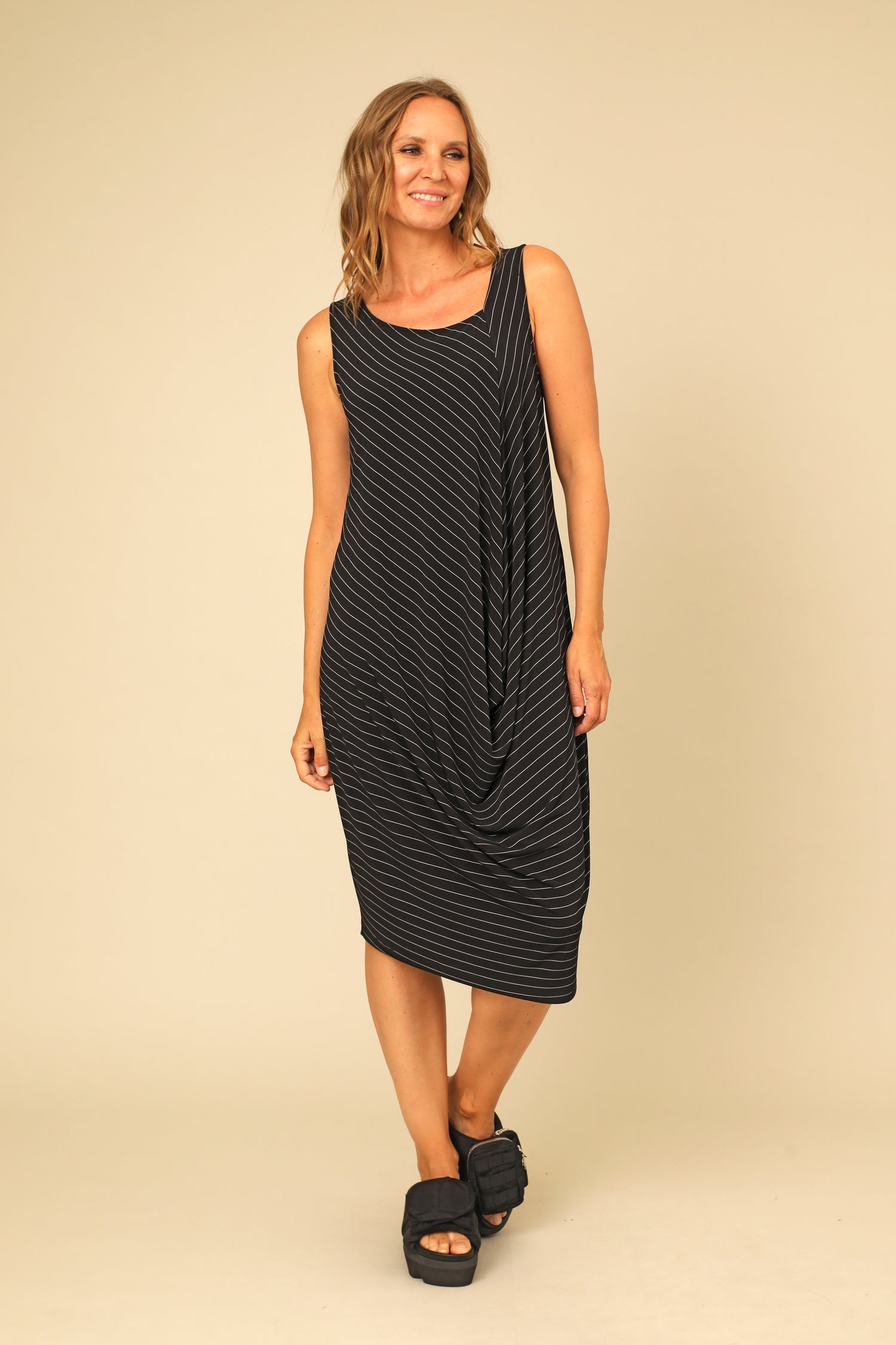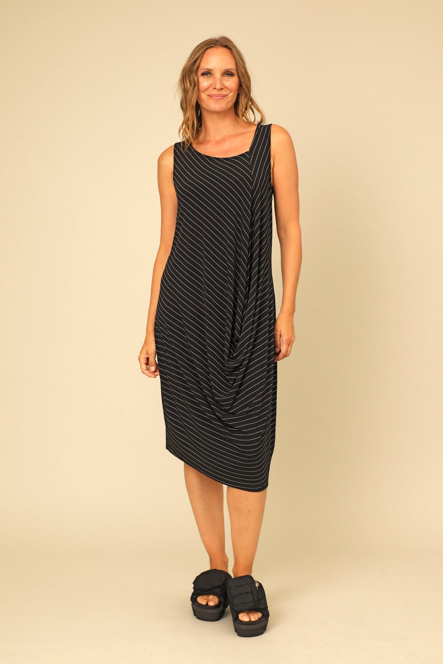 A truly gorgeous piece that brings you to life in the Violet Dress. Its asymmetrical neckline and soft draped silhouette makes a bold flattering impression, while the flexible, travel-ready fabric is refreshingly smooth to the touch. Ideal to wear for any occasion, from a getaway to soiree.